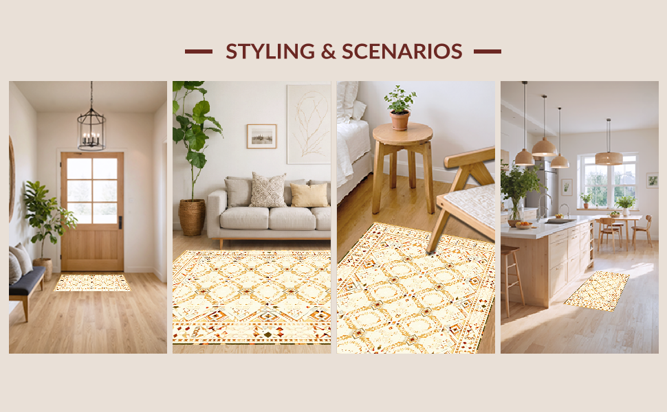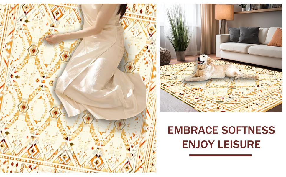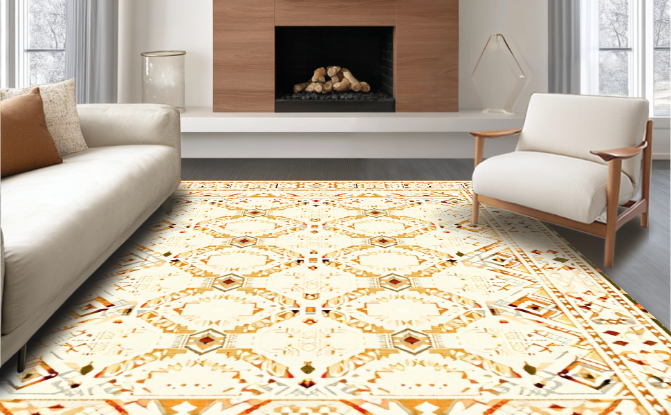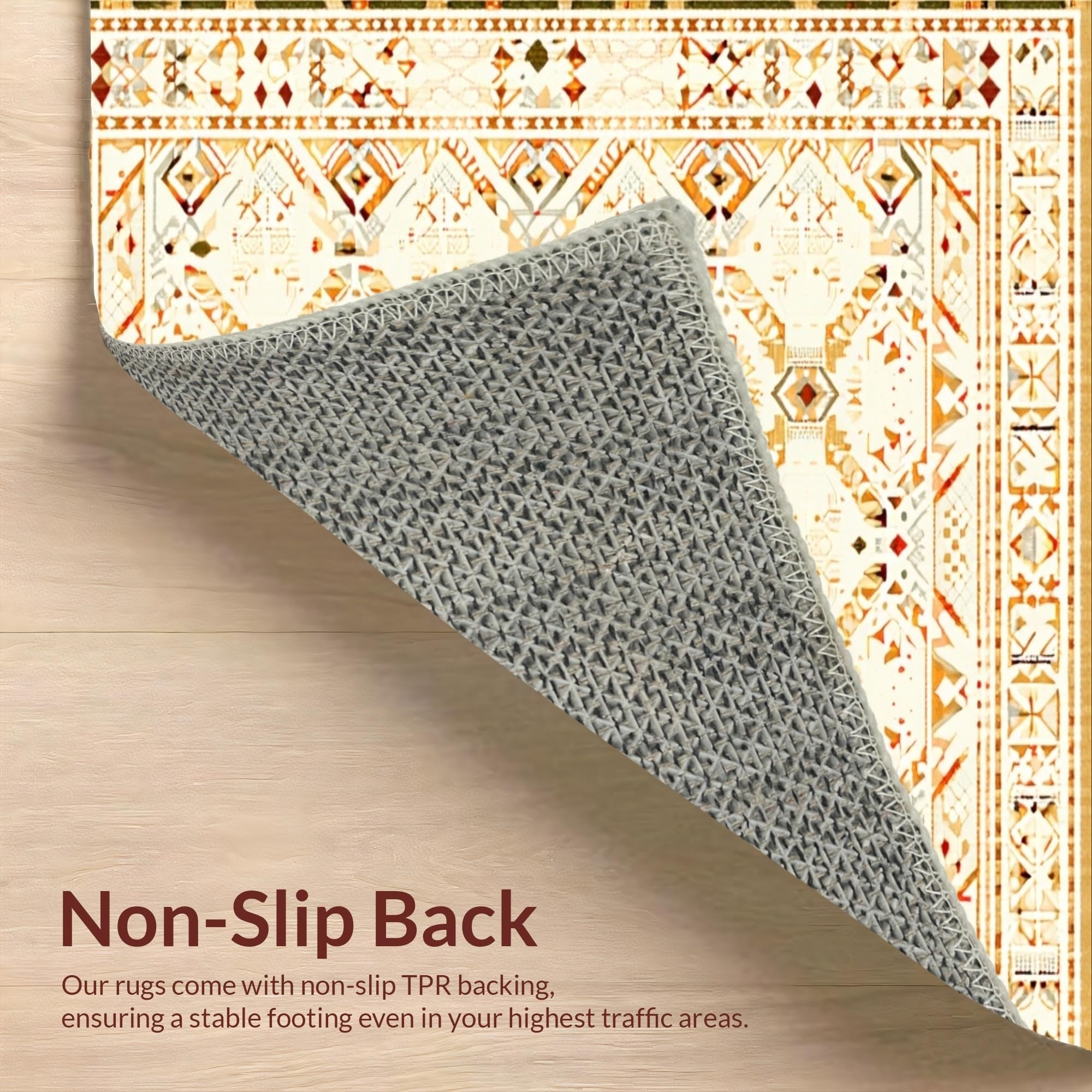 Ultra Soft Area Rug, Non Slip, Stain Resistant, Washable Area Rugs for Living Room, Bedroom, Rustic Earthy Patterned Trellis Motif(Beige) Overview: