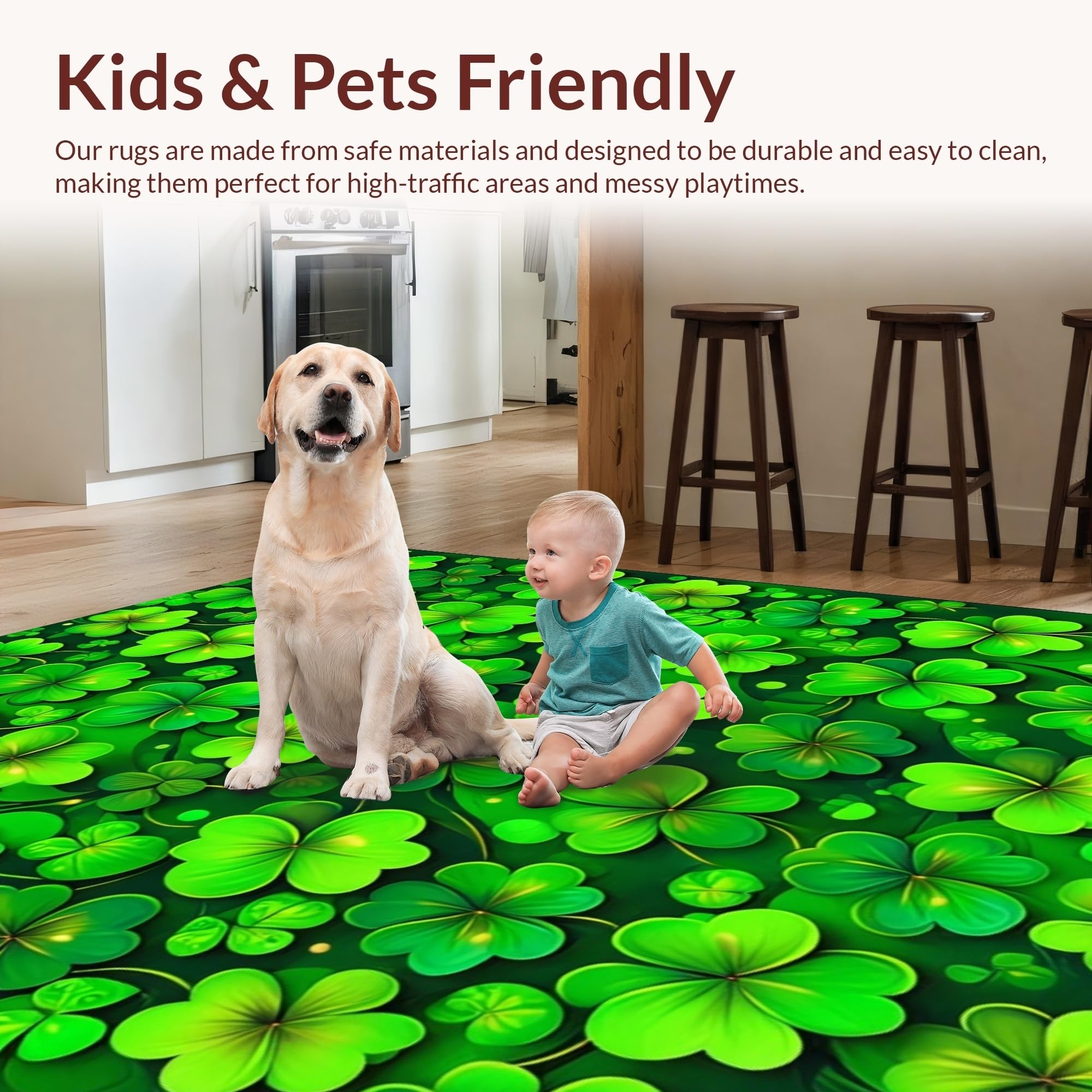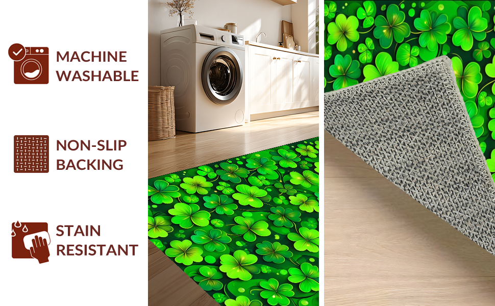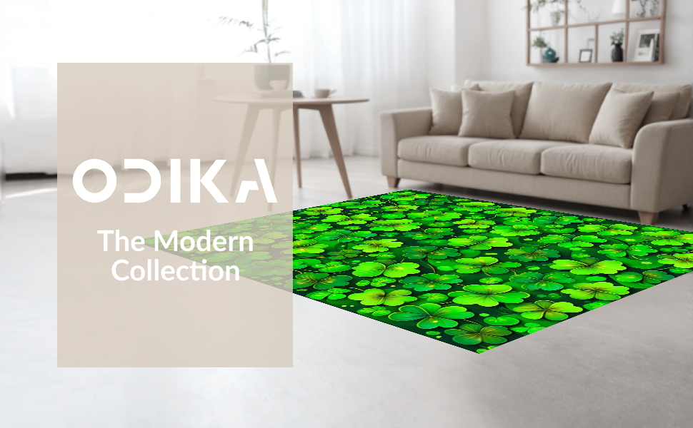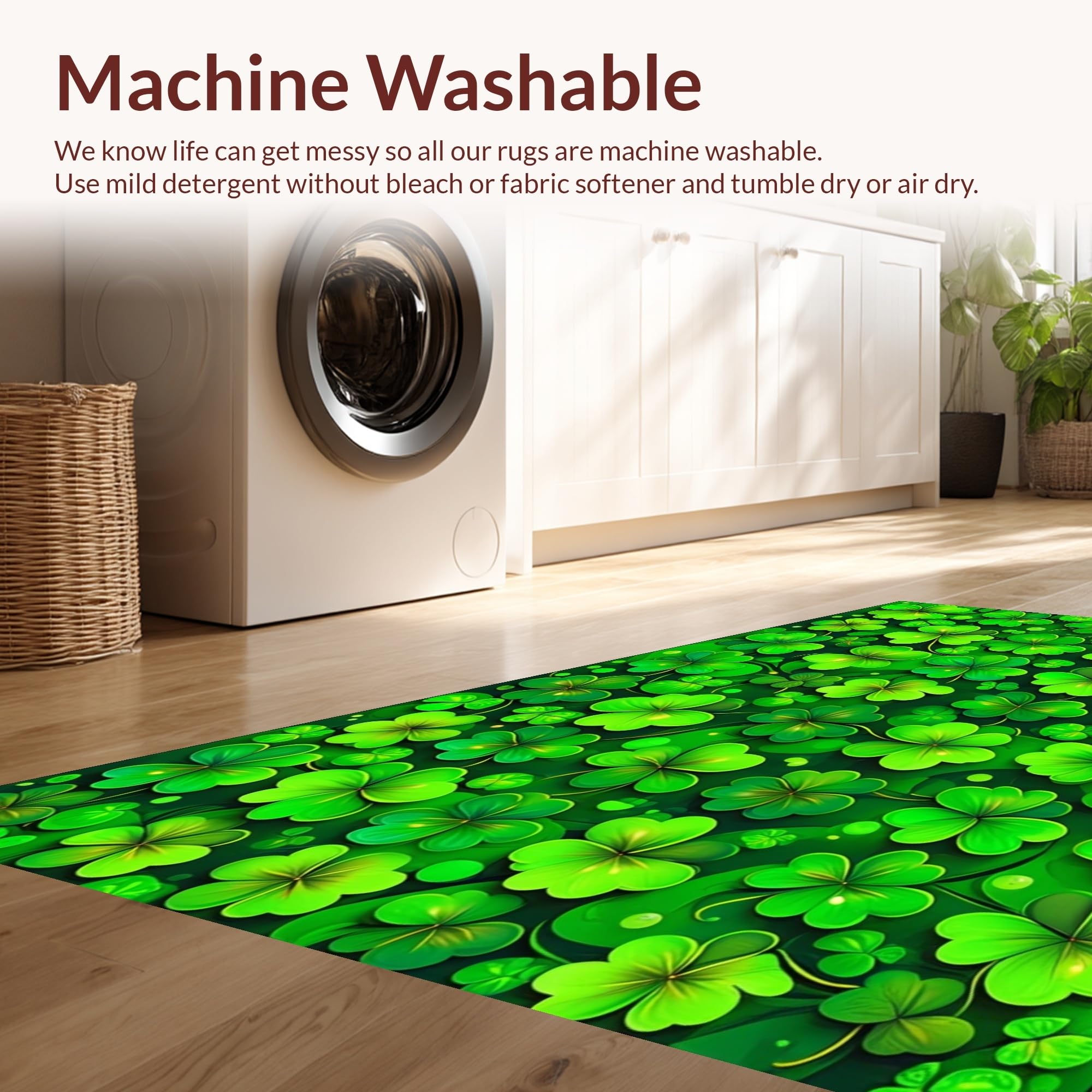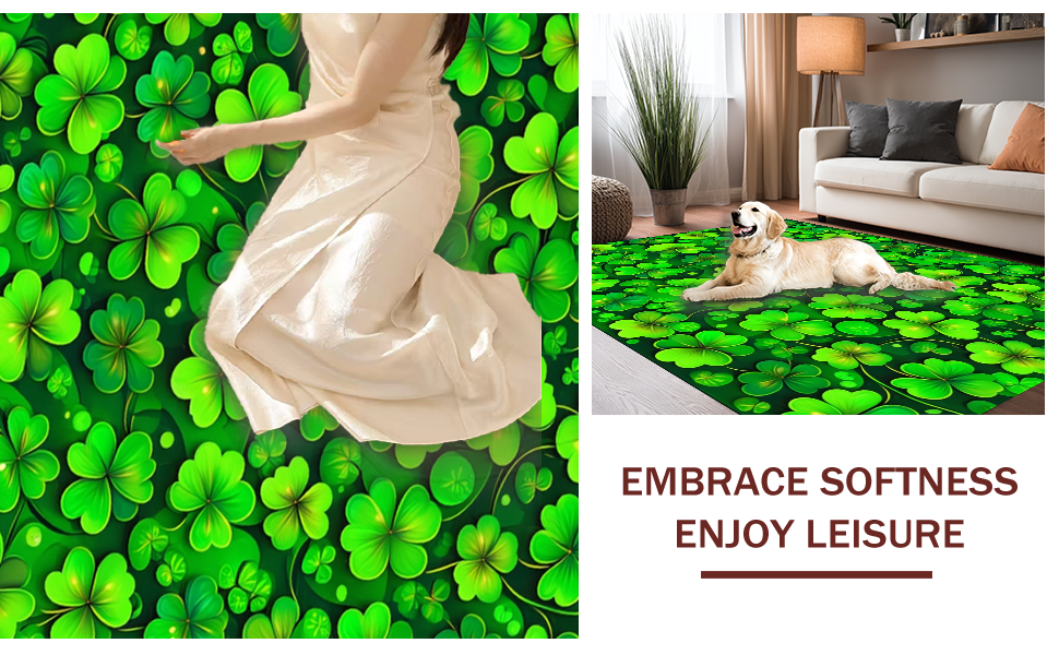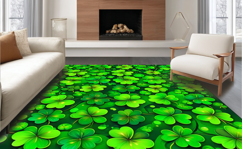 Ultra Soft Area Rug, Non Slip, Stain Resistant, Washable Area Rugs for Living Room, Bedroom, Rustic Earthy Shamrock Motif(Green) Overview:
