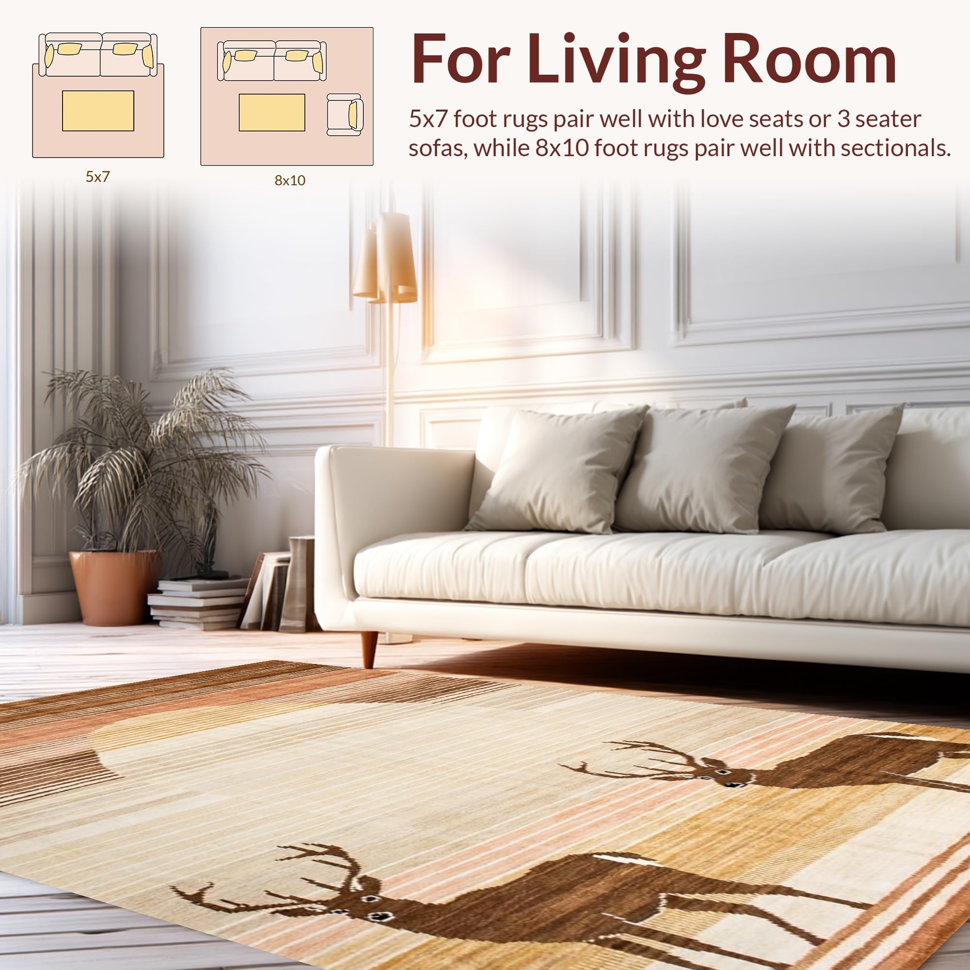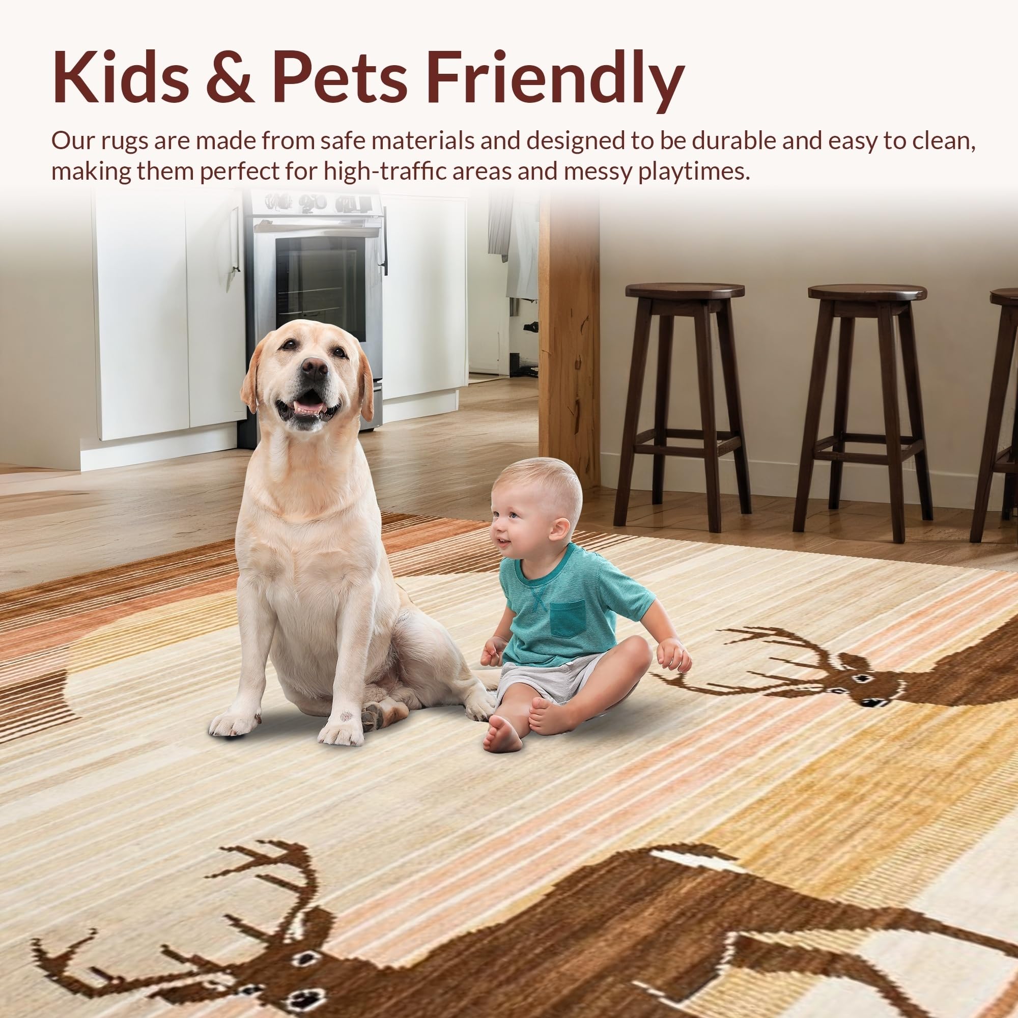 Ultra Soft Area Rug, Non Slip, Stain Resistant, Washable Area Rugs for Living Room, Bedroom, Rustic Earthy Sika Print Elegance(Brown) Overview: