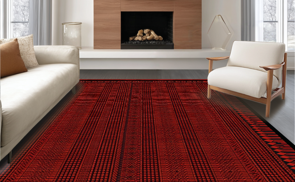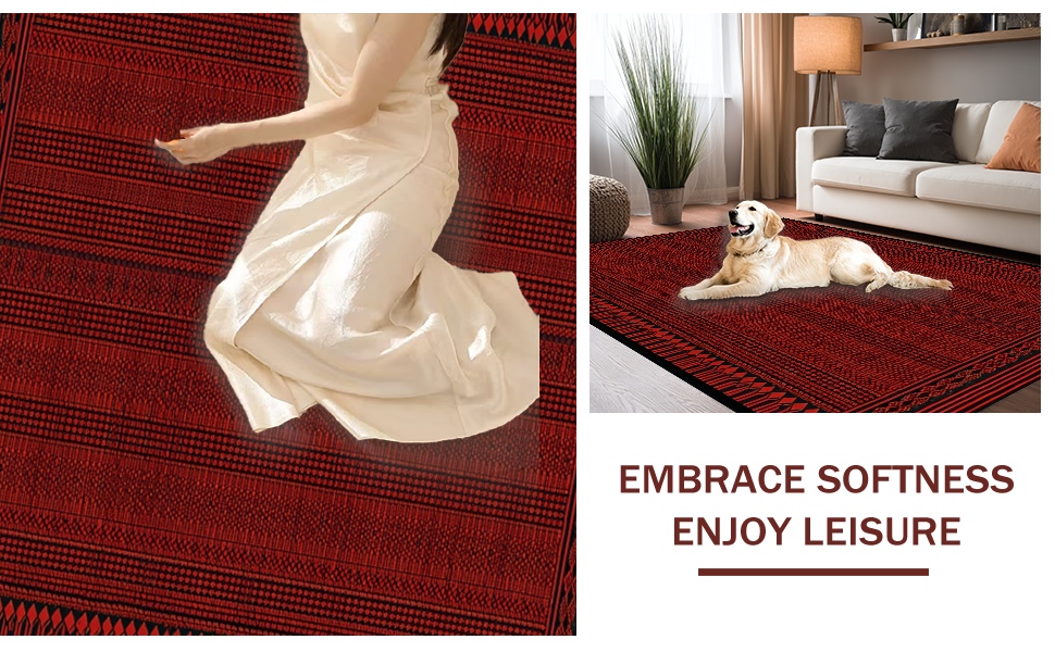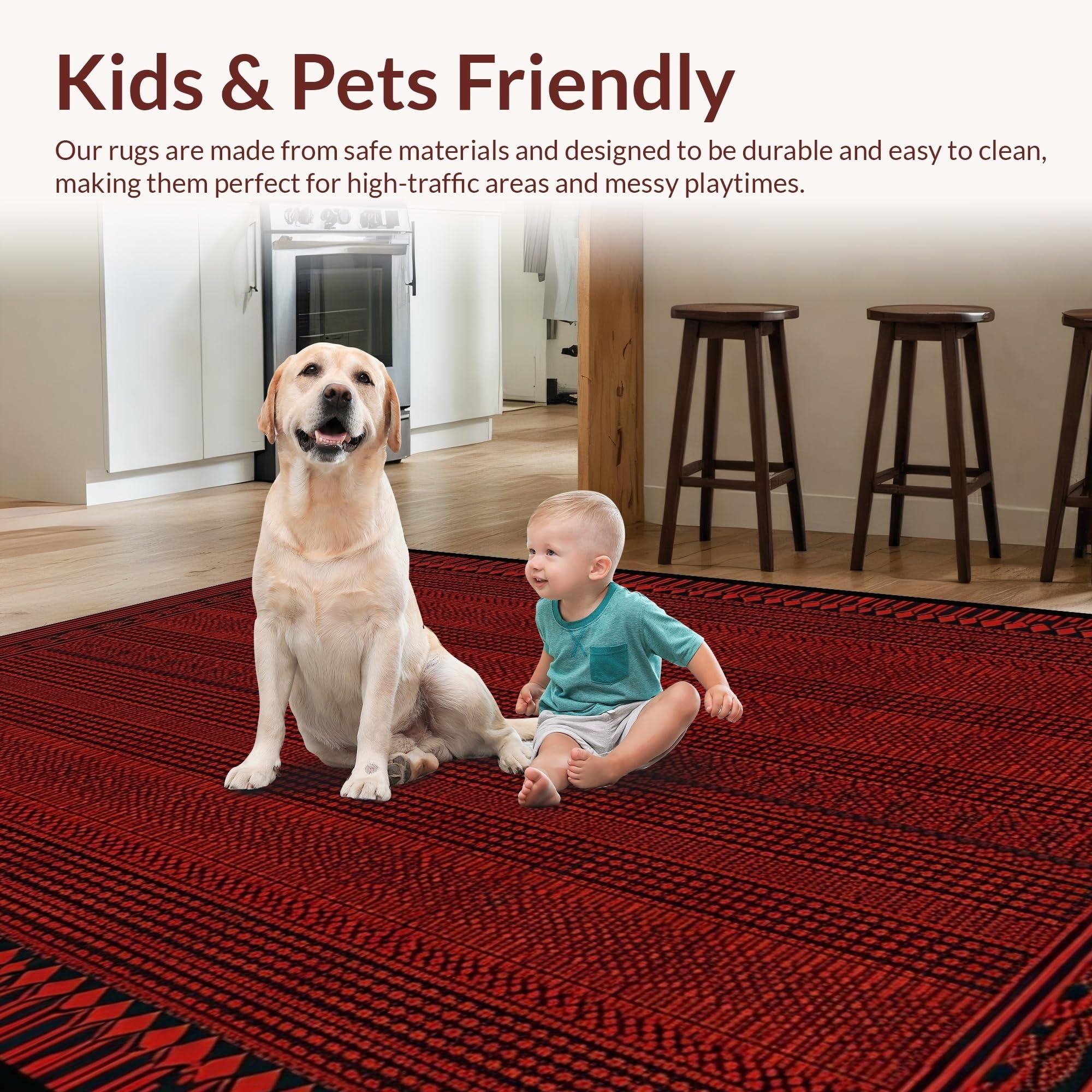 Ultra Soft Area Rug, Non Slip, Stain Resistant, Washable Area Rugs for Living Room, Bedroom, Rustic Earthy Tones with Flair(Red) Overview:
