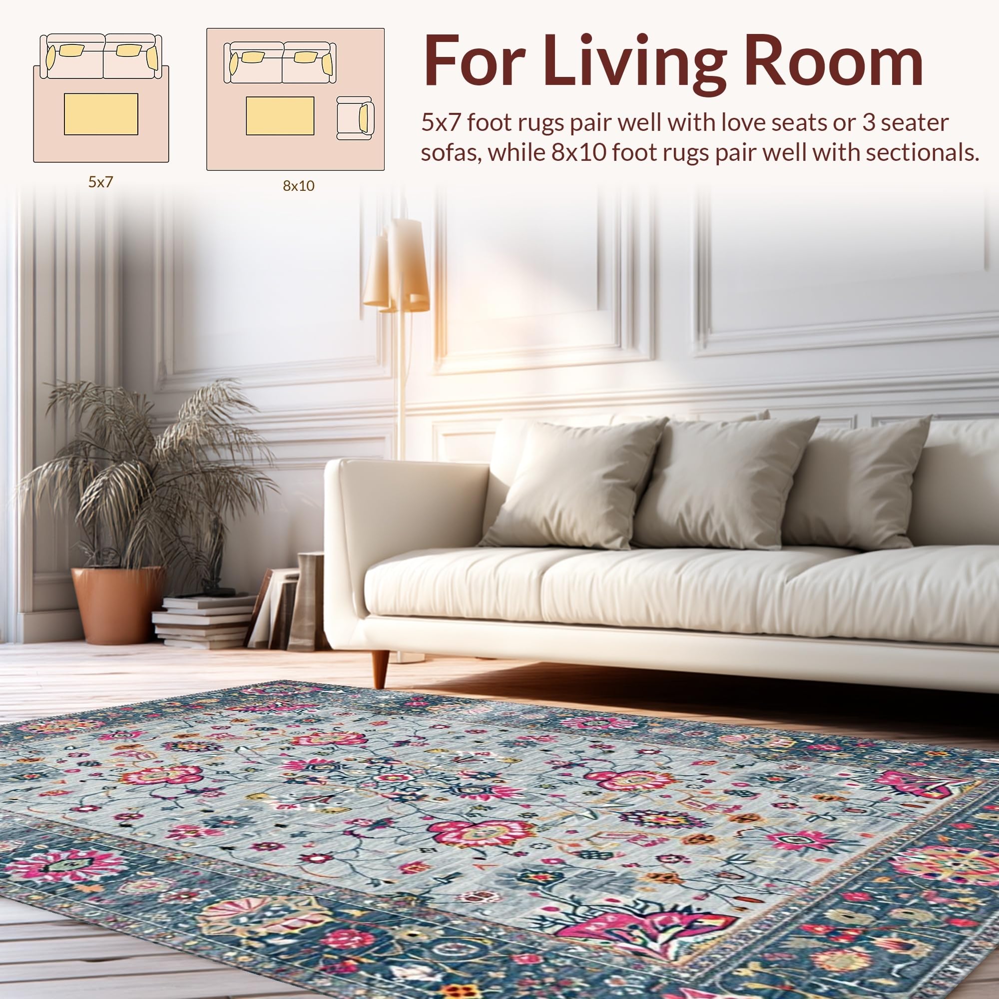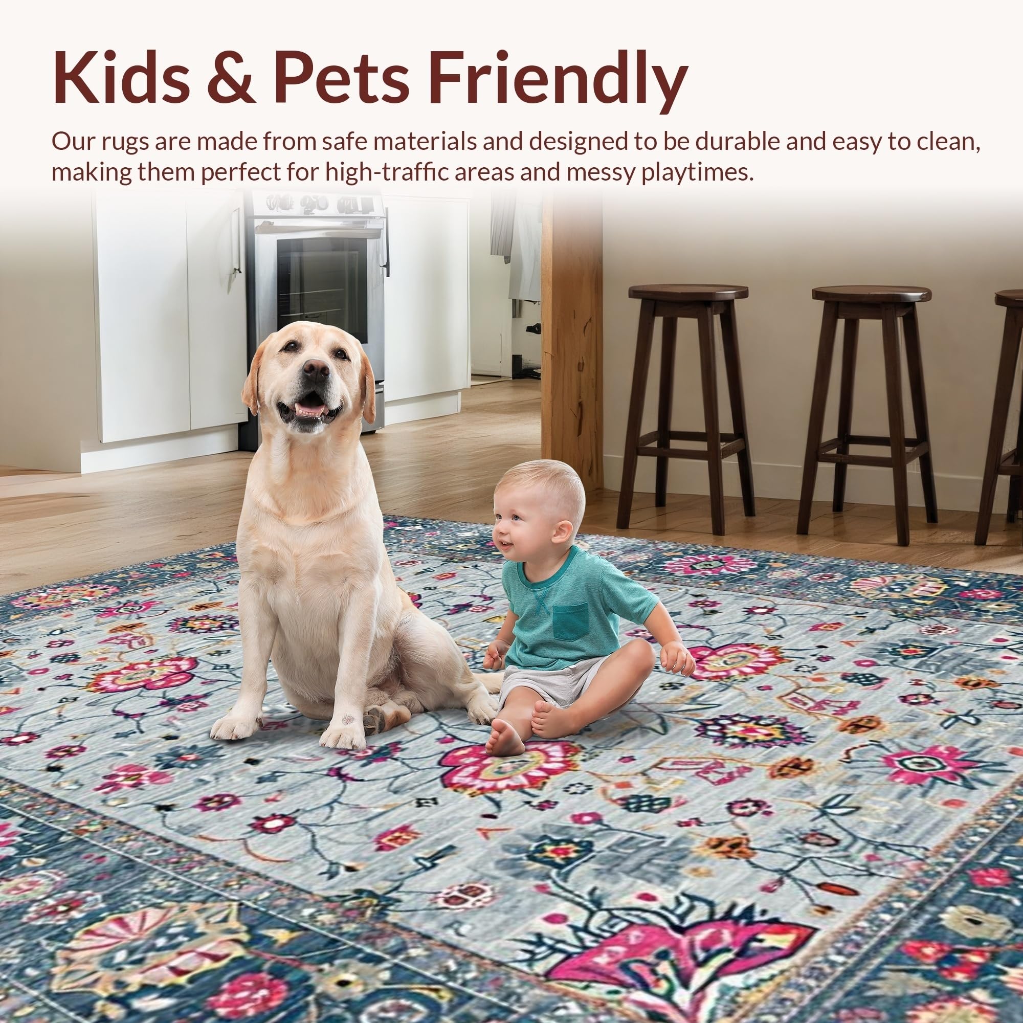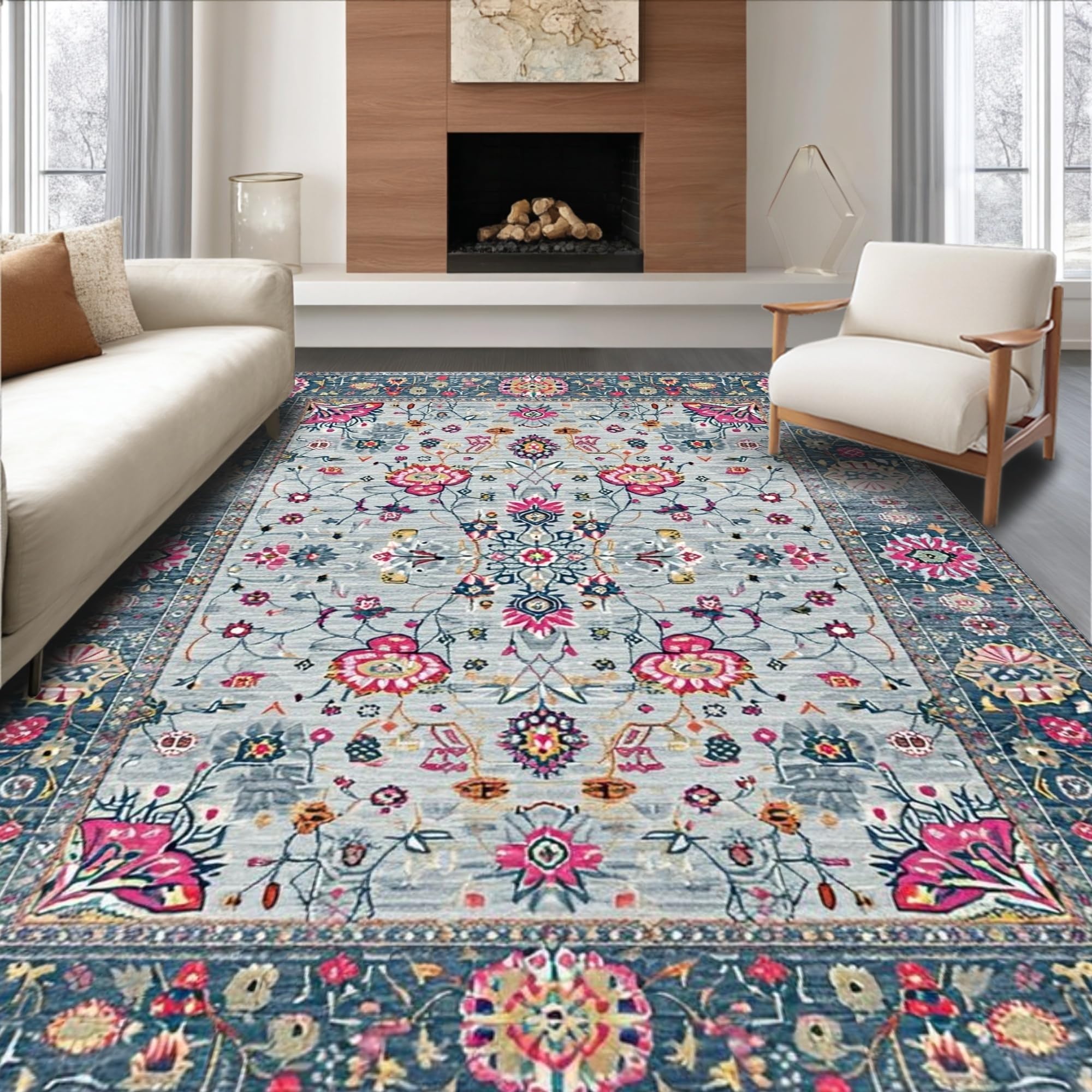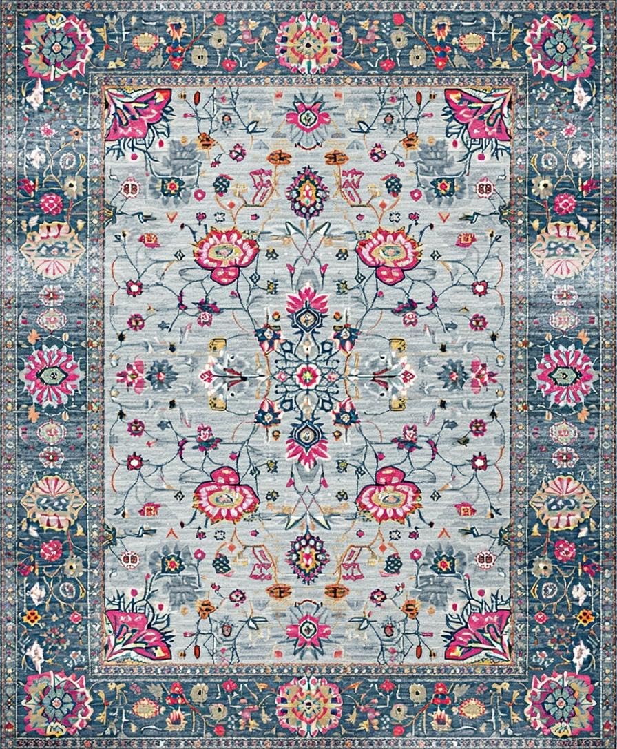 Ultra Soft Area Rug, Non Slip, Stain Resistant, Washable Area Rugs for Living Room, Bedroom, Rustic Earthy Trellis Motif(Gray) Overview: