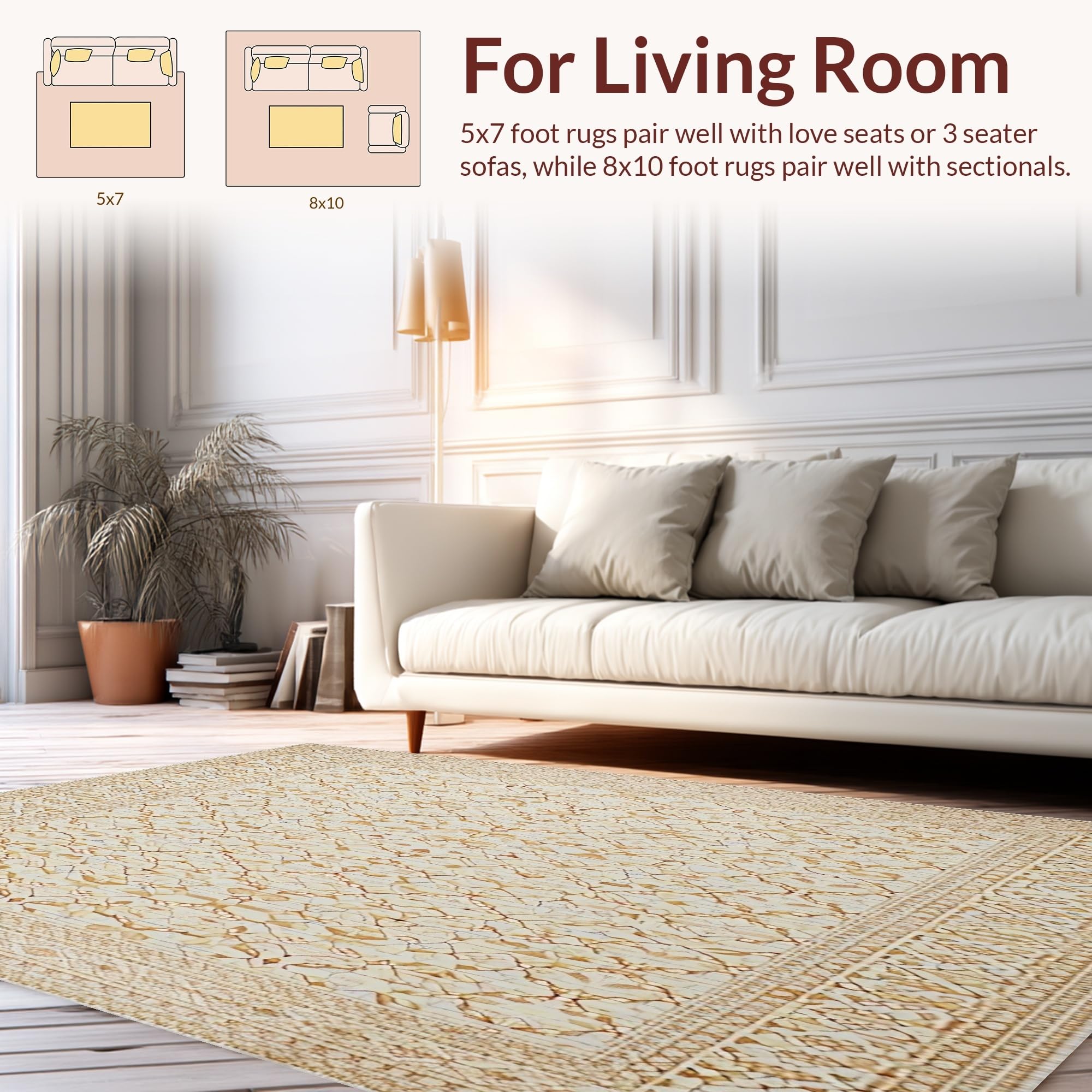 Ultra Soft Area Rug, Non Slip, Stain Resistant, Washable Area Rugs for Living Room, Bedroom, Rustic Edge Jute With and Earthy Tones(Beige) Overview: