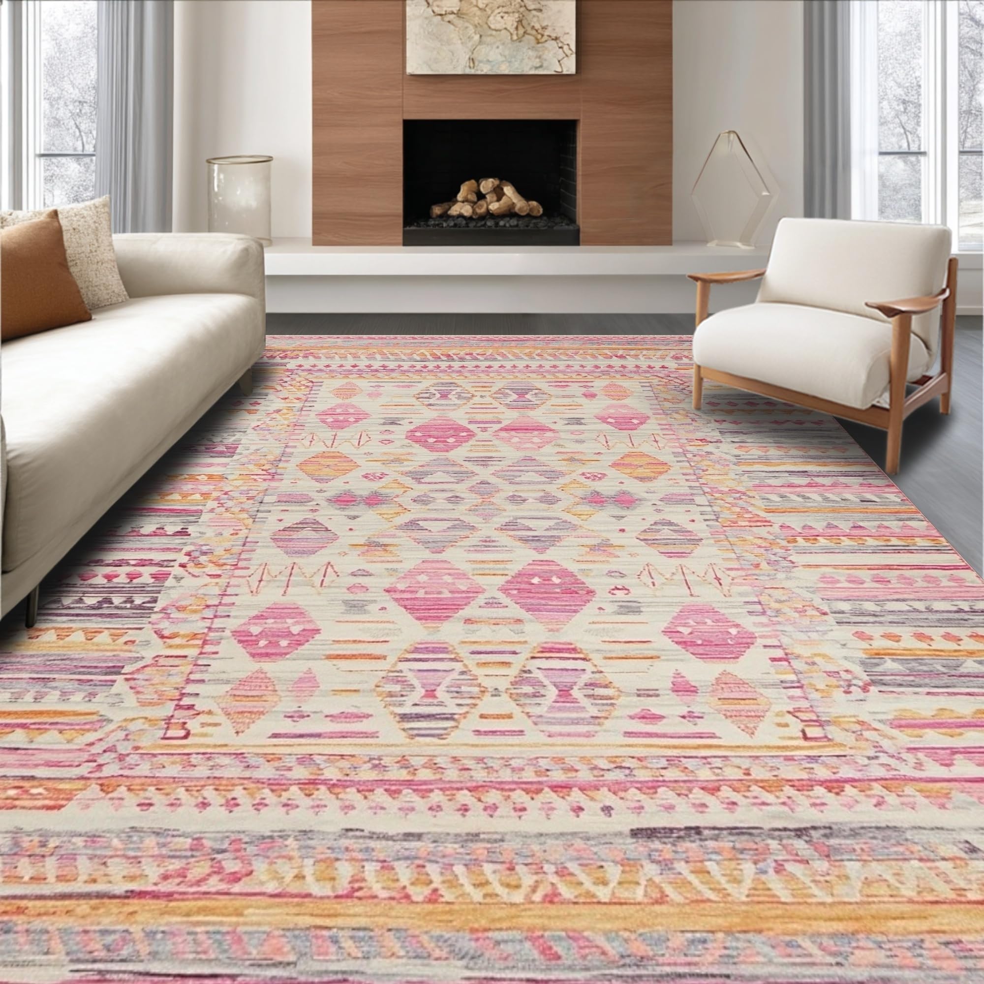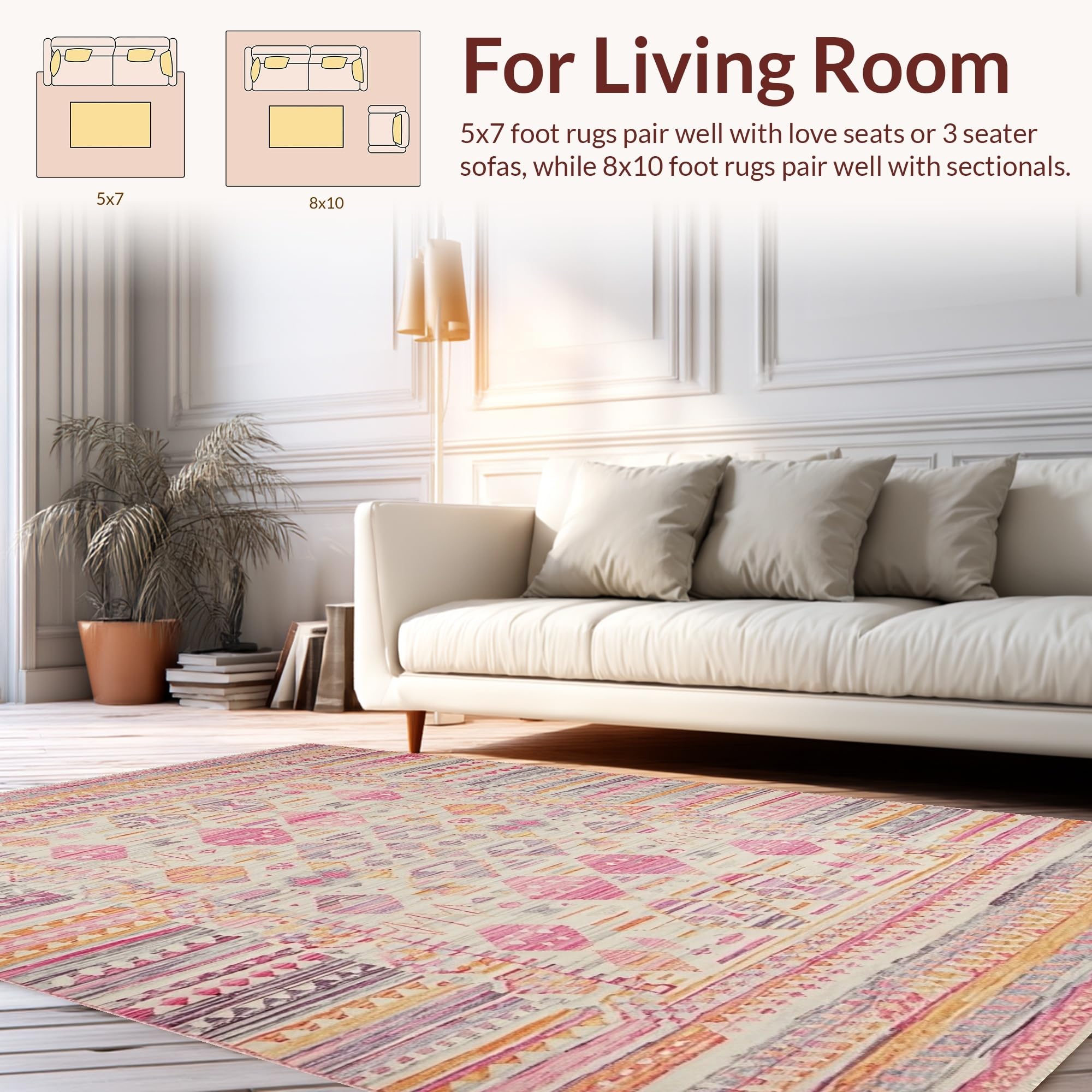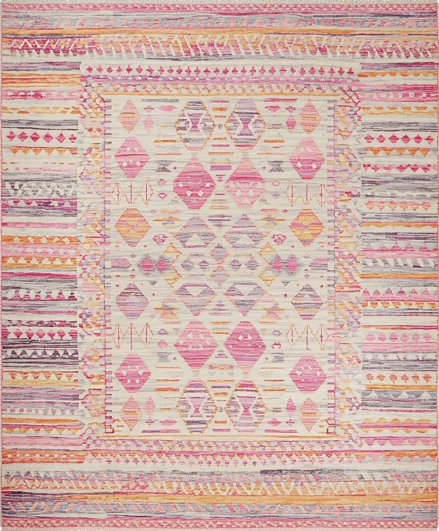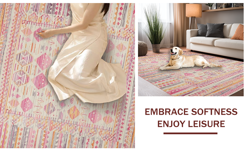 Ultra Soft Area Rug, Non Slip, Stain Resistant, Washable Area Rugs for Living Room, Bedroom, Rustic Elegant Braided Texture(Pink) Overview: