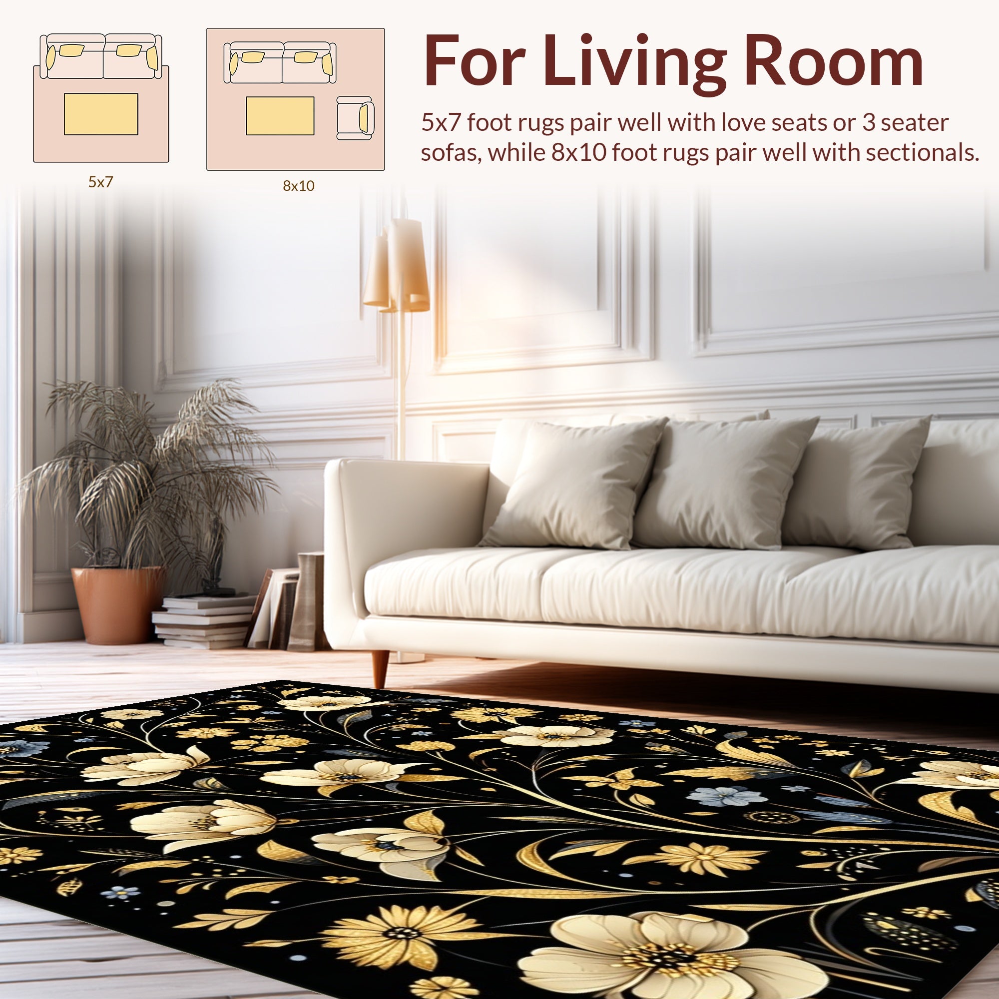 Flatwoven High Traffic Area Rug, Rustic Floral Charm with Contrast, Non Slip, Stain Resistant, Washable Area Rugs for Living Room, Bedroom (Gold) Overview: