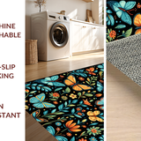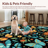 Ultra Soft Area Rug, Non Slip, Stain Resistant, Washable Area Rugs for Living Room, Bedroom, Rustic Garden Vibe with Butterflies(Blue) Overview: