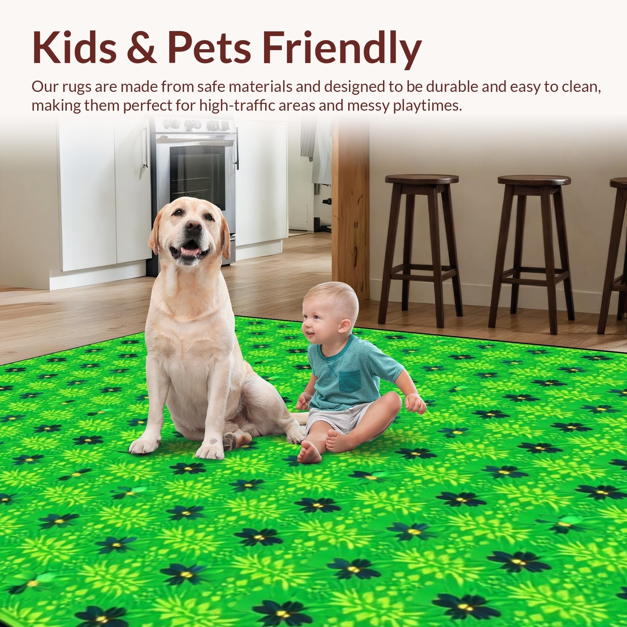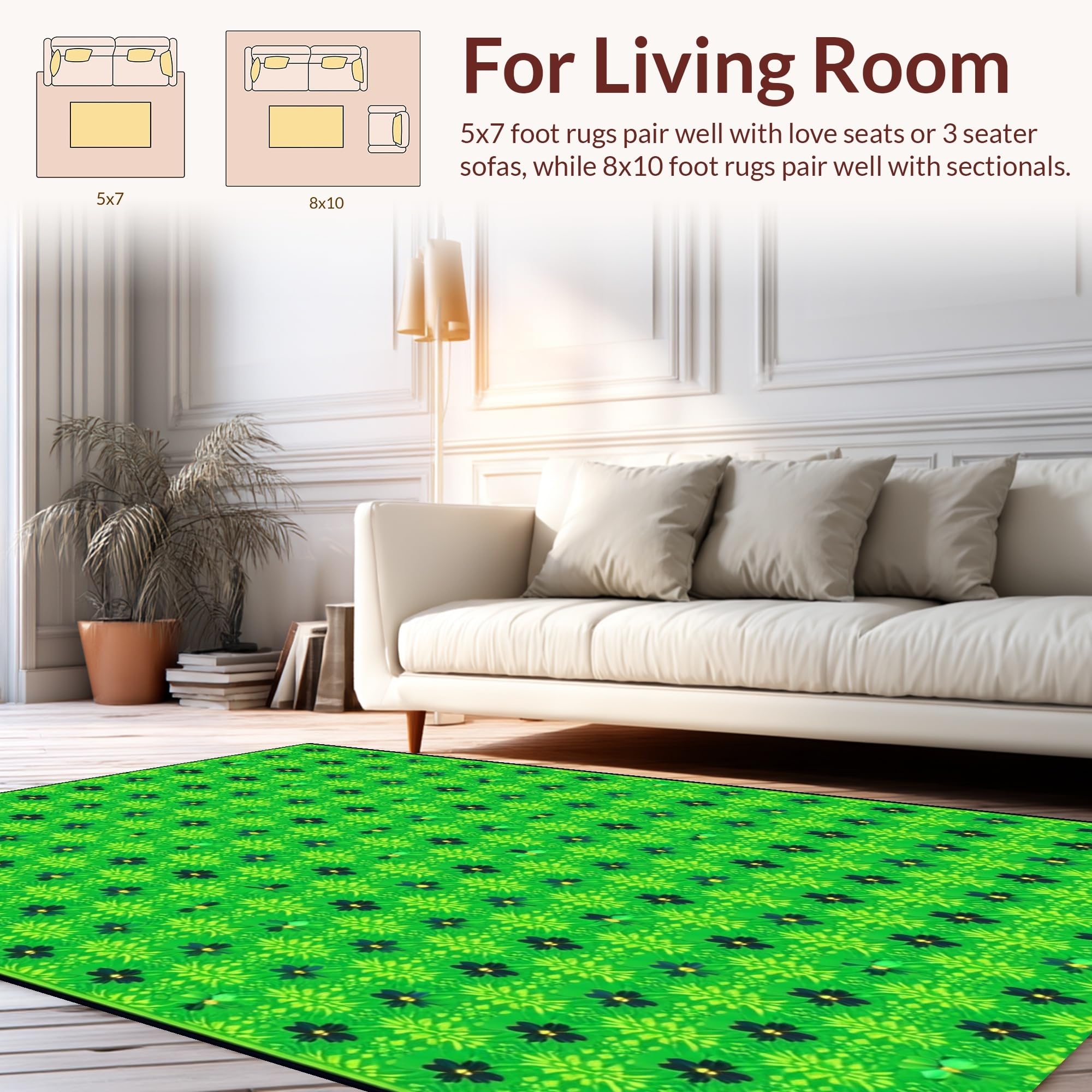 Ultra Soft Area Rug, Non Slip, Stain Resistant, Washable Area Rugs for Living Room, Bedroom, Rustic Green and Black Motif(Green) Overview: