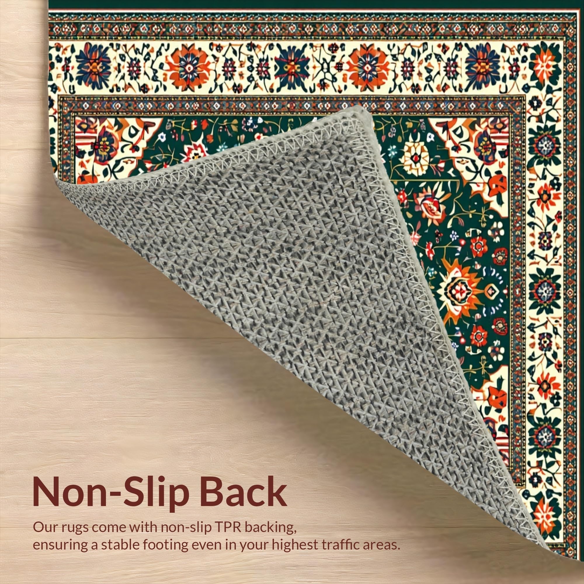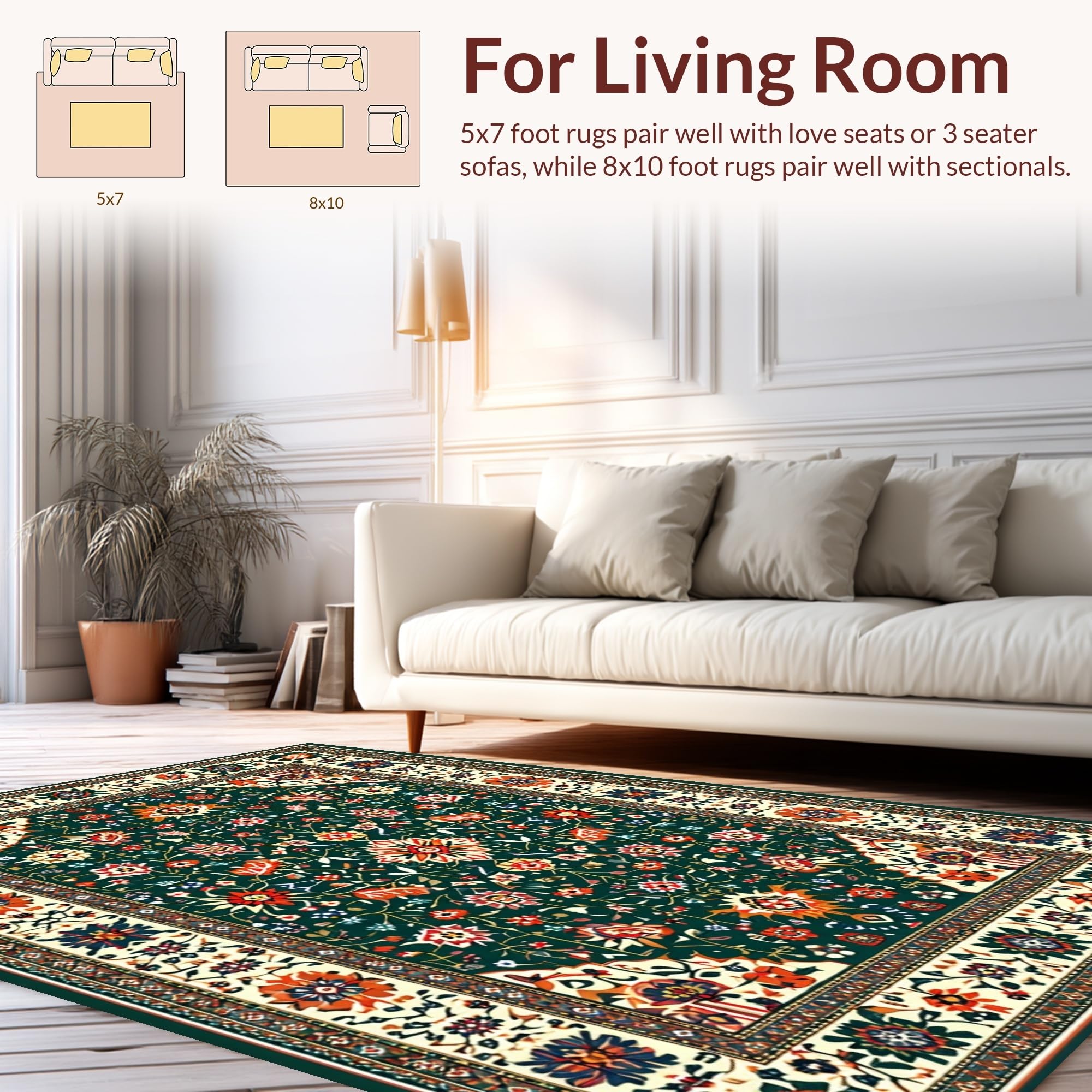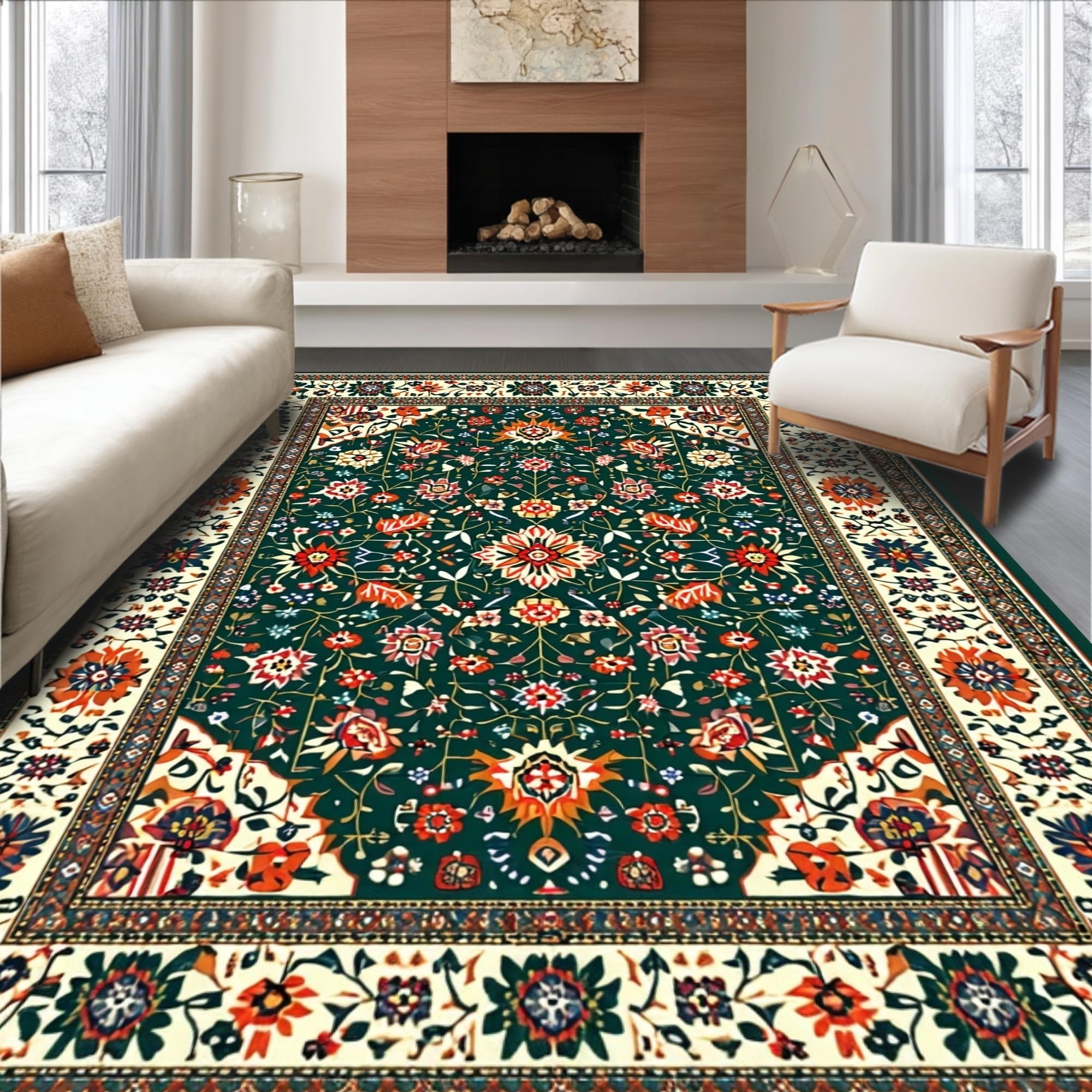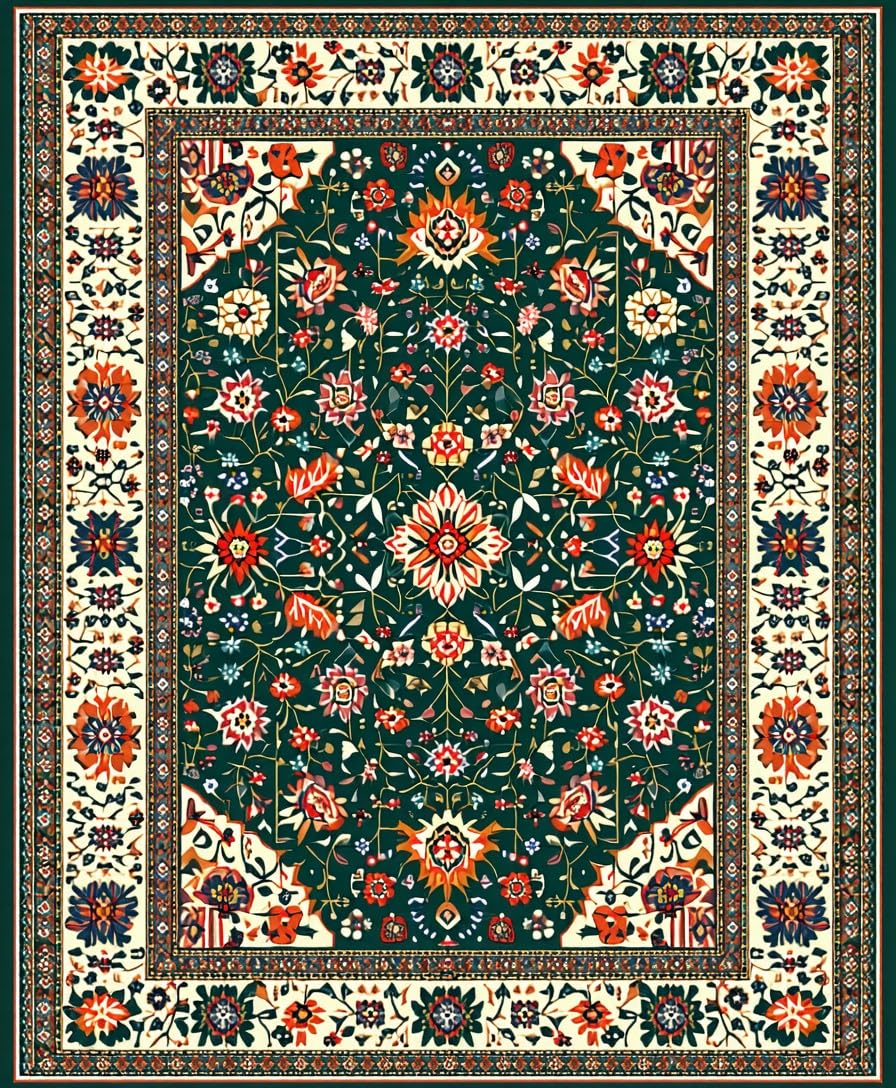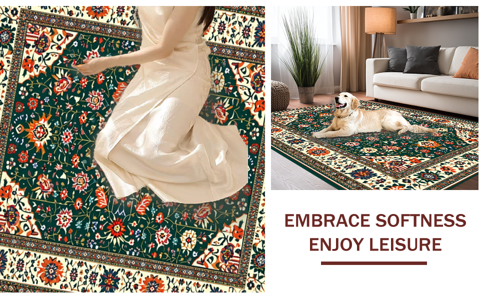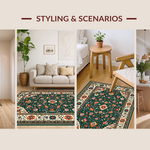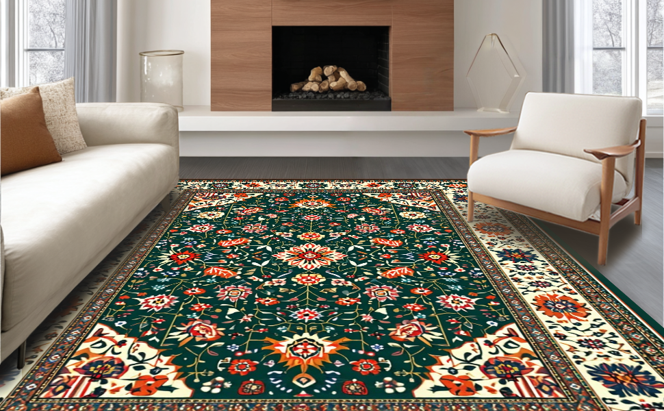 Ultra Soft Area Rug, Non Slip, Stain Resistant, Washable Area Rugs for Living Room, Bedroom, Rustic Green Floral Delight(Black) Overview: