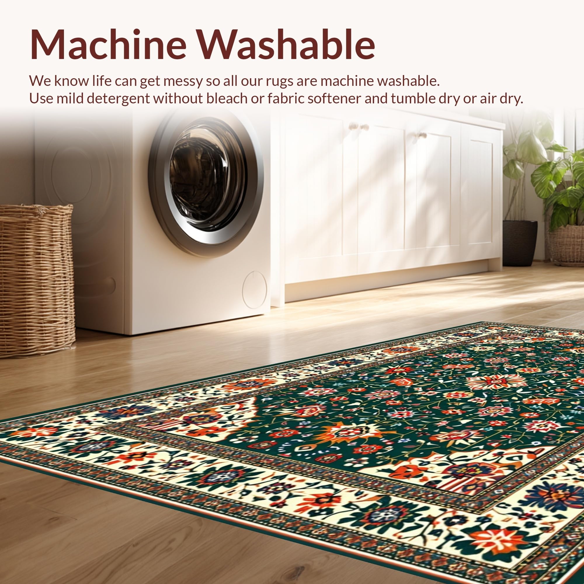 - Machine Washable: Our rugs can be easily thrown in the wash machine.