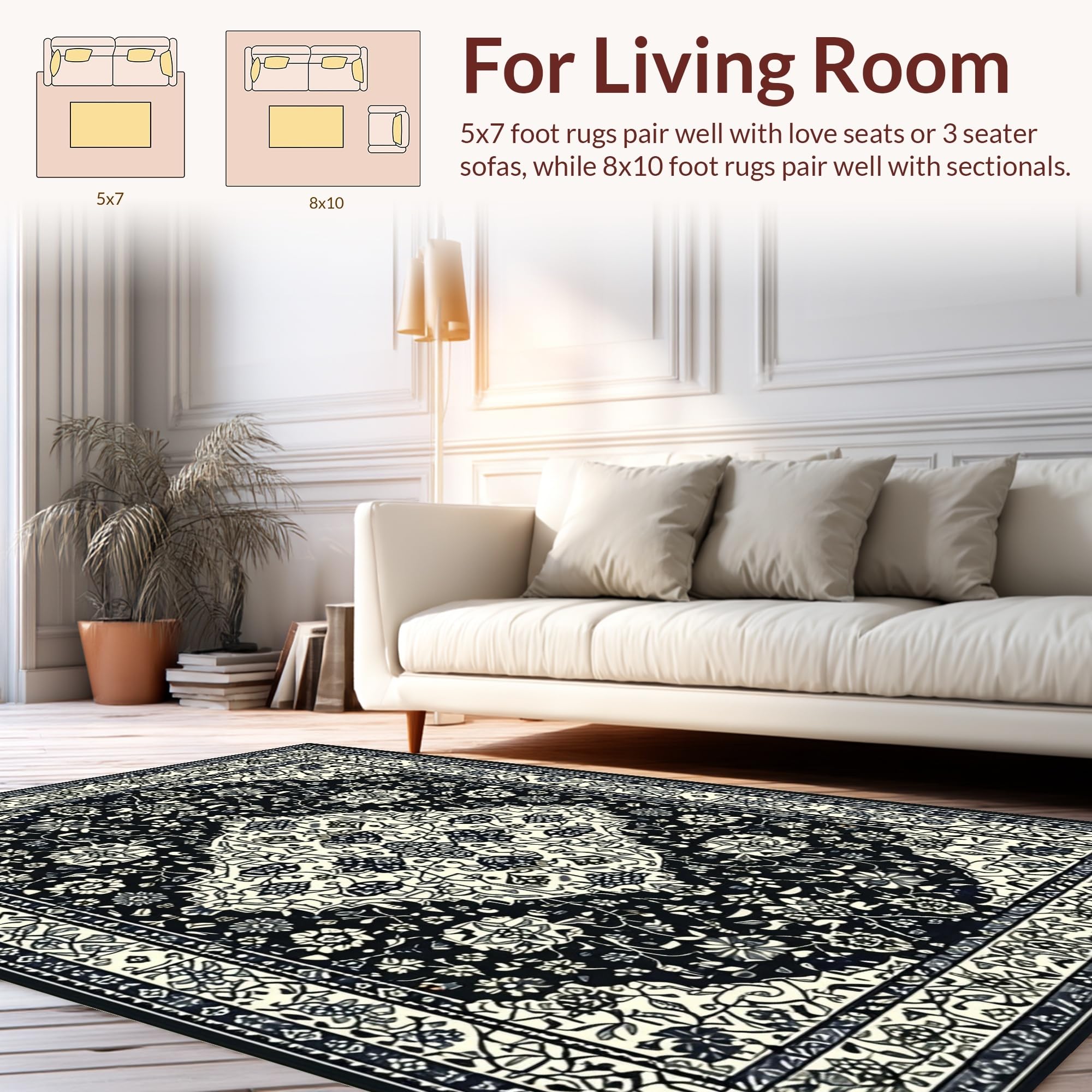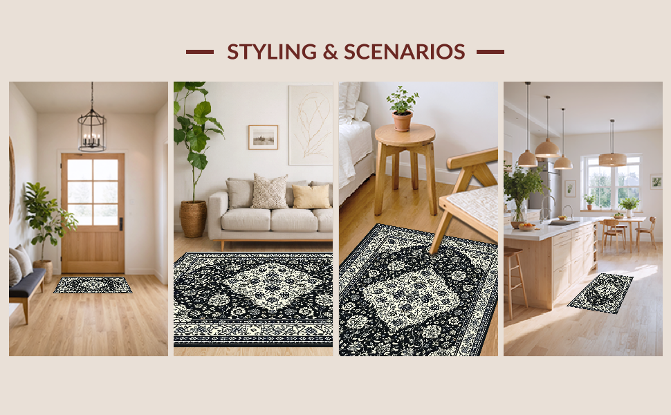 Ultra Soft Area Rug, Non Slip, Stain Resistant, Washable Area Rugs for Living Room, Bedroom, Rustic Grey Lattice Design(Black) Overview: