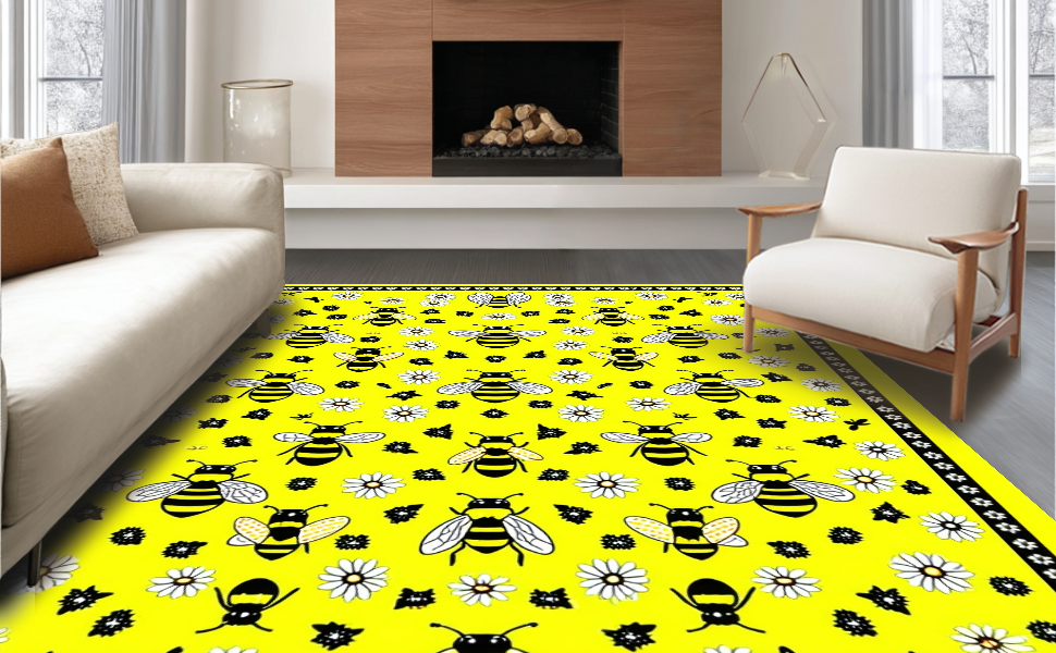 Ultra Soft Area Rug, Non Slip, Stain Resistant, Washable Area Rugs for Living Room, Bedroom, Rustic Honeycomb Inspired Art(Yellow) Overview: