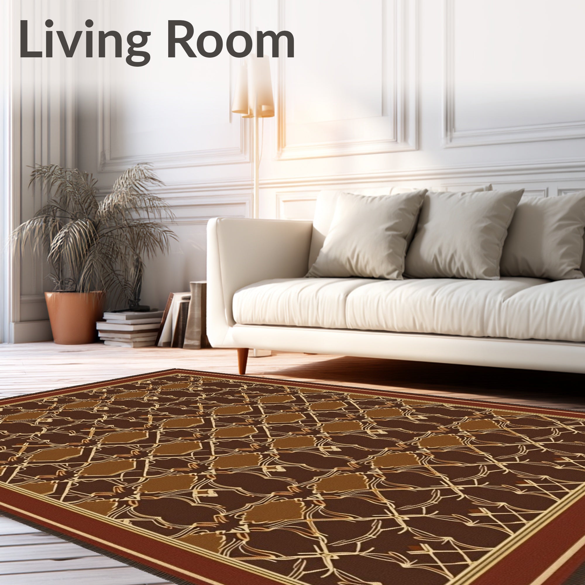Flatwoven High Traffic Area Rug, Rustic Interlocking Plaid with Vintage Charm, Non Slip, Stain Resistant, Washable Area Rugs for Living Room, Bedroom (Brown) Overview: