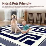Ultra Soft Area Rug, Non Slip, Stain Resistant, Washable Area Rugs for Living Room, Bedroom, Rustic Neutral Trellis Composition(Blue) Overview: