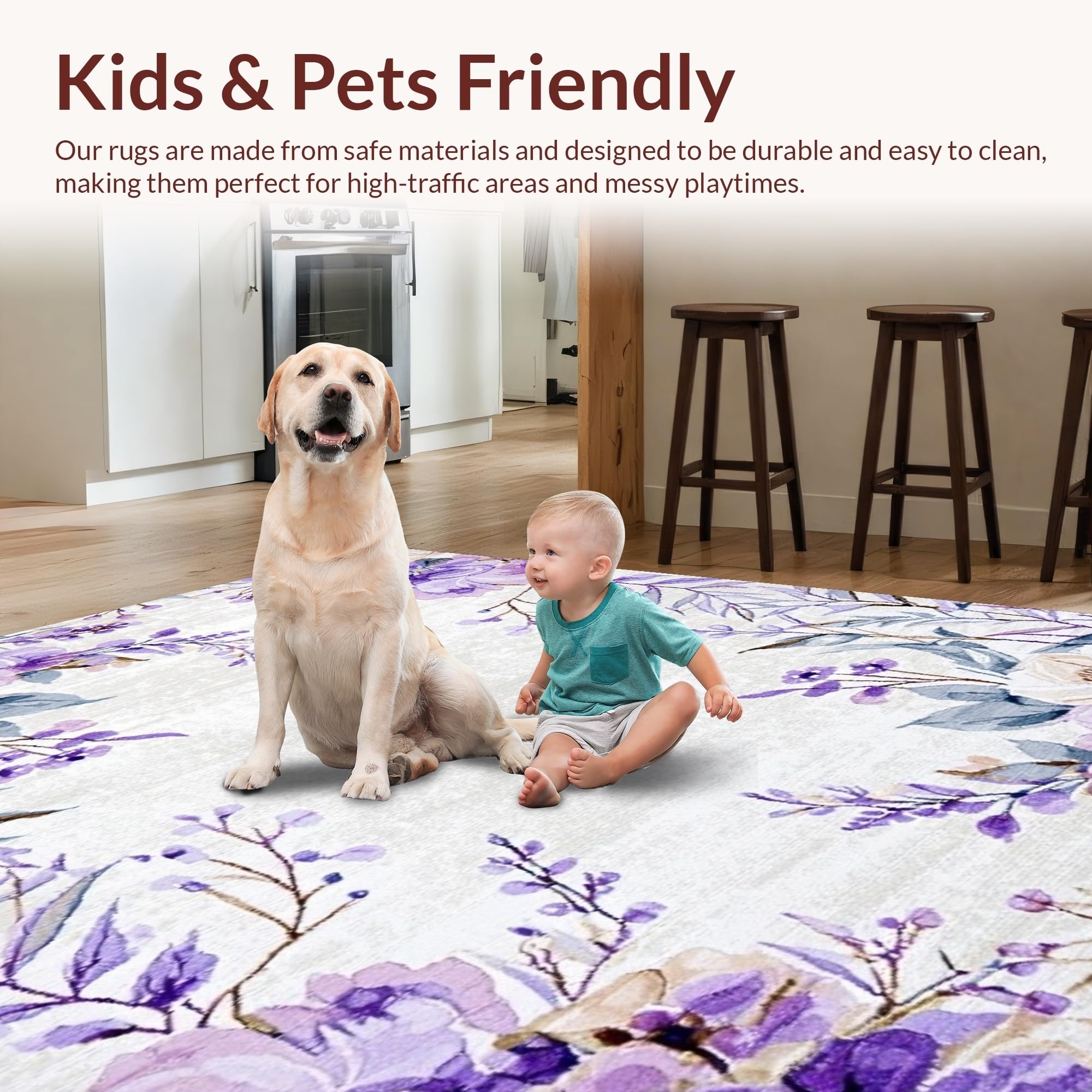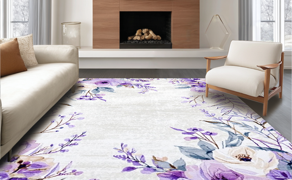 Ultra Soft Area Rug, Non Slip, Stain Resistant, Washable Area Rugs for Living Room, Bedroom, Rustic Ombre Flower Design(Ivory) Overview: