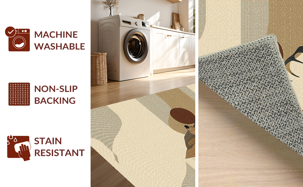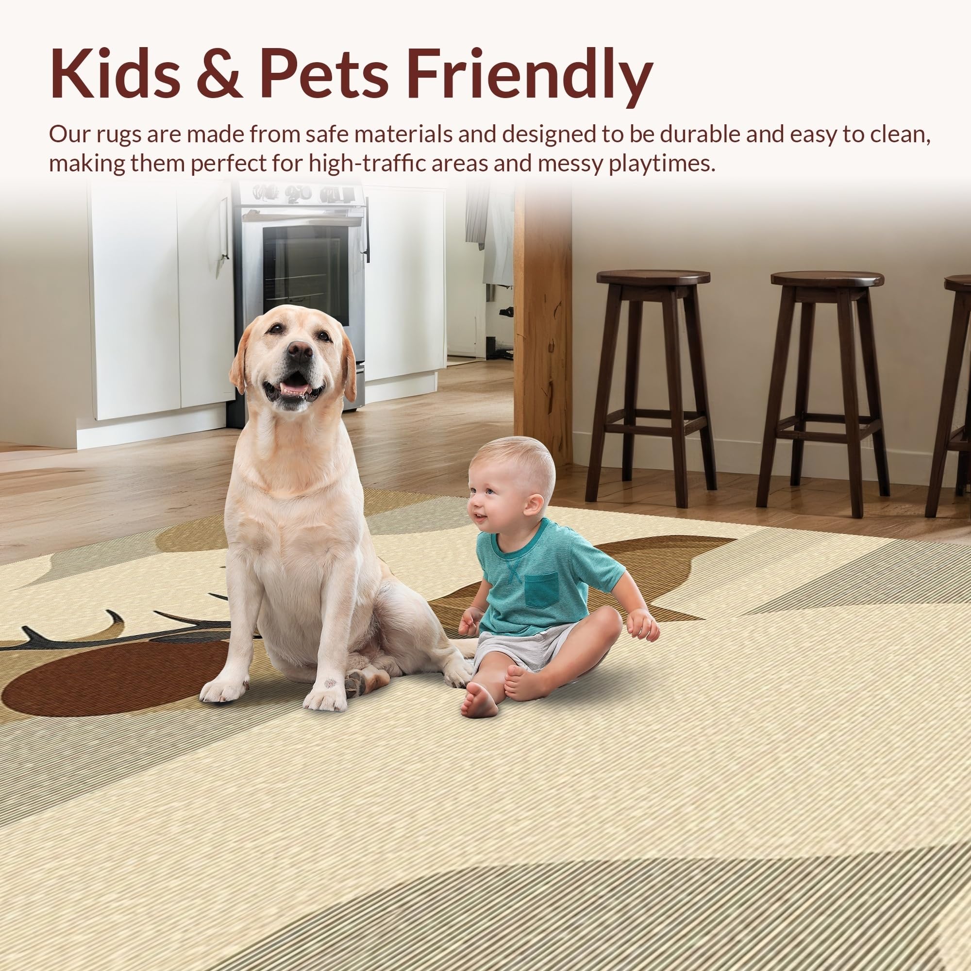 Ultra Soft Area Rug, Non Slip, Stain Resistant, Washable Area Rugs for Living Room, Bedroom, Rustic Organic Earthy Tones(Beige) Overview: