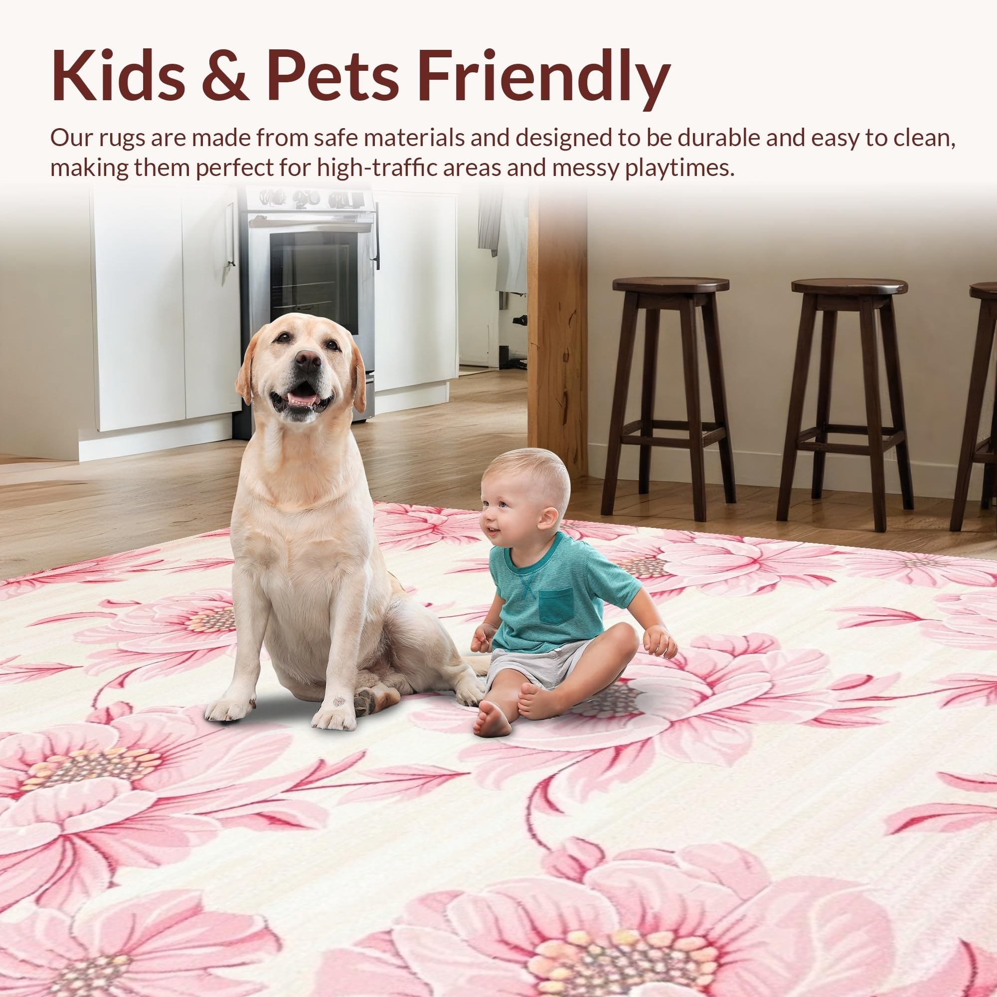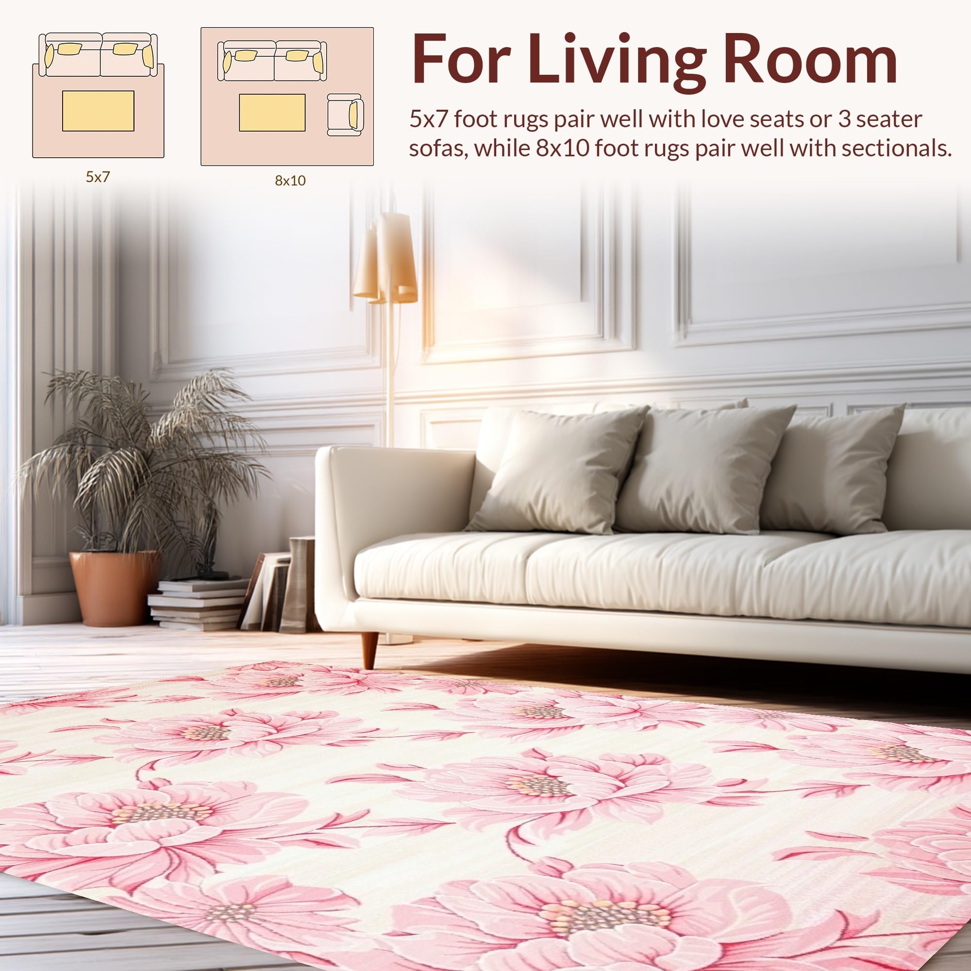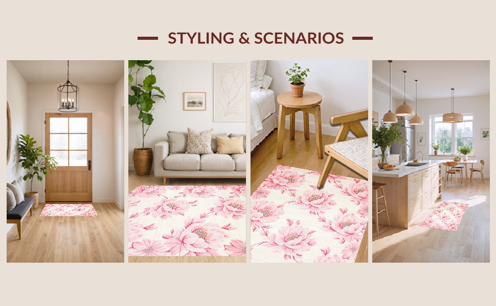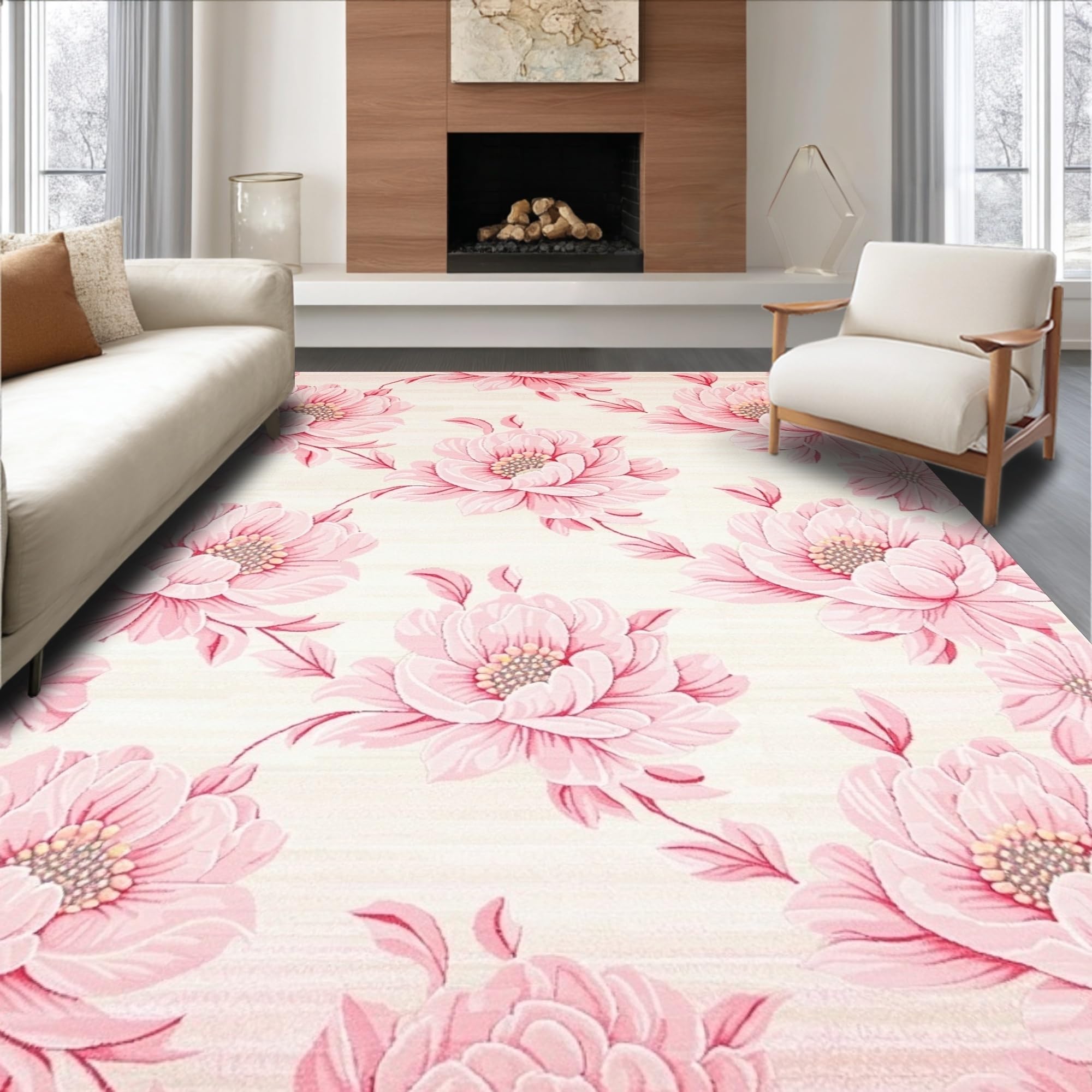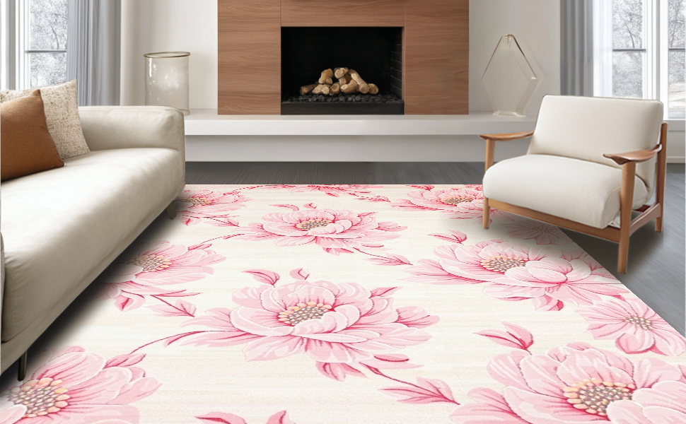 Ultra Soft Area Rug, Non Slip, Stain Resistant, Washable Area Rugs for Living Room, Bedroom, Rustic Pink Blossom Charm(Pink) Overview: