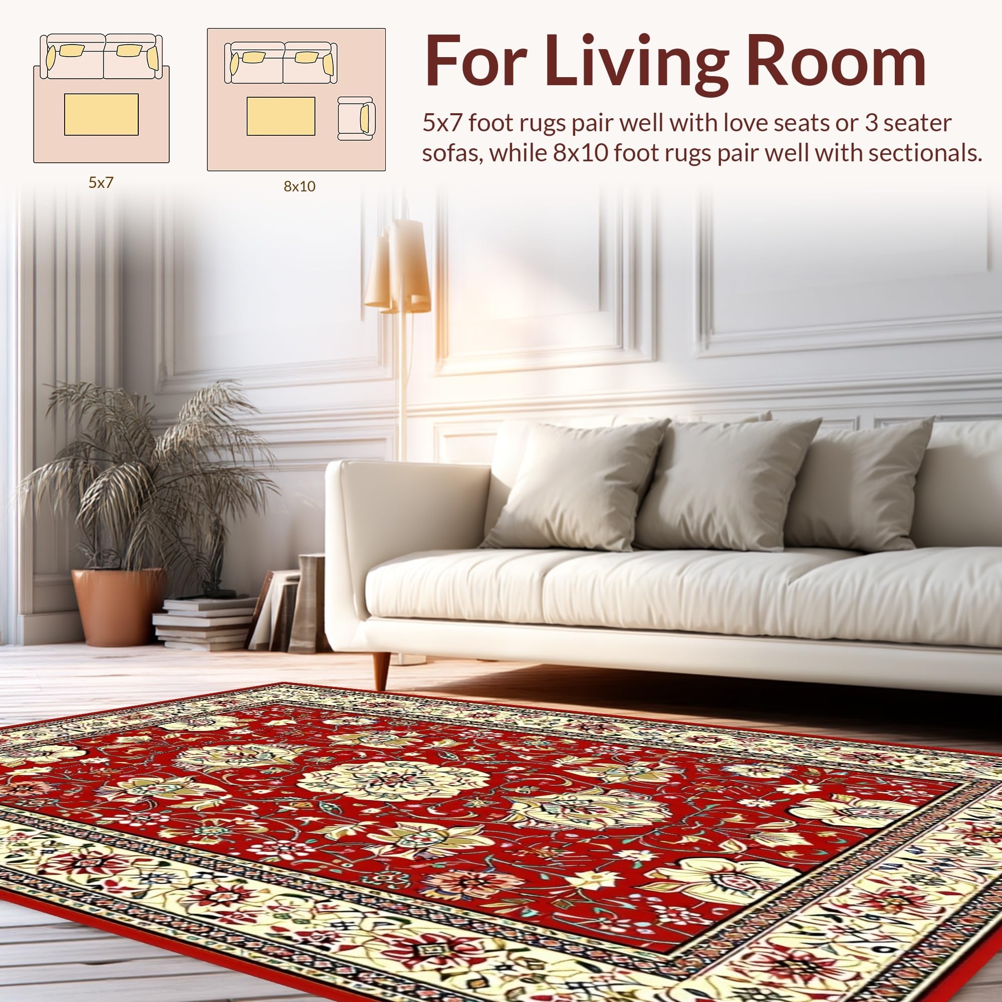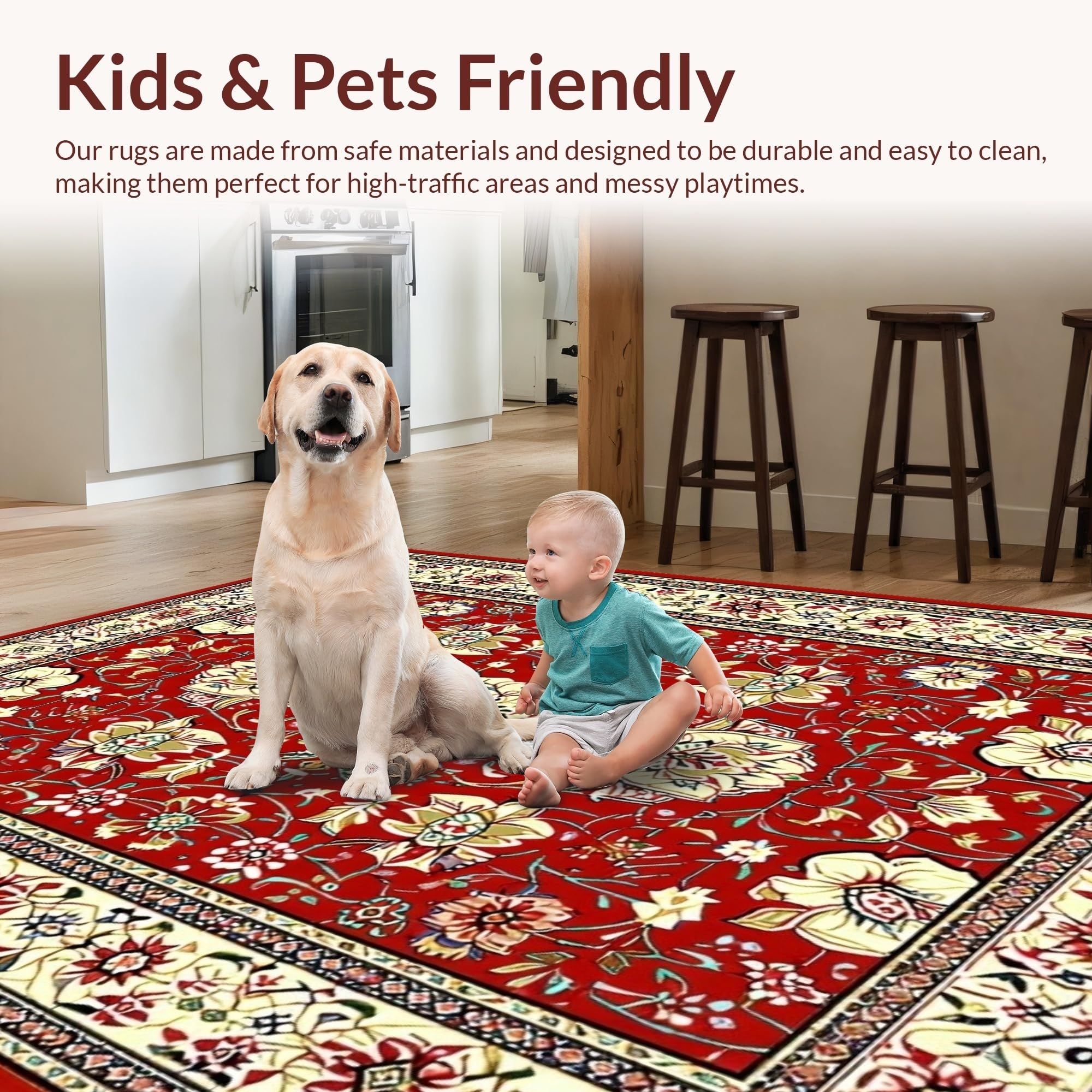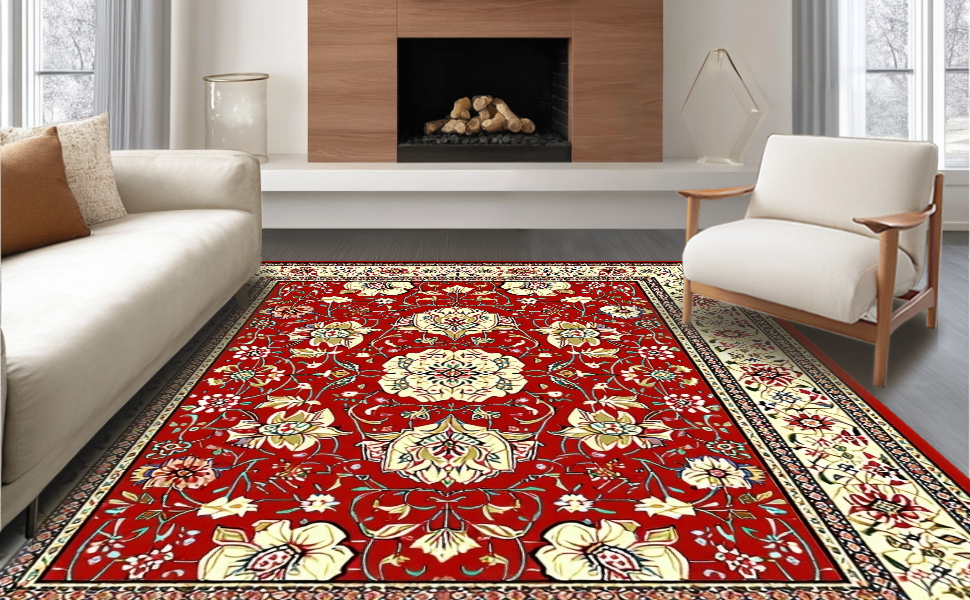 Ultra Soft Area Rug, Non Slip, Stain Resistant, Washable Area Rugs for Living Room, Bedroom, Rustic Red Geometric Composition(Red) Overview:
