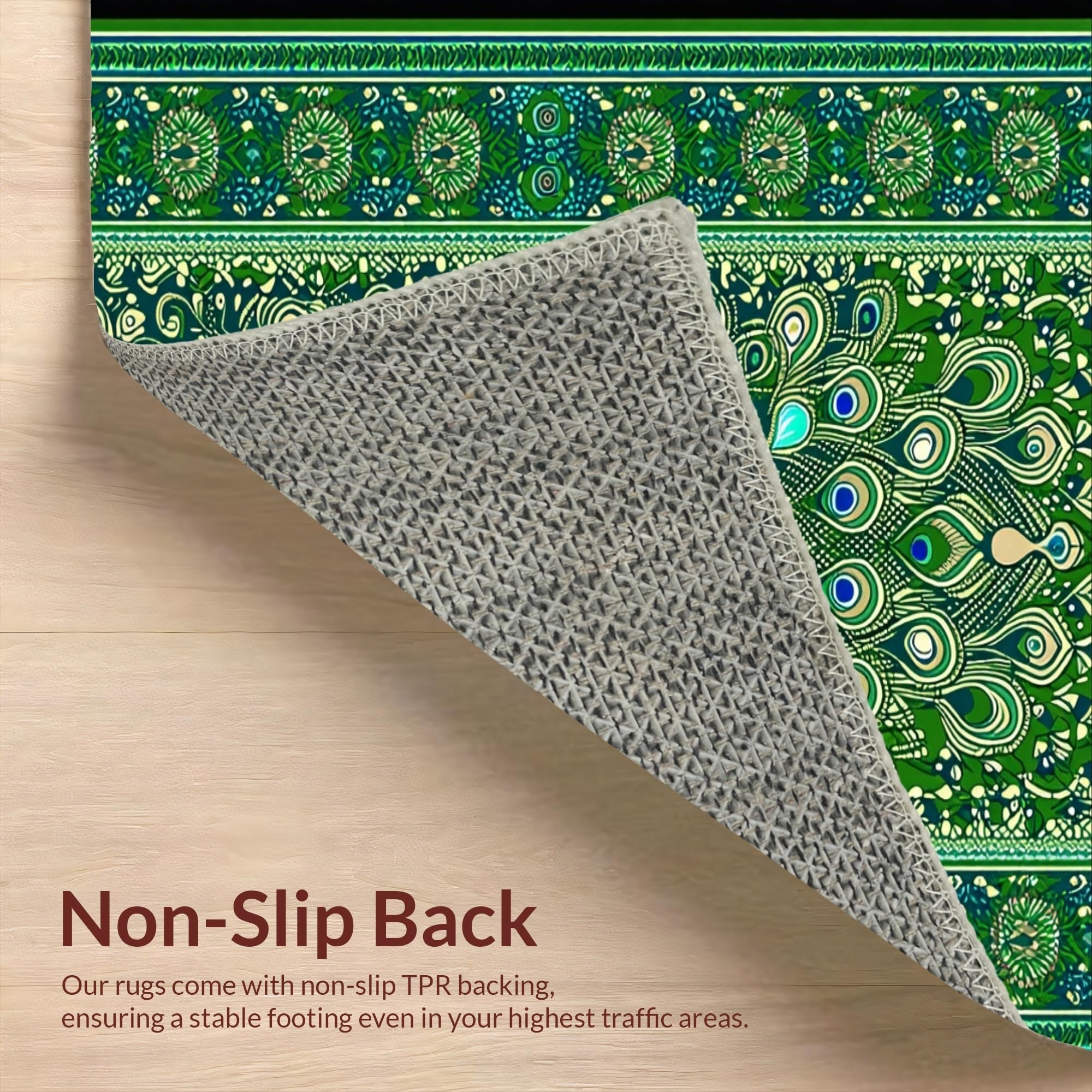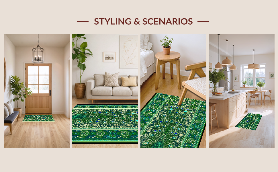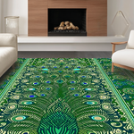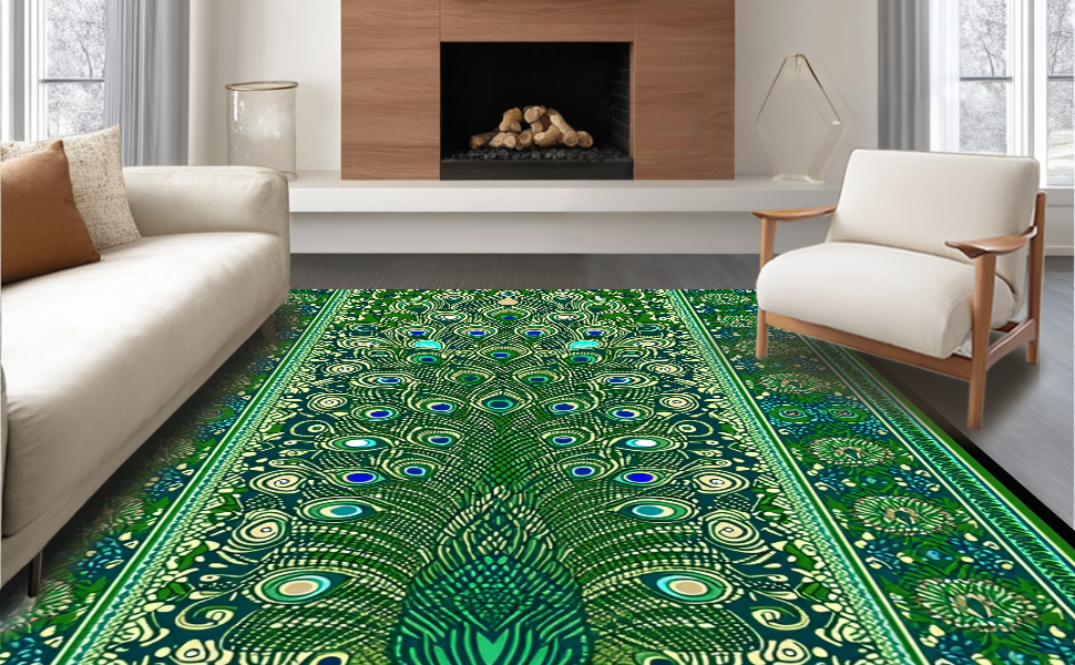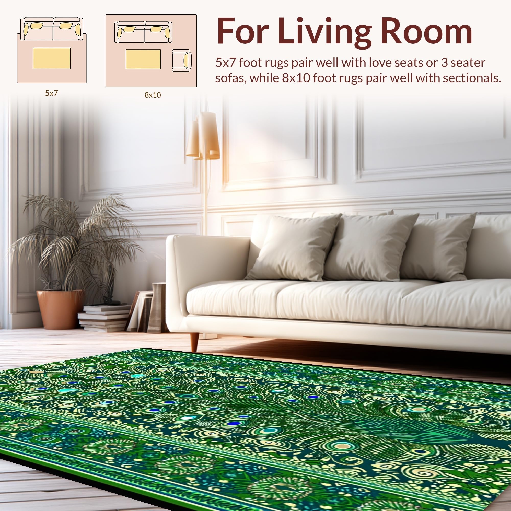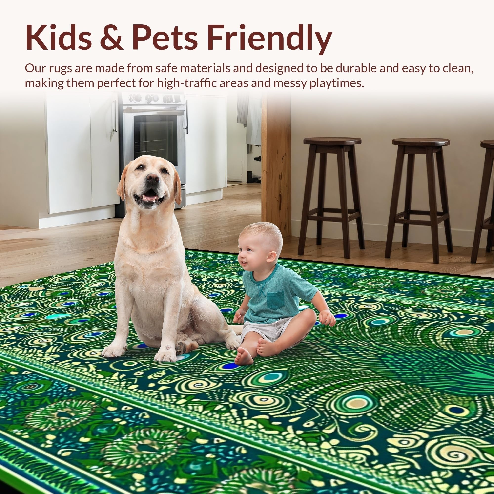 Ultra Soft Area Rug, Non Slip, Stain Resistant, Washable Area Rugs for Living Room, Bedroom, Rustic Scalloped Botanical Elegance(Green) Overview: