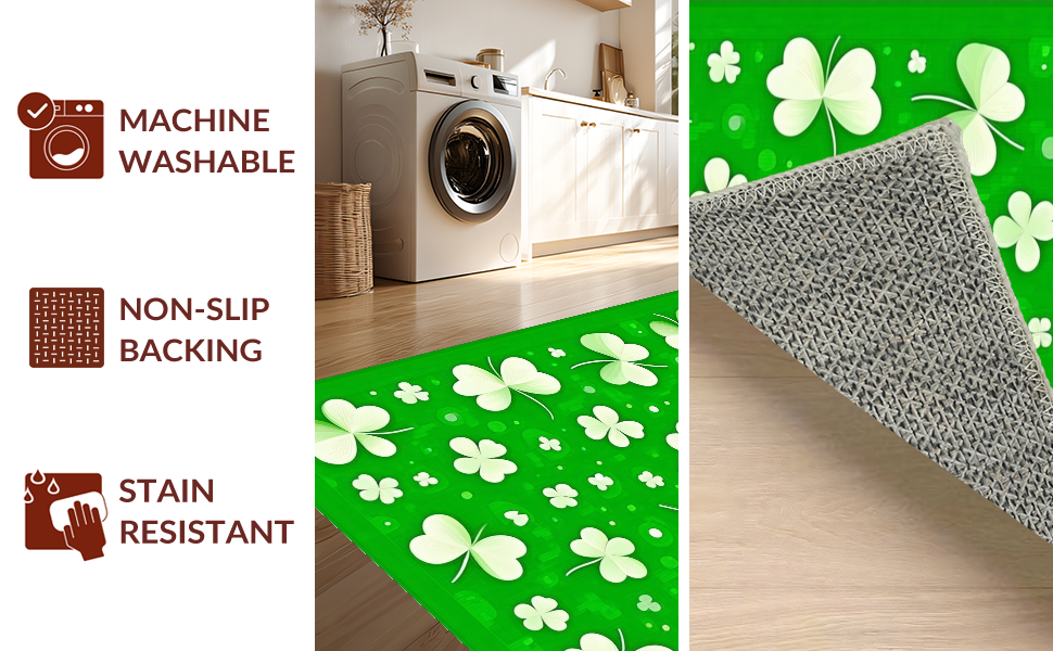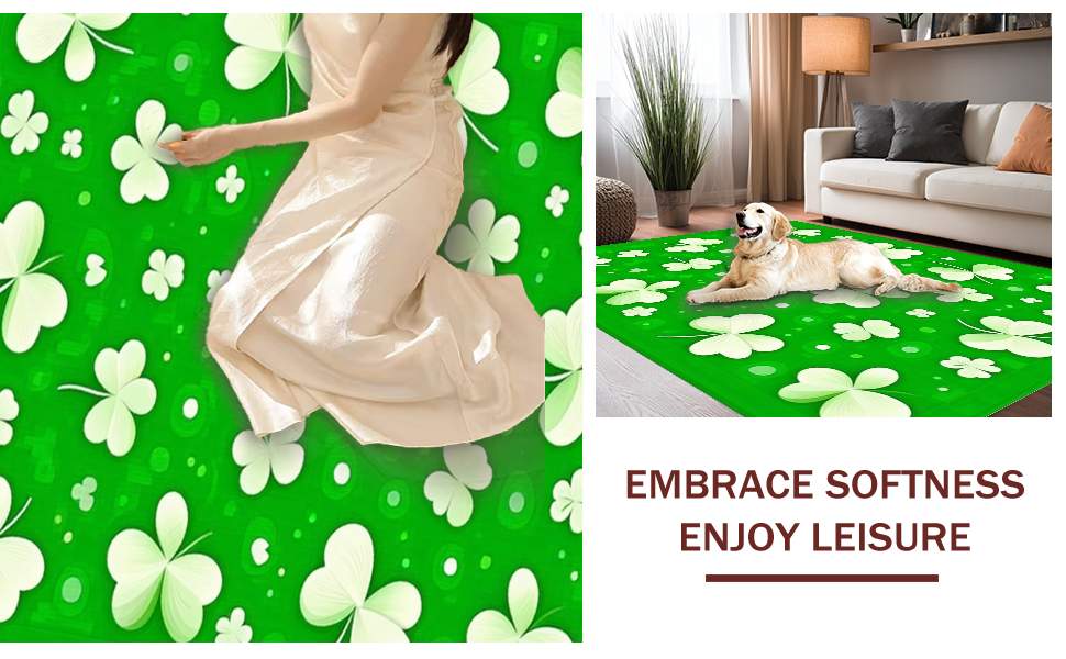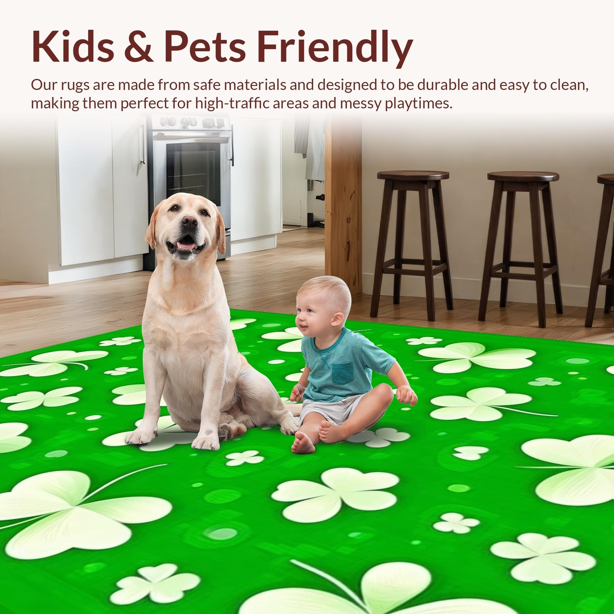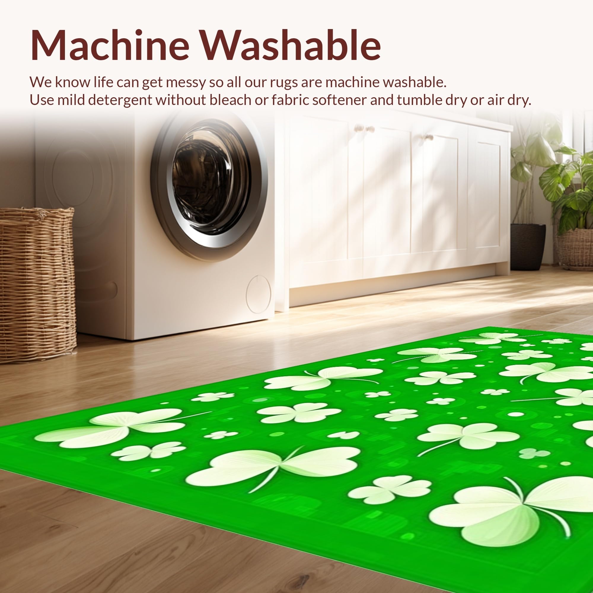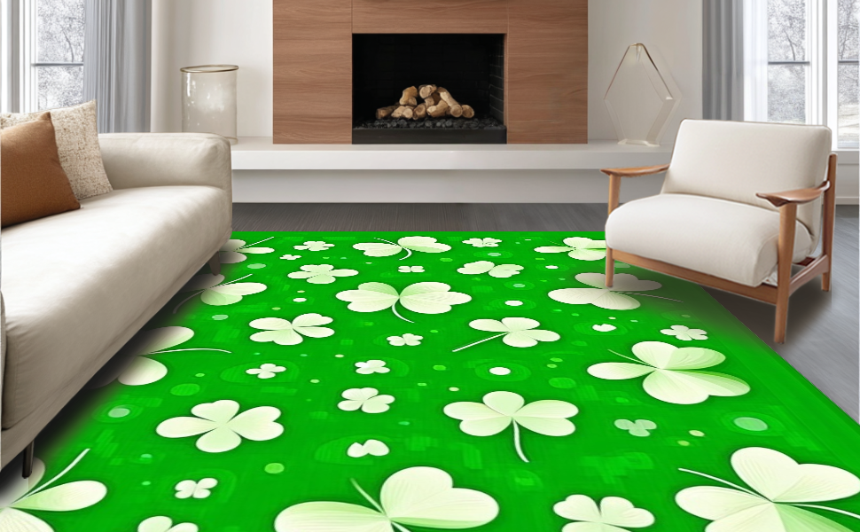 Ultra Soft Area Rug, Non Slip, Stain Resistant, Washable Area Rugs for Living Room, Bedroom, Rustic Shamrock Celebration Aesthetic(Green) Overview: