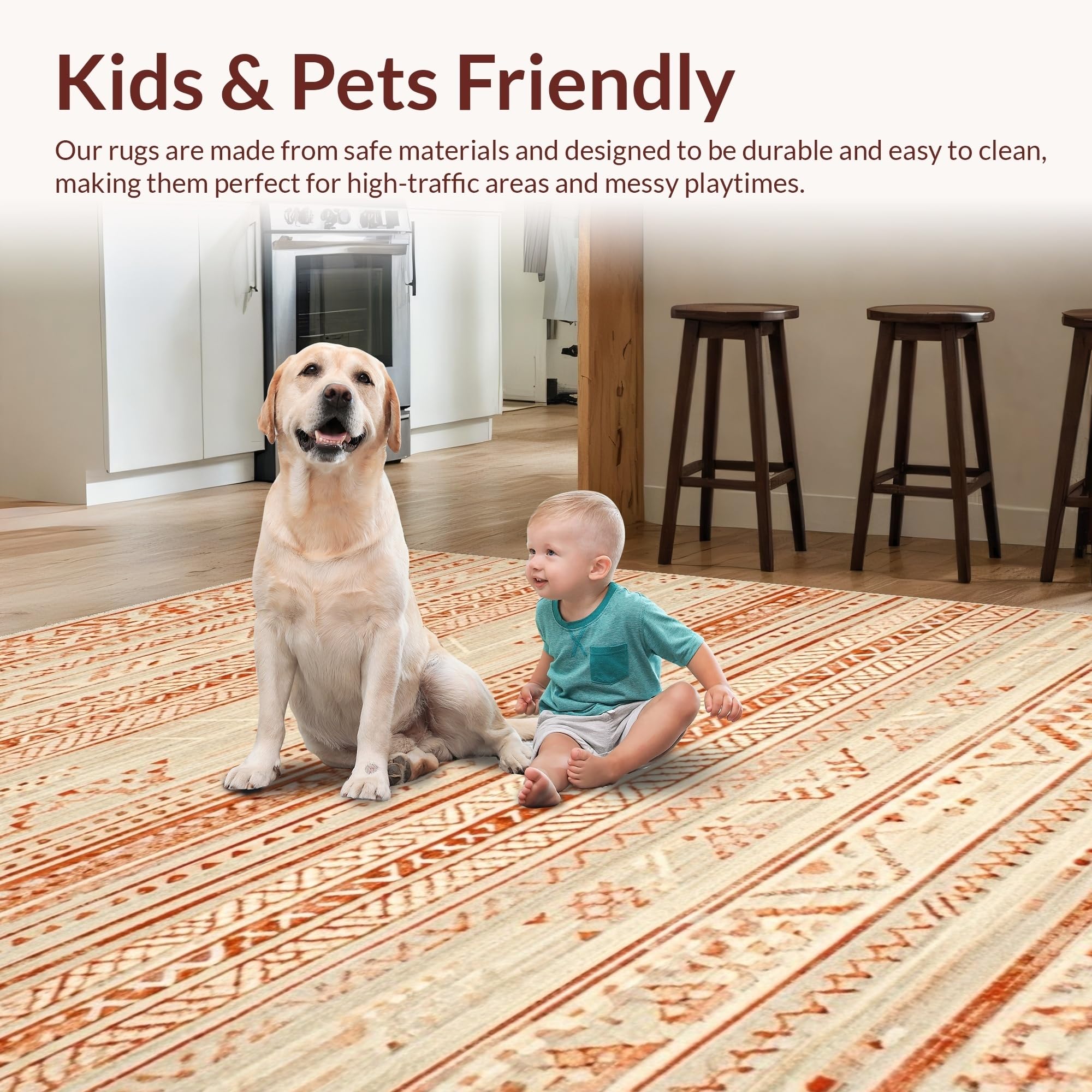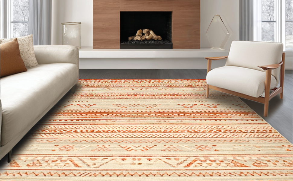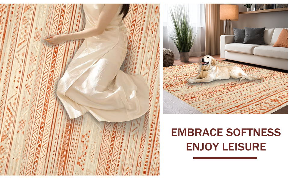 Ultra Soft Area Rug, Non Slip, Stain Resistant, Washable Area Rugs for Living Room, Bedroom, Rustic Soft Tasseled Motif(Red) Overview: