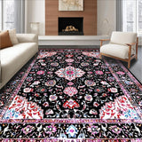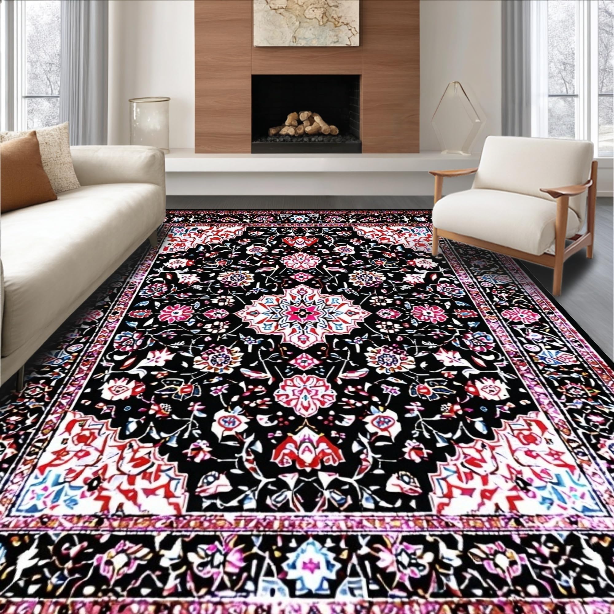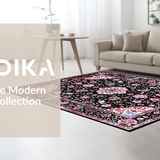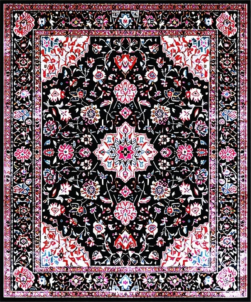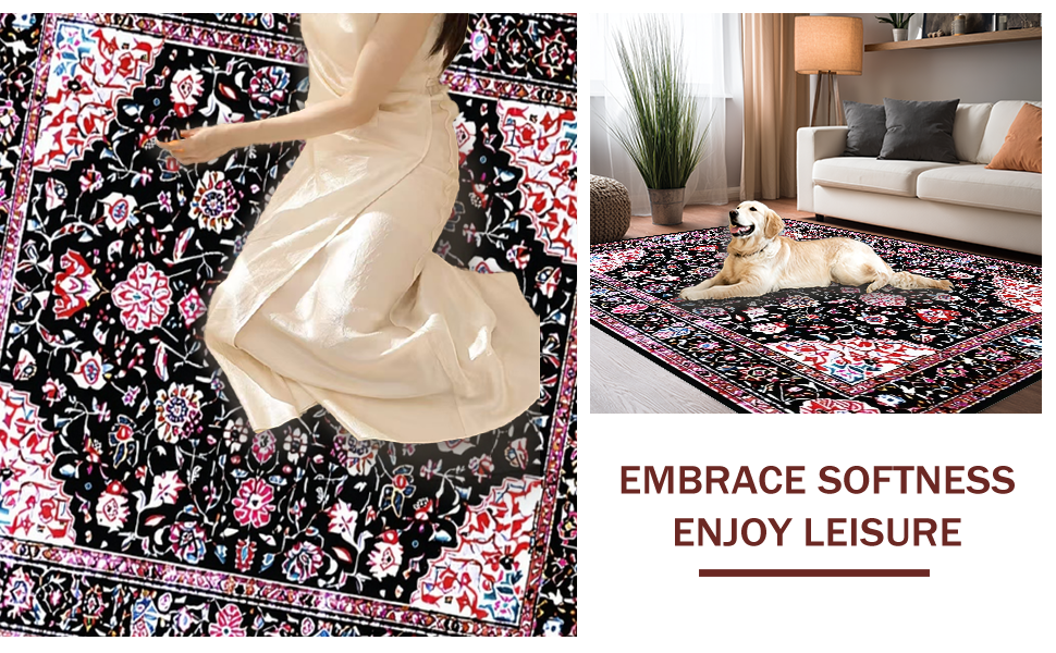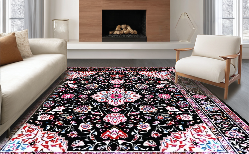 Ultra Soft Area Rug, Non Slip, Stain Resistant, Washable Area Rugs for Living Room, Bedroom, Rustic Tiled Floral Arrangement(Black) Overview: