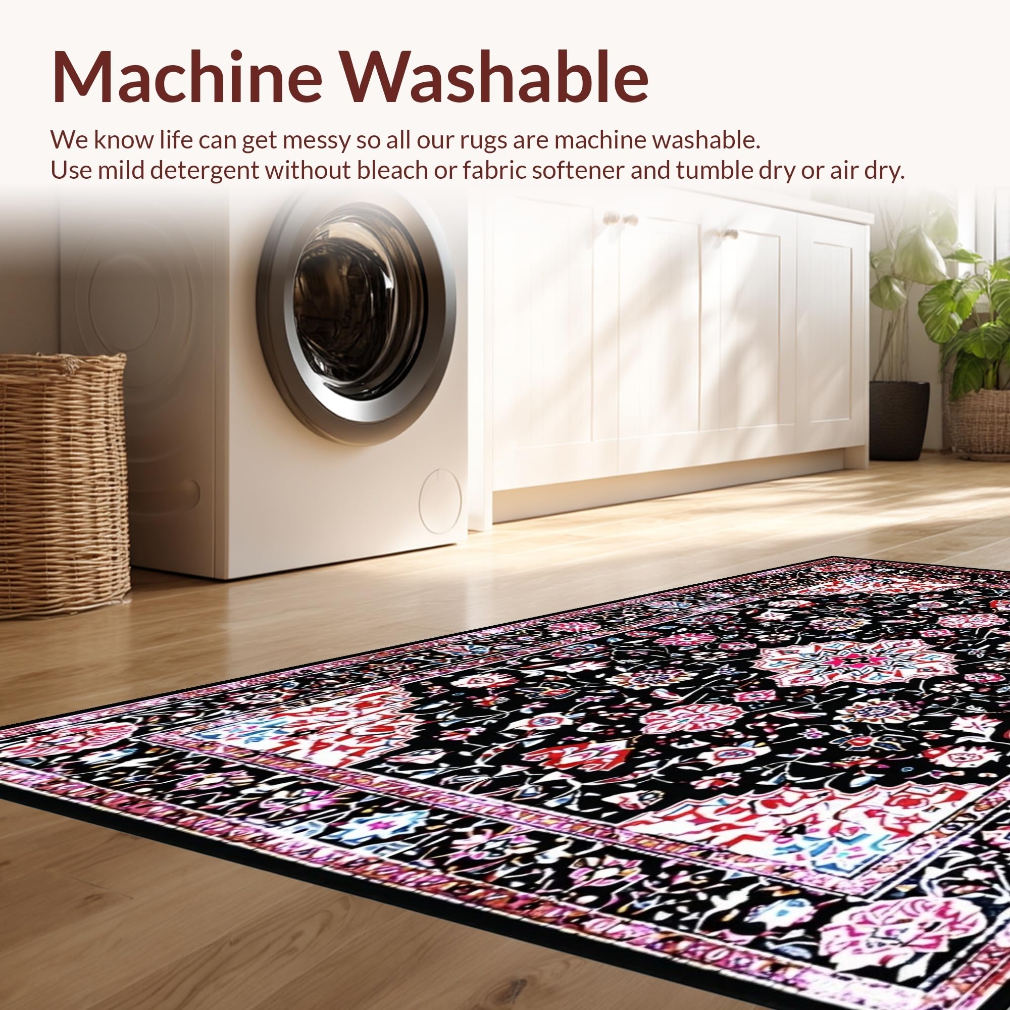 - Machine Washable: Our rugs can be easily thrown in the wash machine.