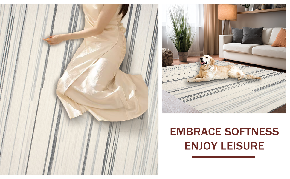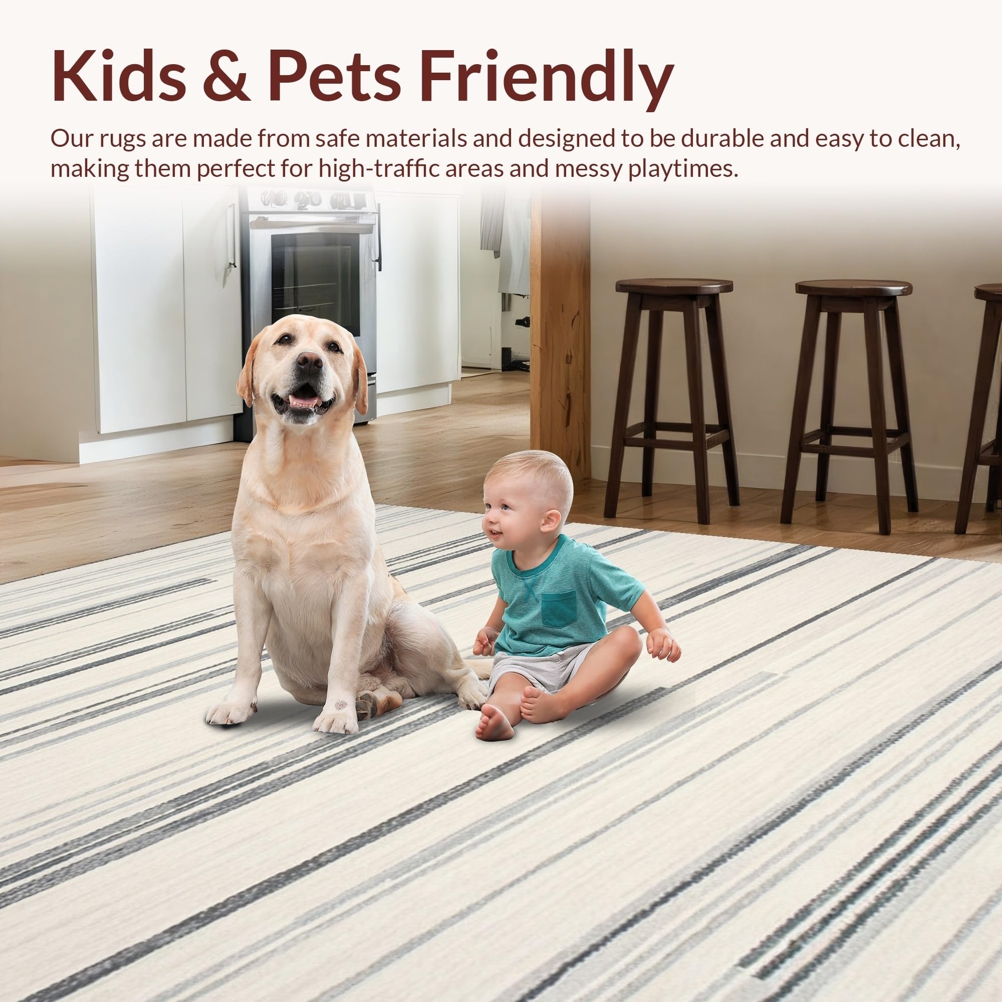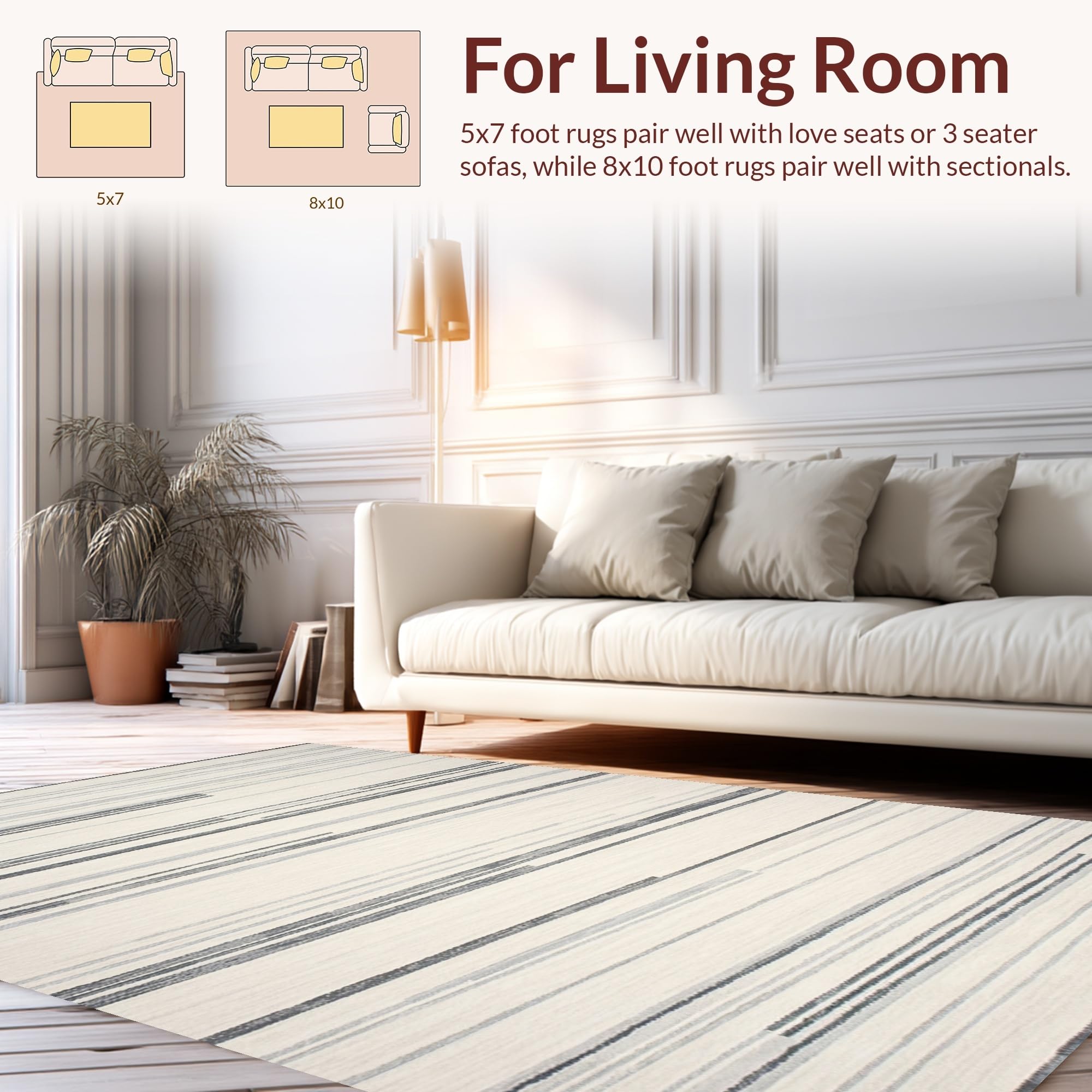 Ultra Soft Area Rug, Non Slip, Stain Resistant, Washable Area Rugs for Living Room, Bedroom, Rustic Toned Striped Texture(Gray) Overview: