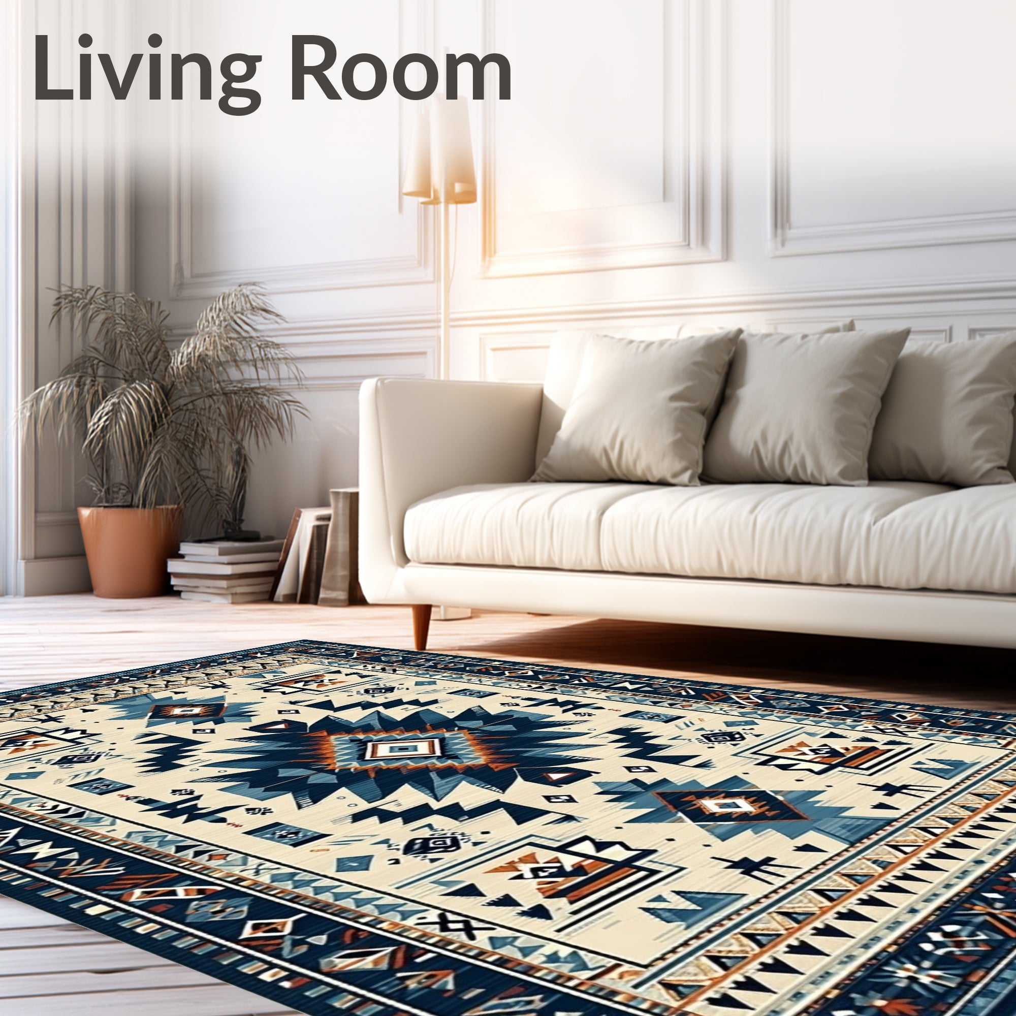 Ultra Soft Area Rug, Non Slip, Stain Resistant, Washable Area Rugs for Living Room, Bedroom, Rustic Traditional Aztec Inspired(Beige) Overview: