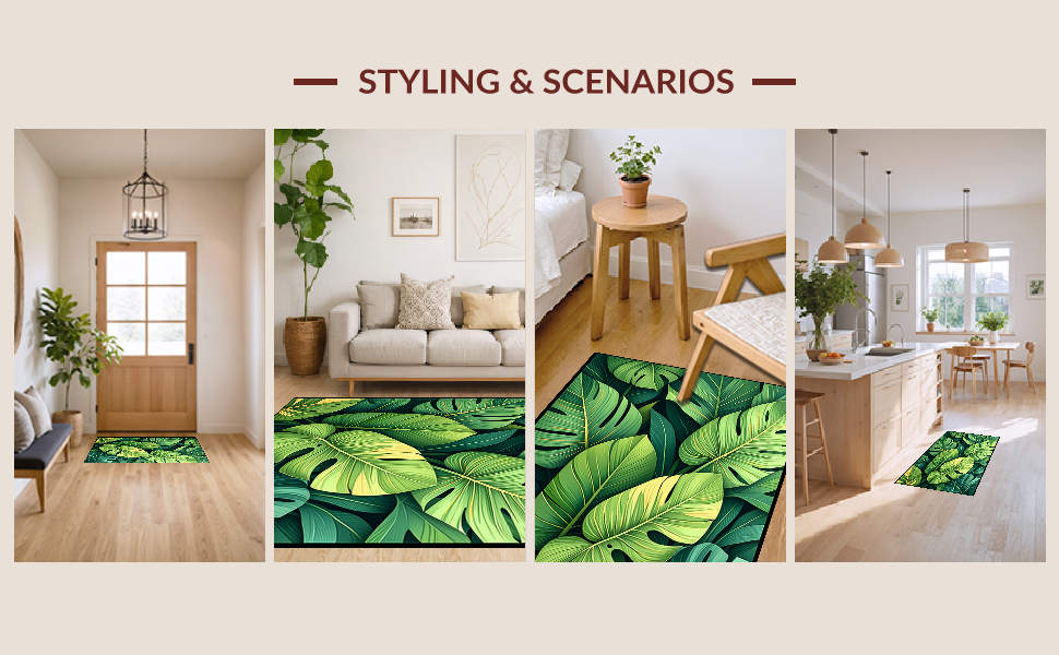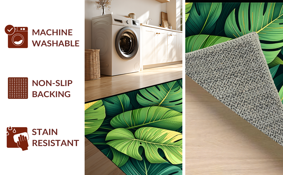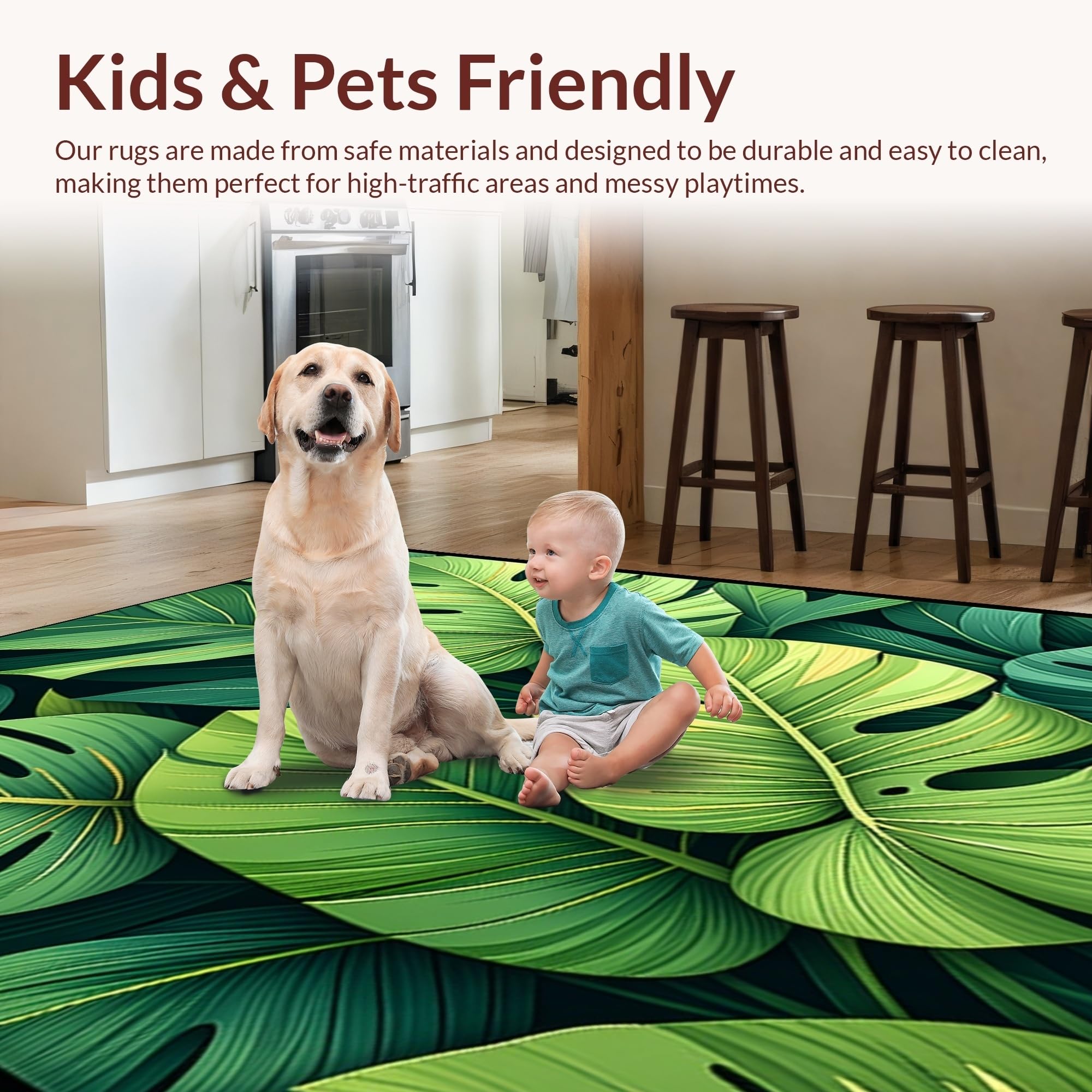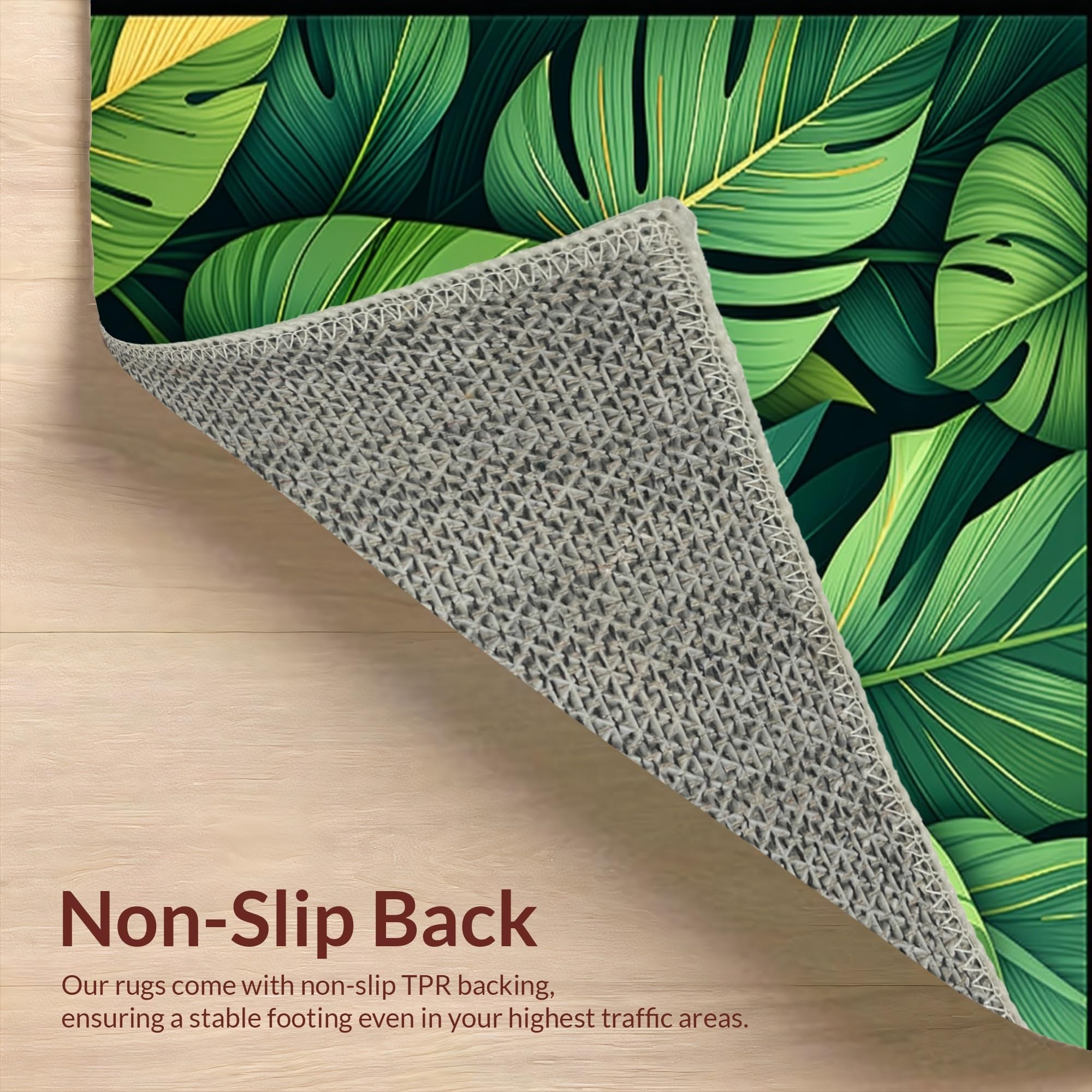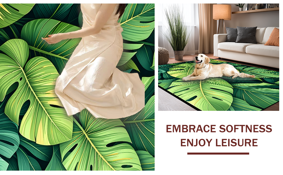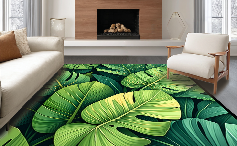 Ultra Soft Area Rug, Non Slip, Stain Resistant, Washable Area Rugs for Living Room, Bedroom, Rustic Tropical Plant Pattern(Green) Overview:
