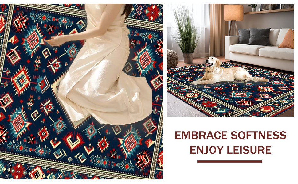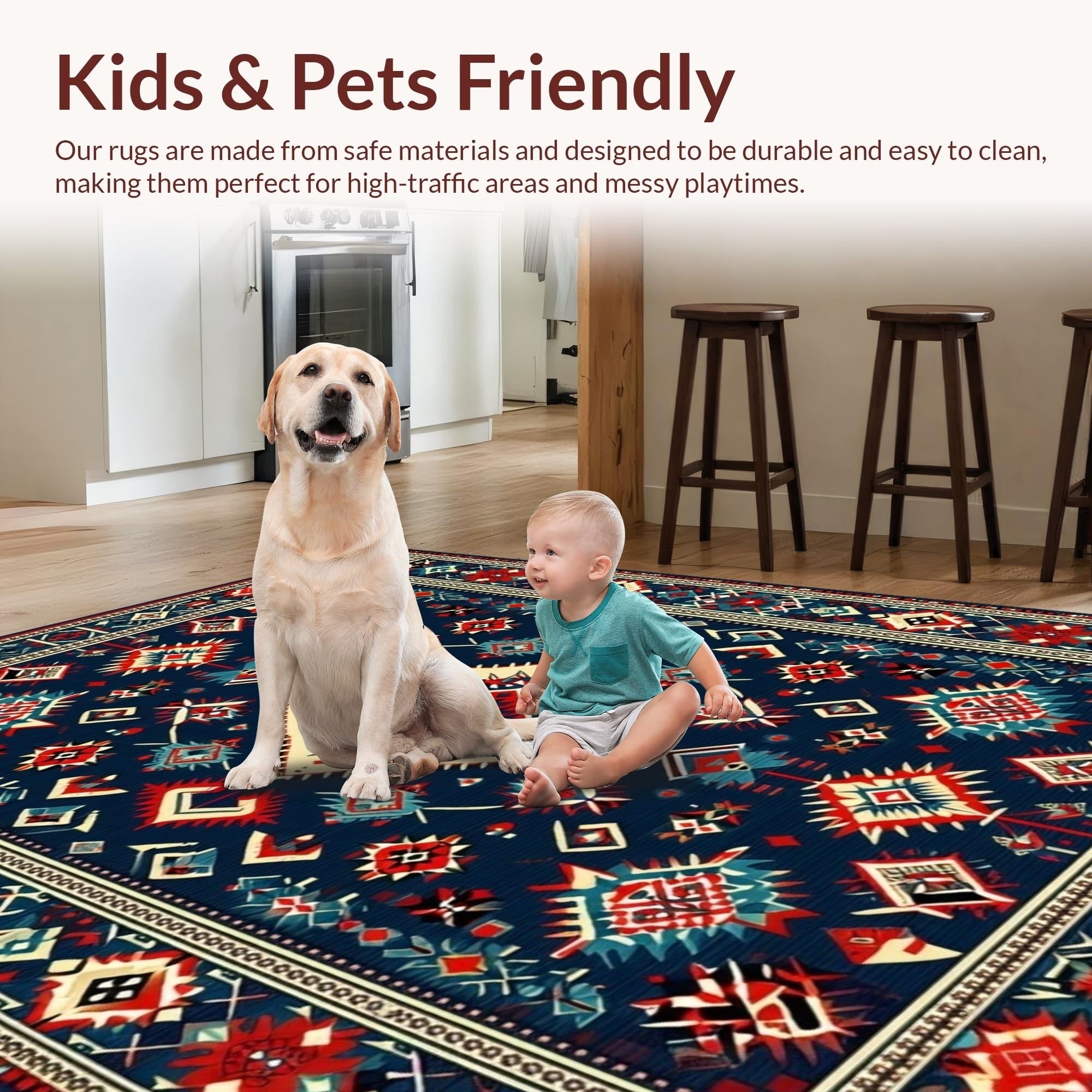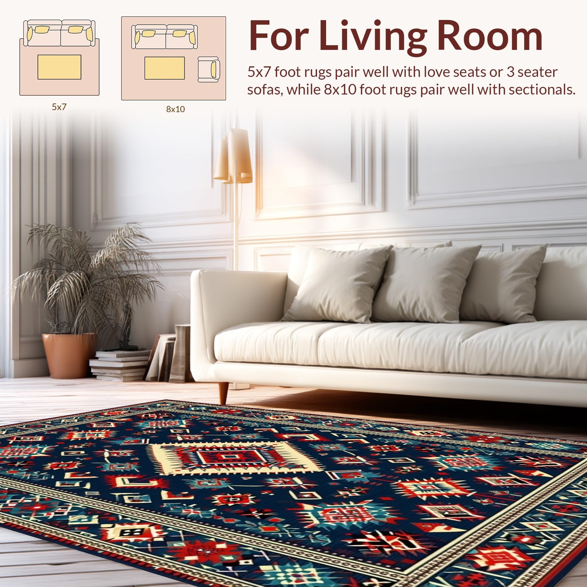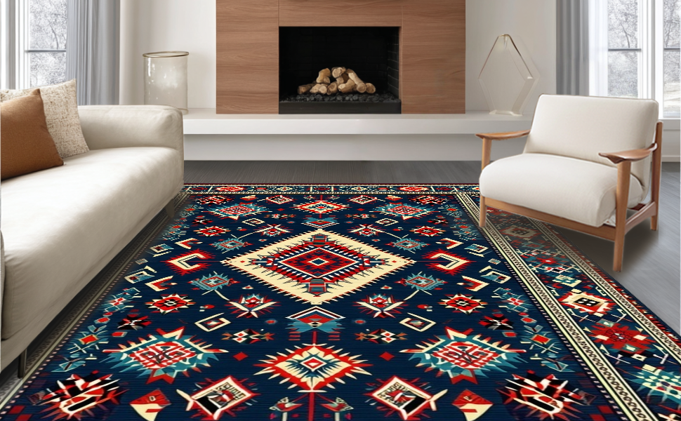 Ultra Soft Area Rug, Non Slip, Stain Resistant, Washable Area Rugs for Living Room, Bedroom, Rustic Vibrant Abstract Design(Blue) Overview: