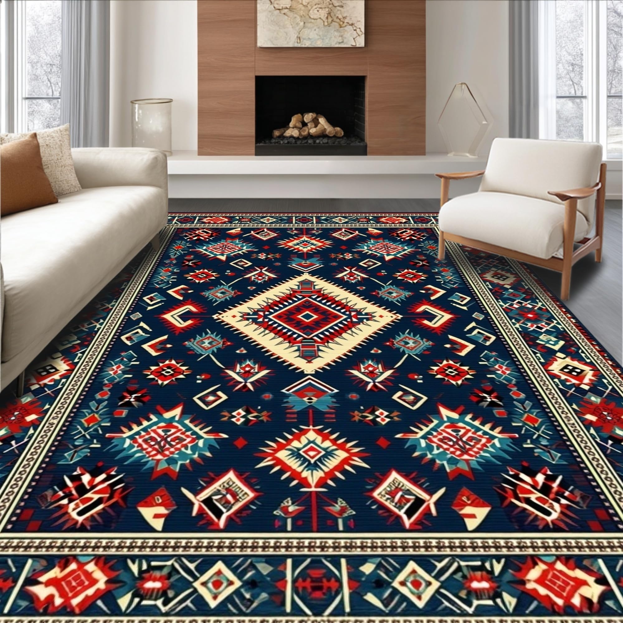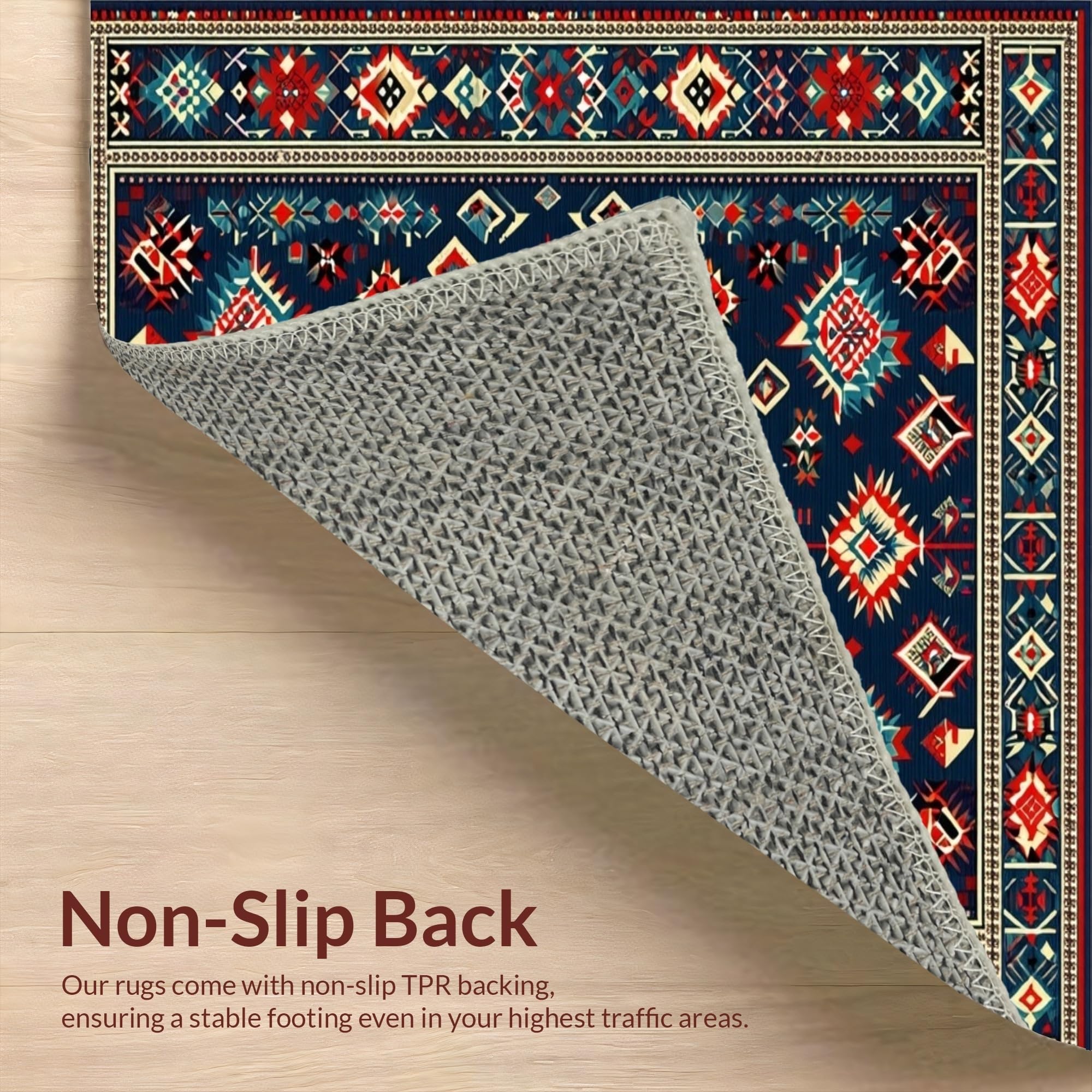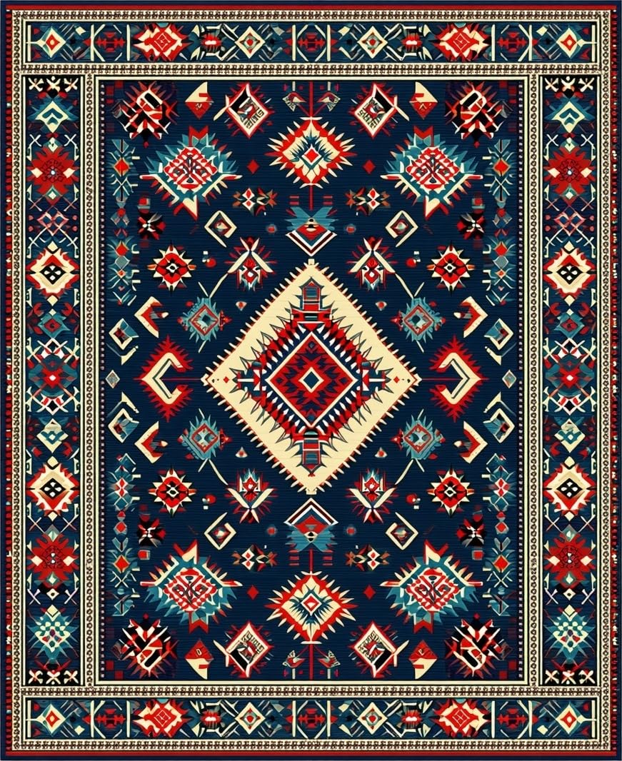 Ultra Soft Area Rug, Non Slip, Stain Resistant, Washable Area Rugs for Living Room, Bedroom, Rustic Vibrant Abstract Design(Blue) Overview: