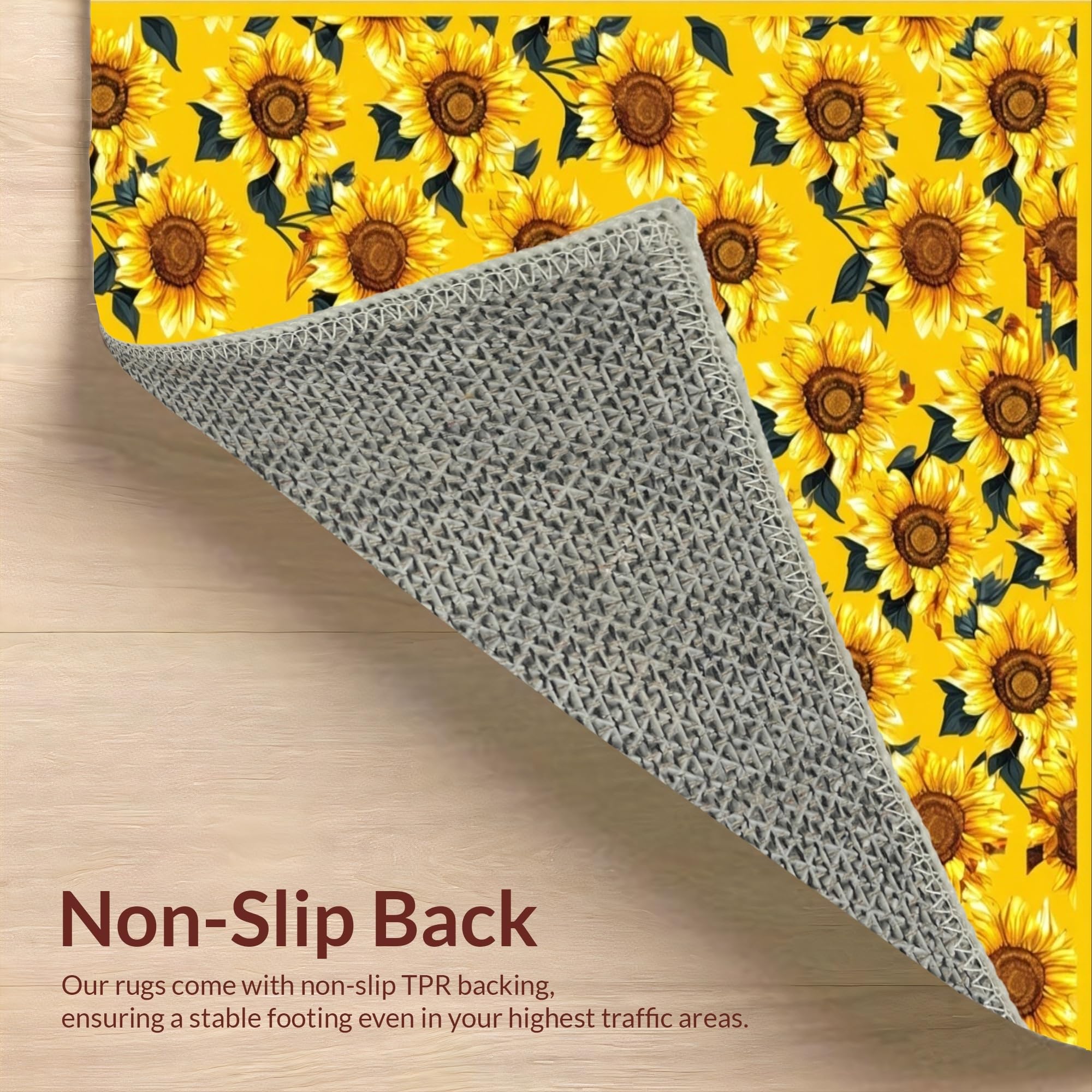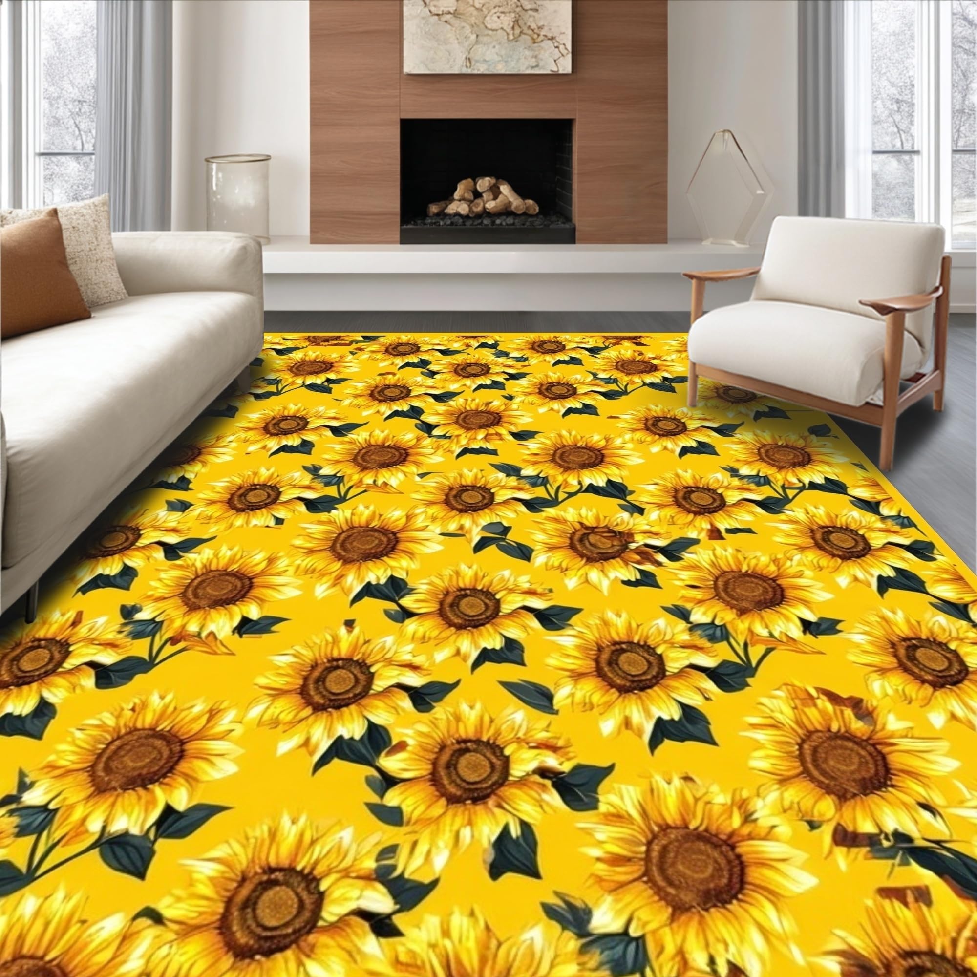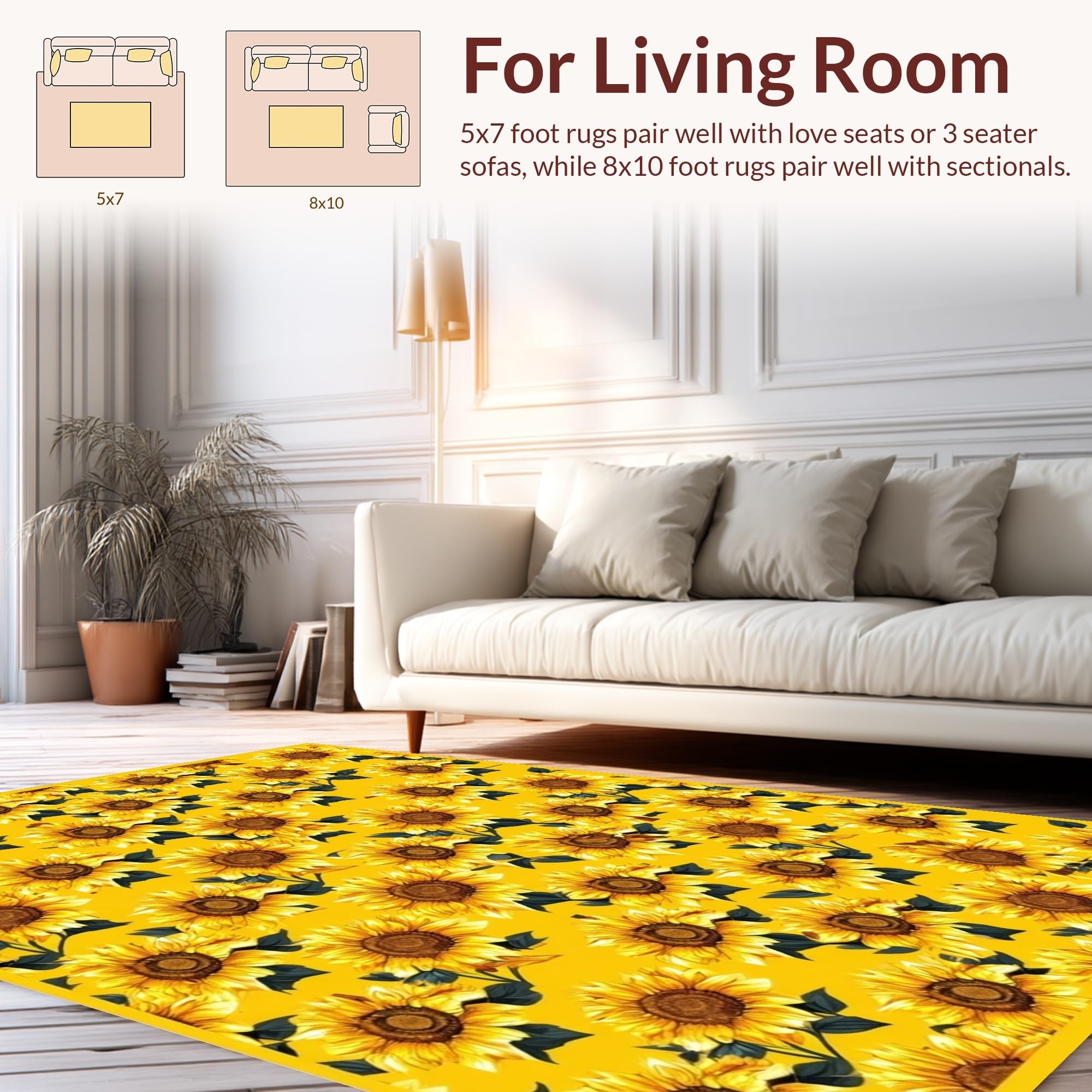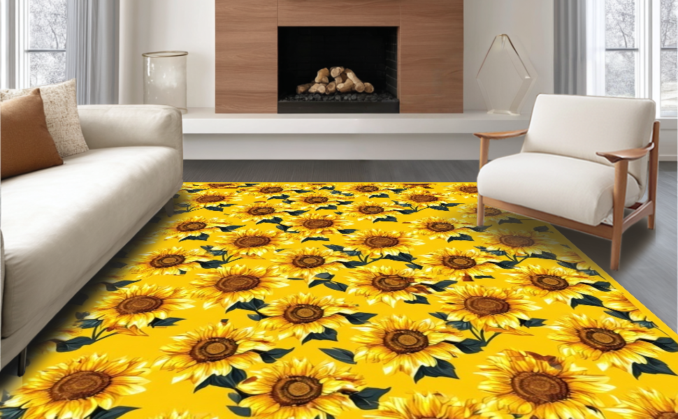 Ultra Soft Area Rug, Non Slip, Stain Resistant, Washable Area Rugs for Living Room, Bedroom, Rustic Vibrant Sunflower Illustration(Yellow) Overview: