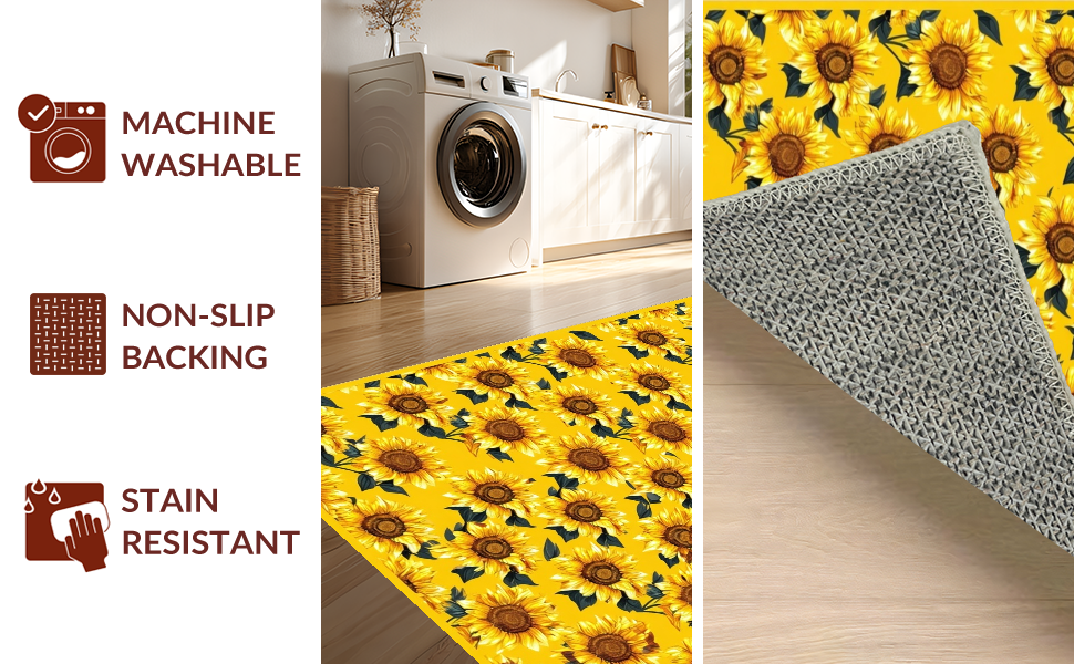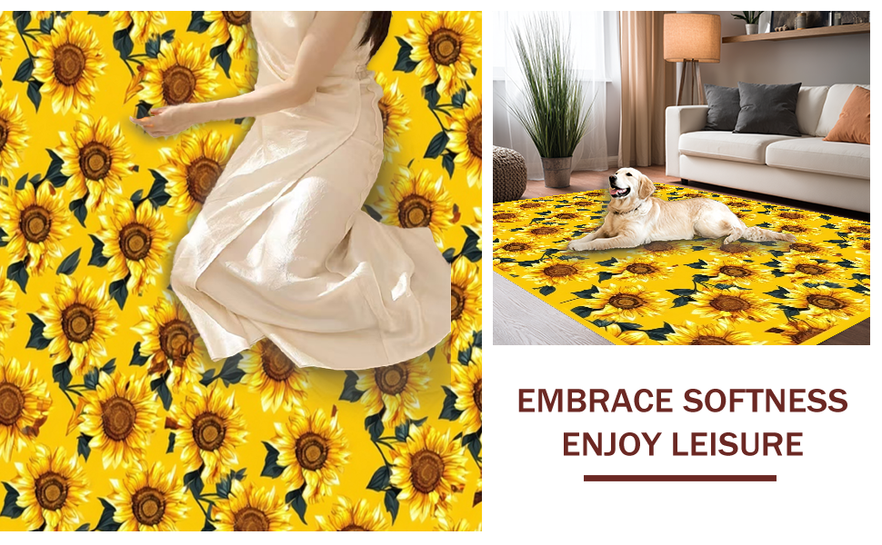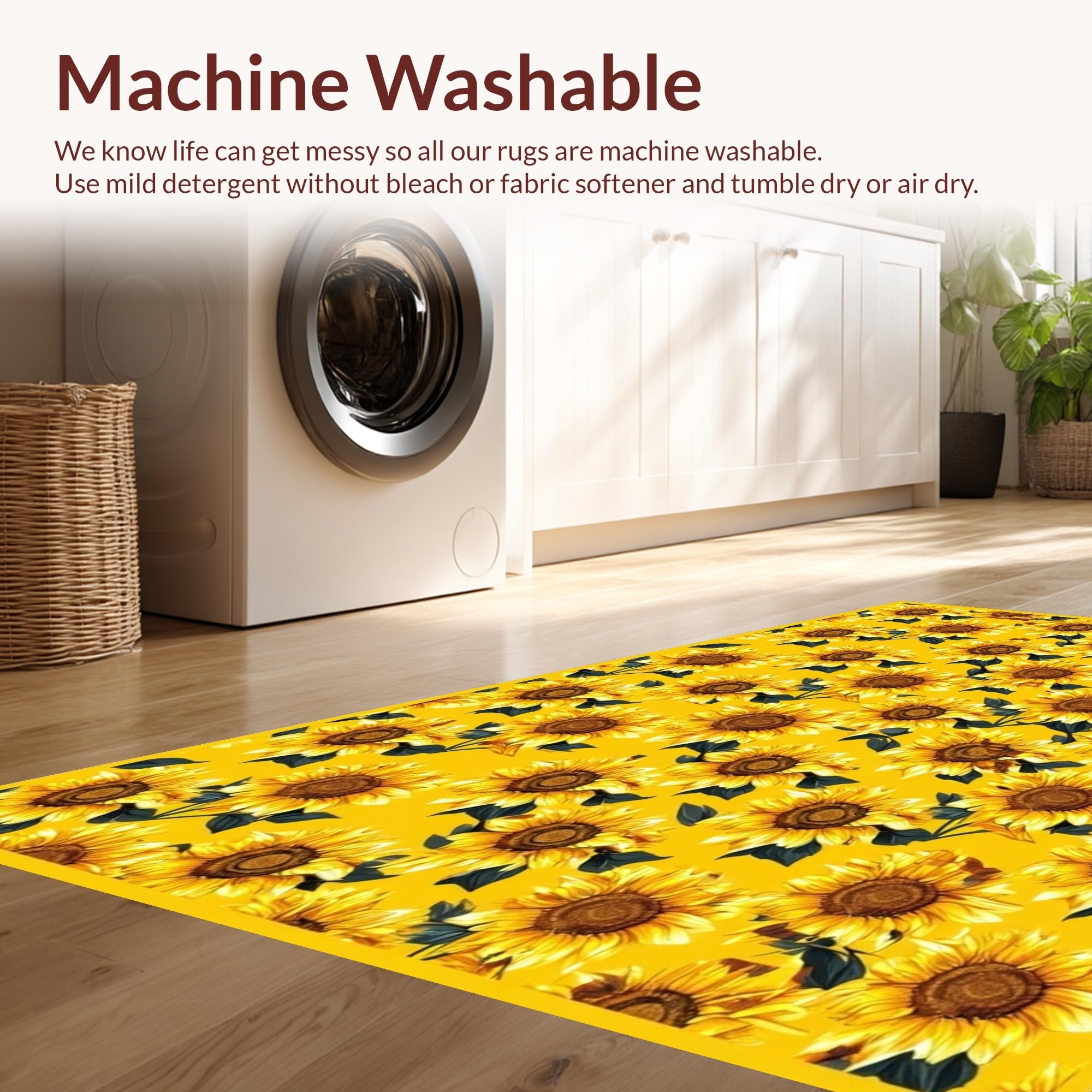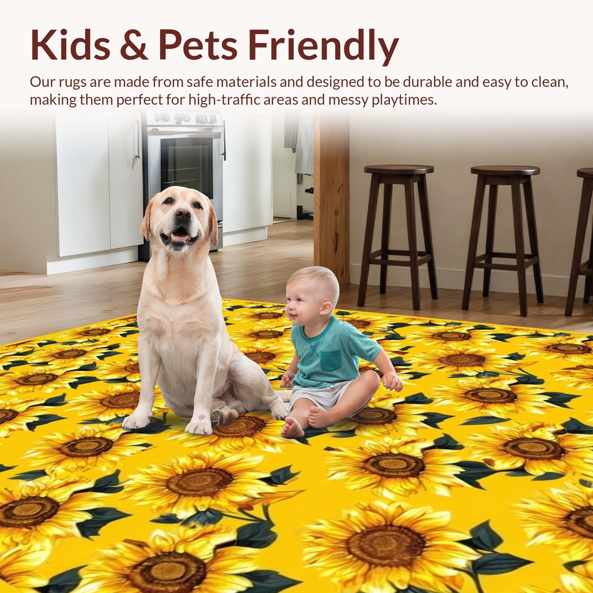 Ultra Soft Area Rug, Non Slip, Stain Resistant, Washable Area Rugs for Living Room, Bedroom, Rustic Vibrant Sunflower Illustration(Yellow) Overview: