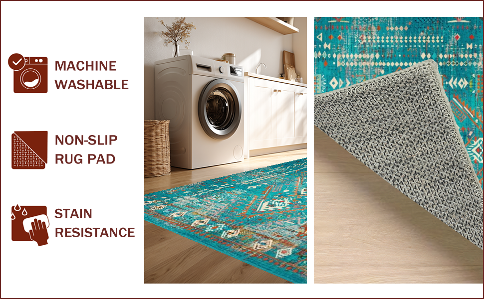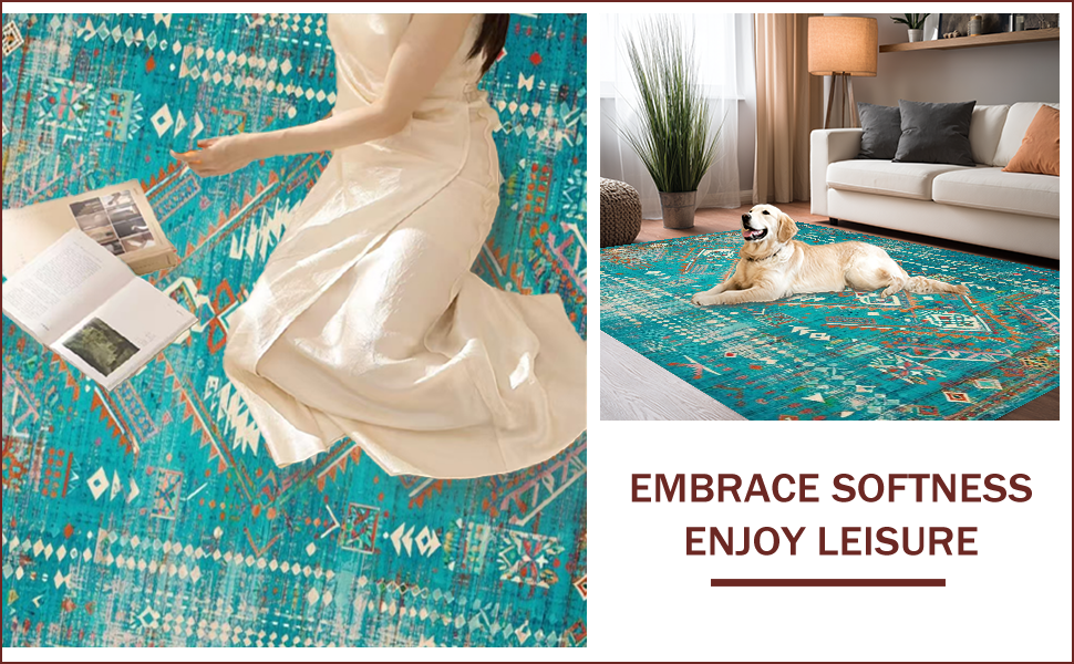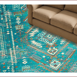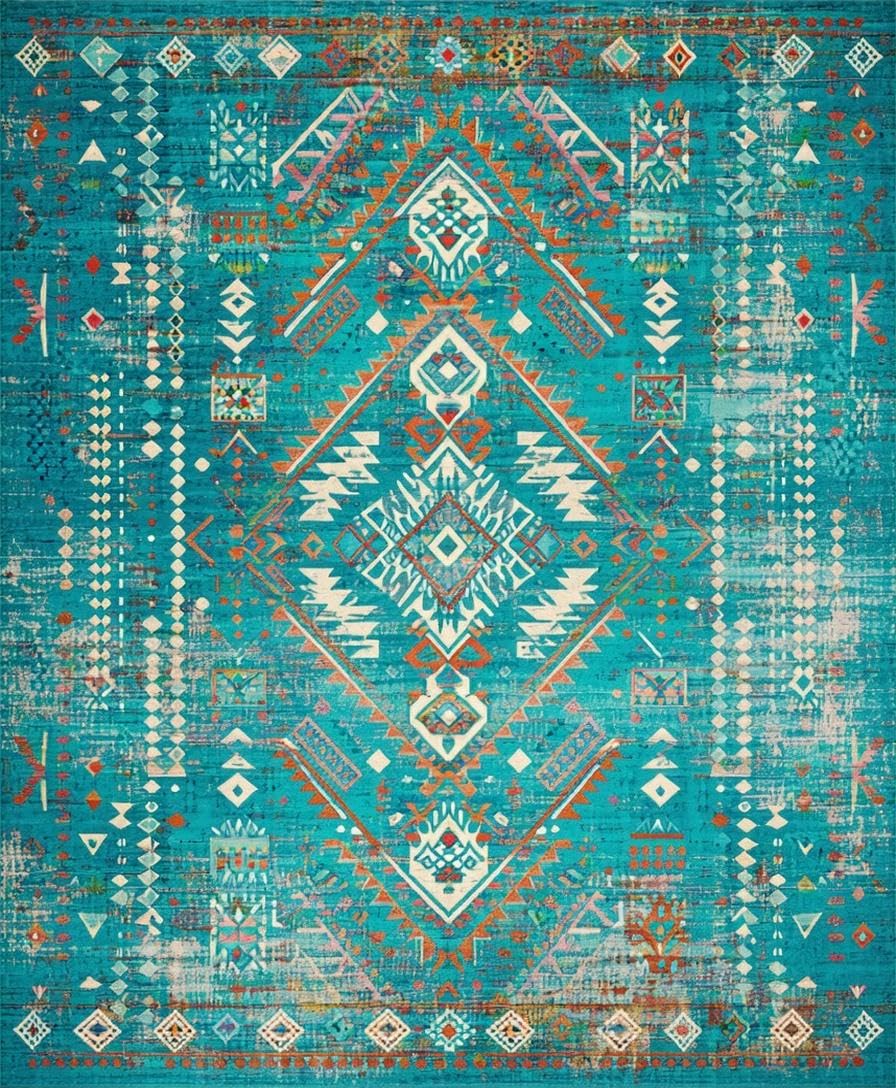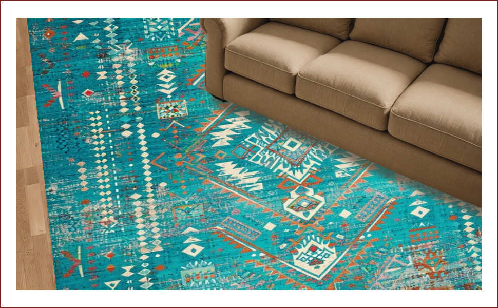 Ultra Soft Area Rug, Non Slip, Stain Resistant, Washable Area Rugs for Living Room, Bedroom, Rustic Vibrant Tribal Aesthetic(Blue) Overview: