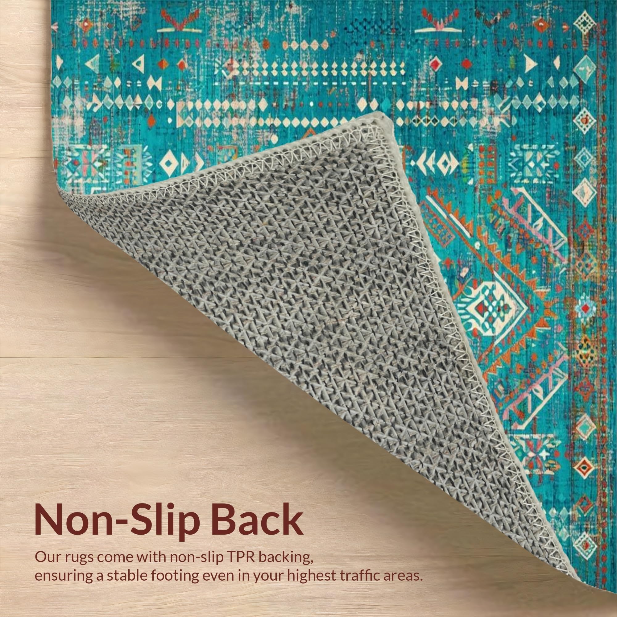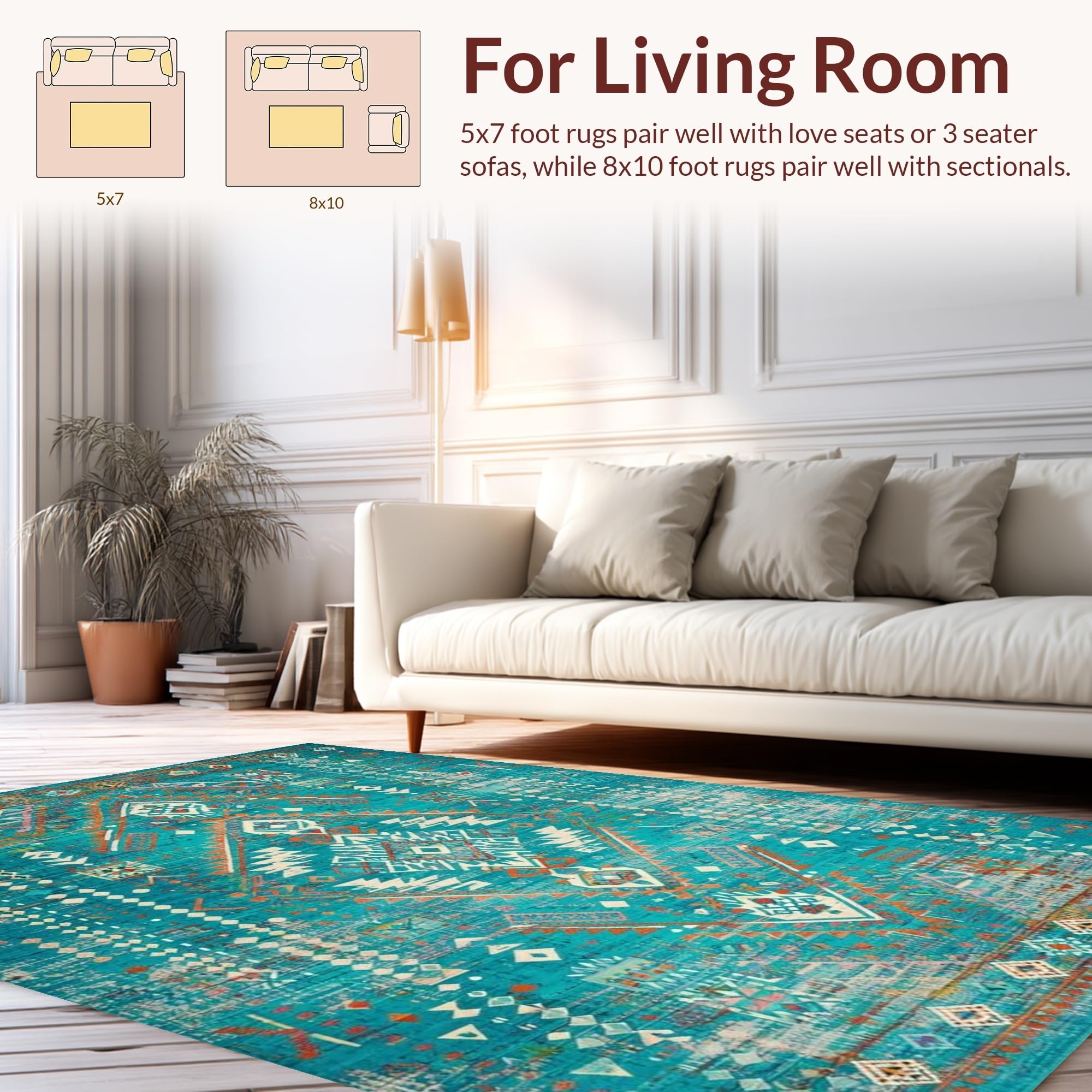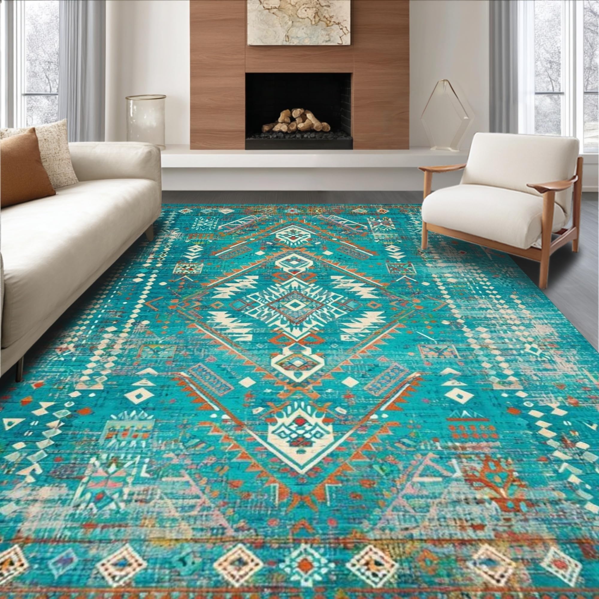Ultra Soft Area Rug, Non Slip, Stain Resistant, Washable Area Rugs for Living Room, Bedroom, Rustic Vibrant Tribal Aesthetic(Blue) Overview: