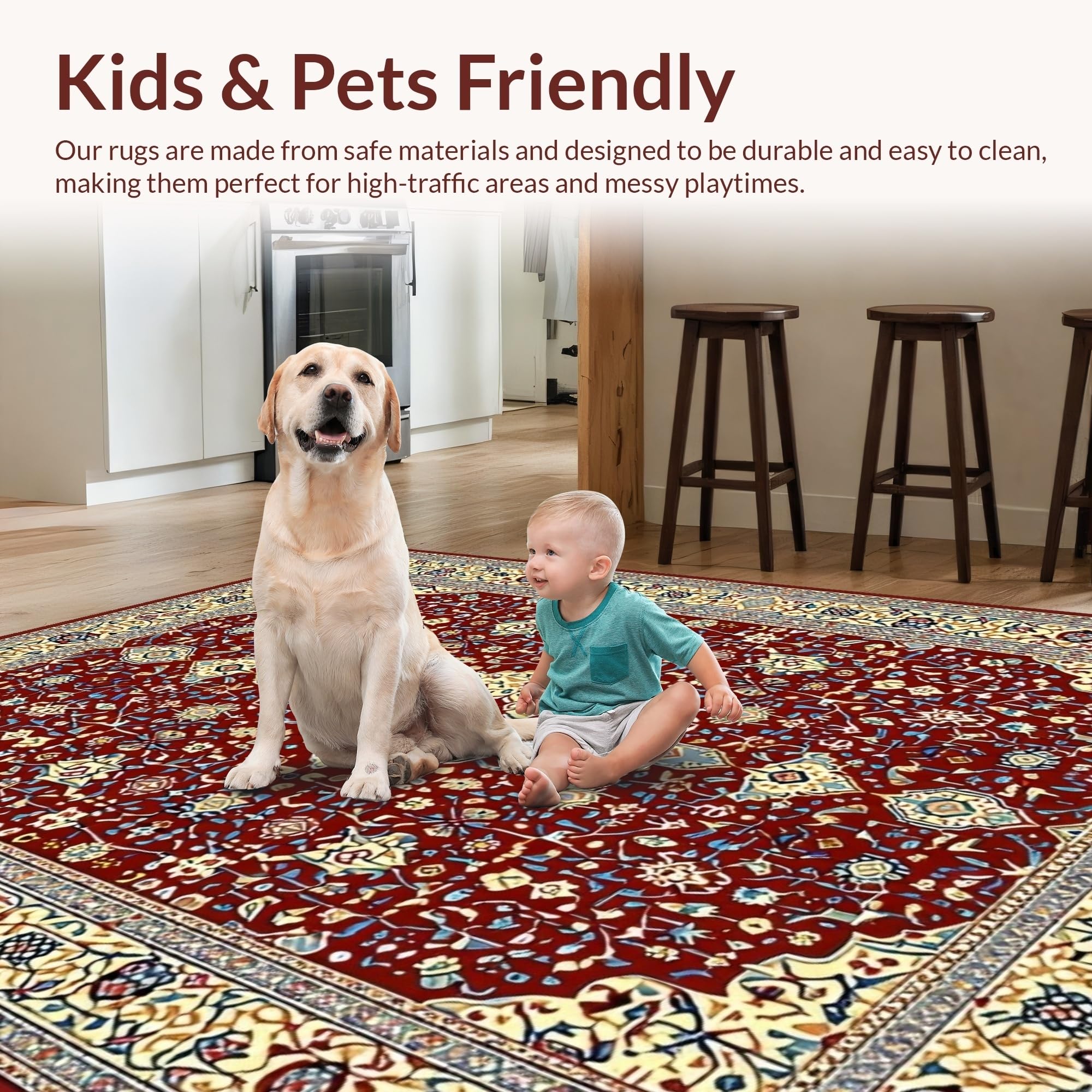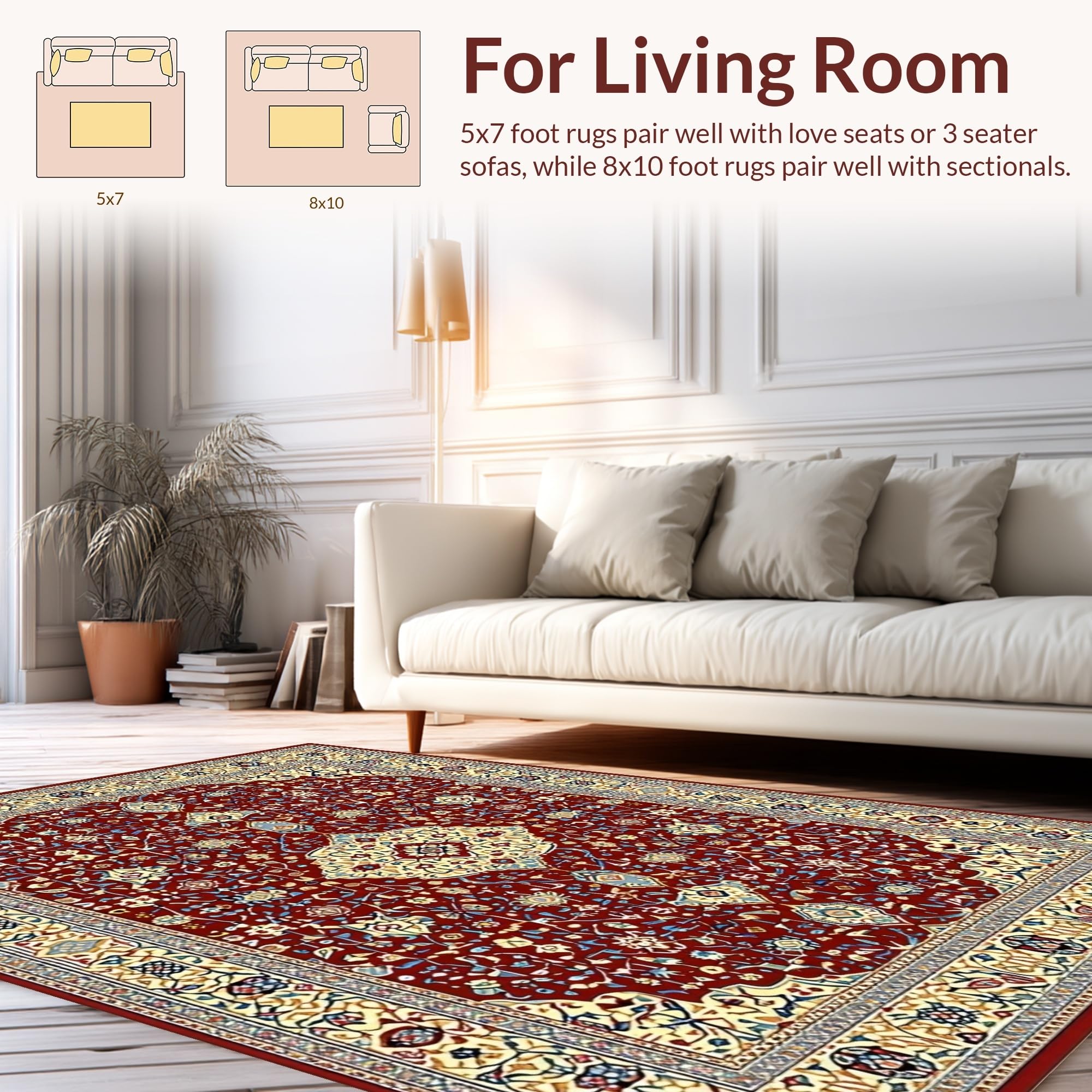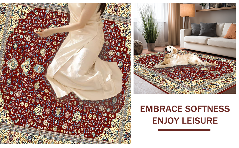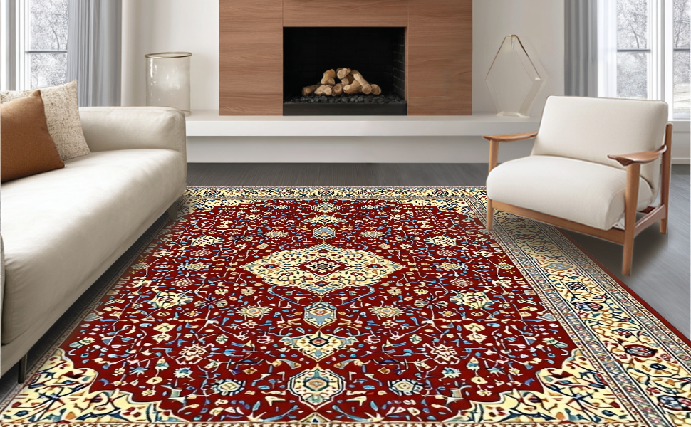 Ultra Soft Area Rug, Non Slip, Stain Resistant, Washable Area Rugs for Living Room, Bedroom, Rustic Vintage Ethnic Patterns(Red) Overview: