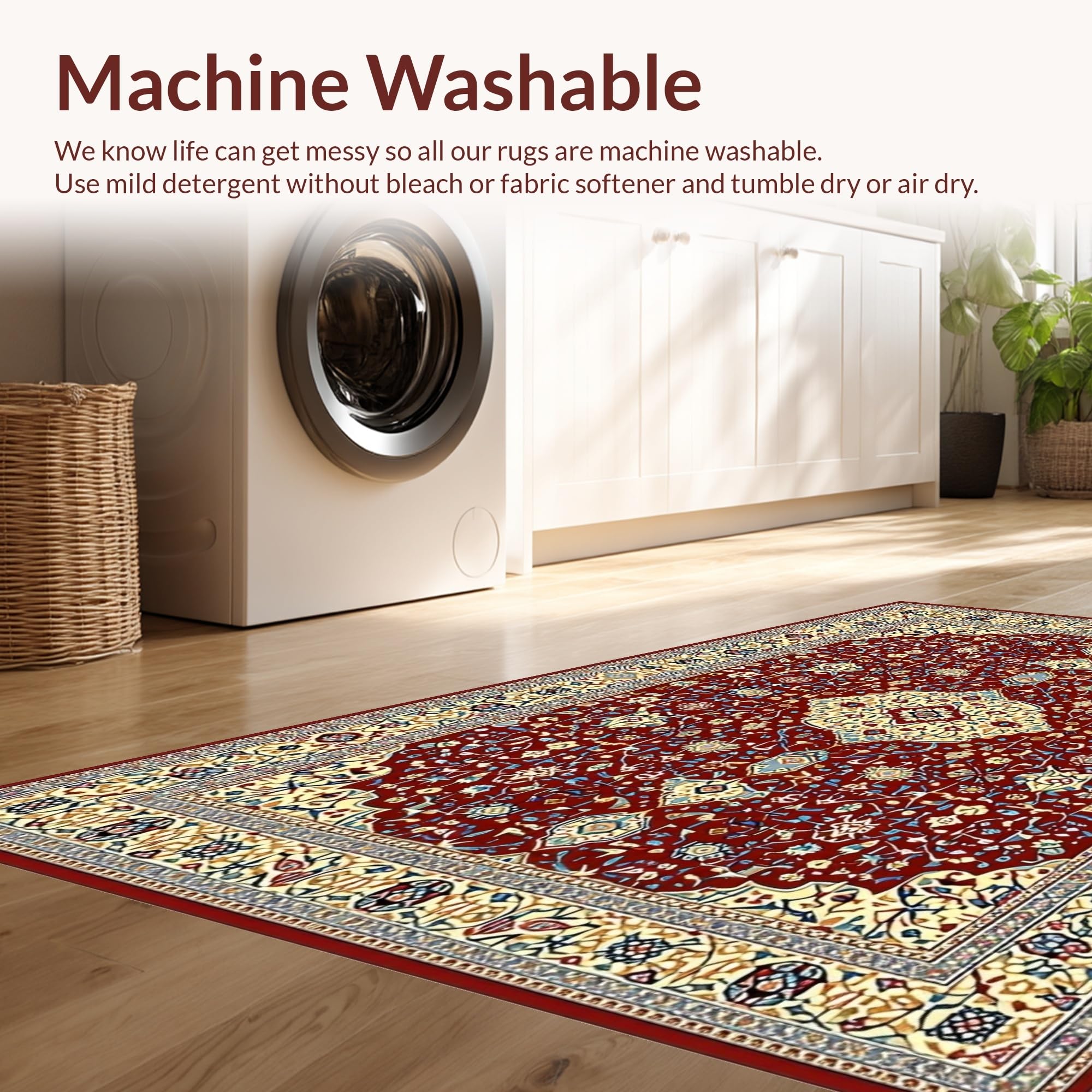 - Machine Washable: Our rugs can be easily thrown in the wash machine.