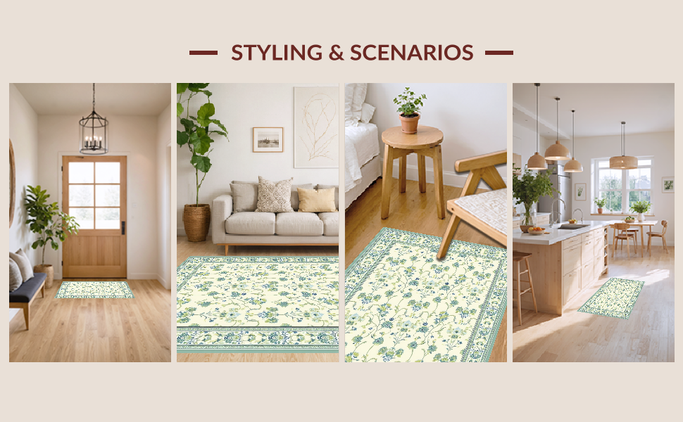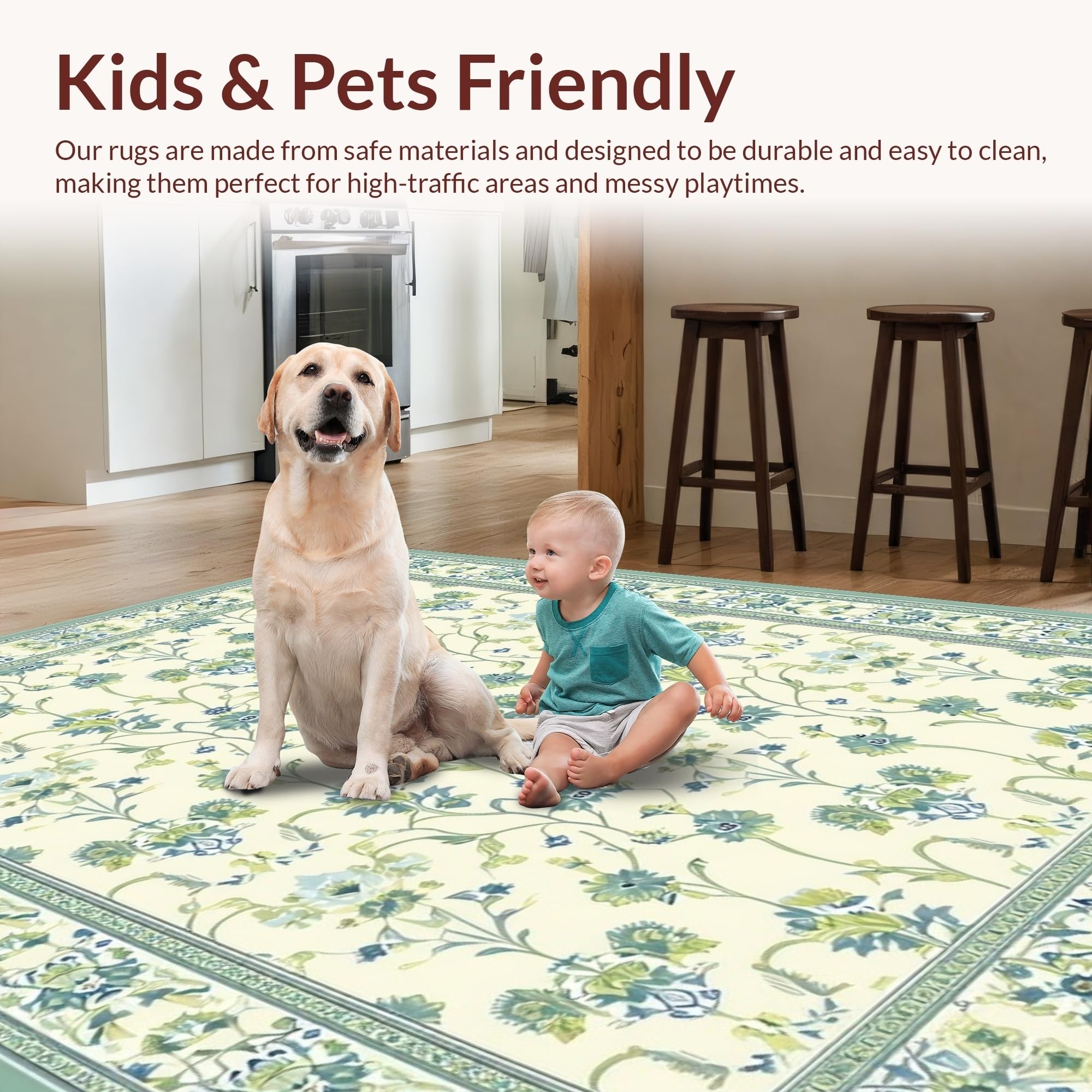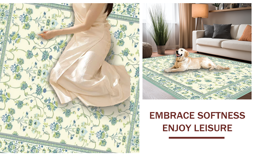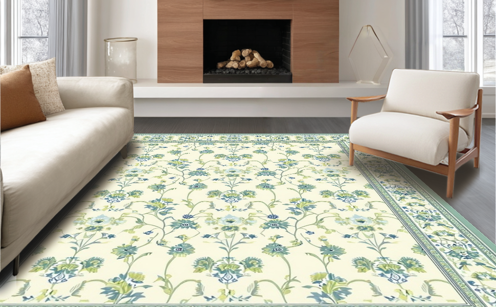 Ultra Soft Area Rug, Non Slip, Stain Resistant, Washable Area Rugs for Living Room, Bedroom, Rustic Whimsical Blooming Nature Theme(Beige) Overview: