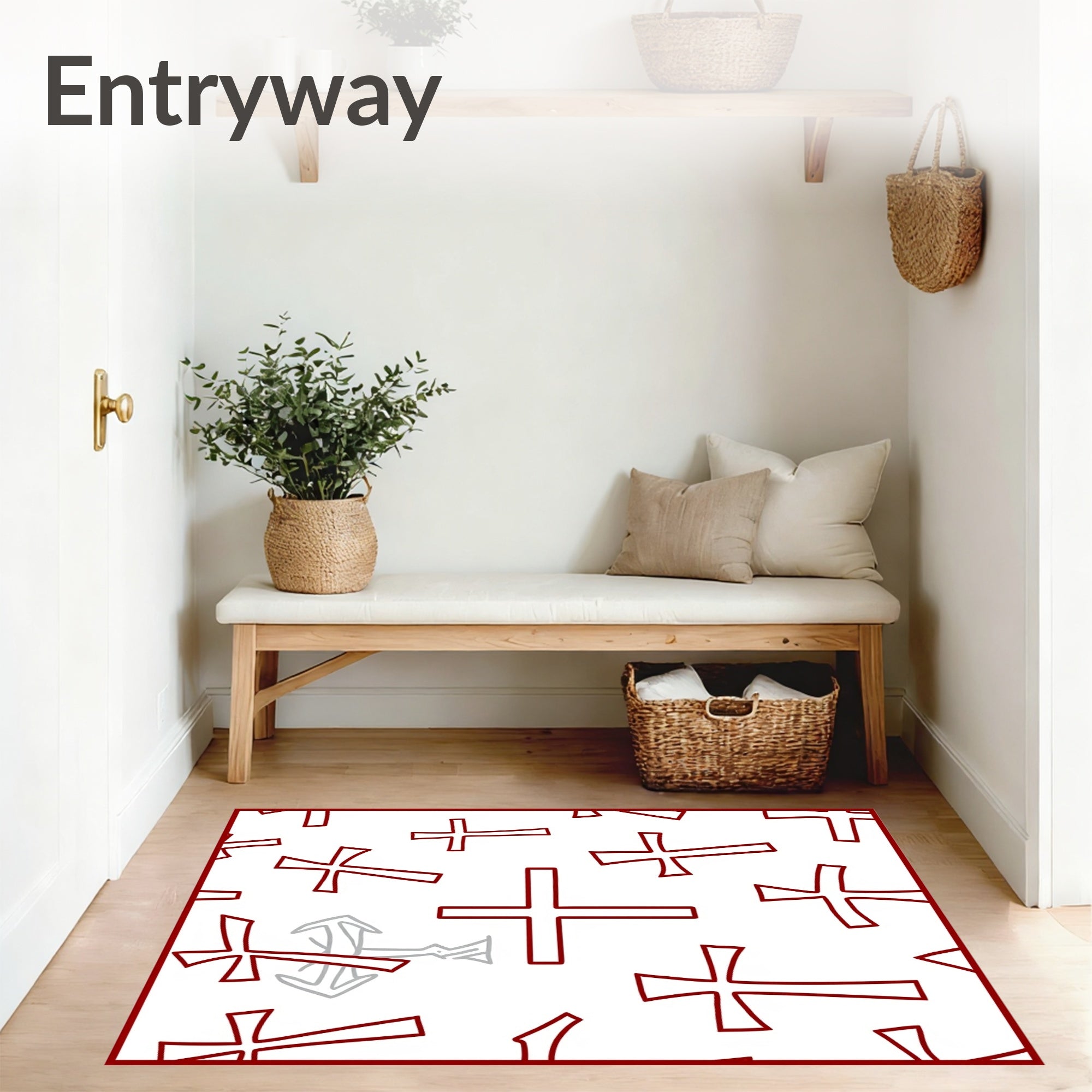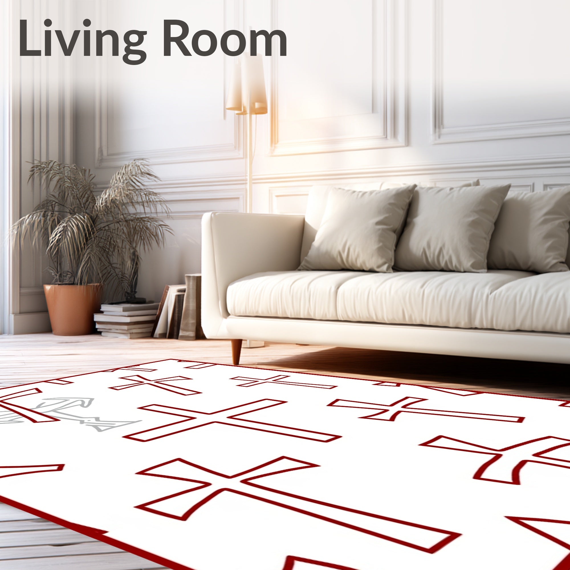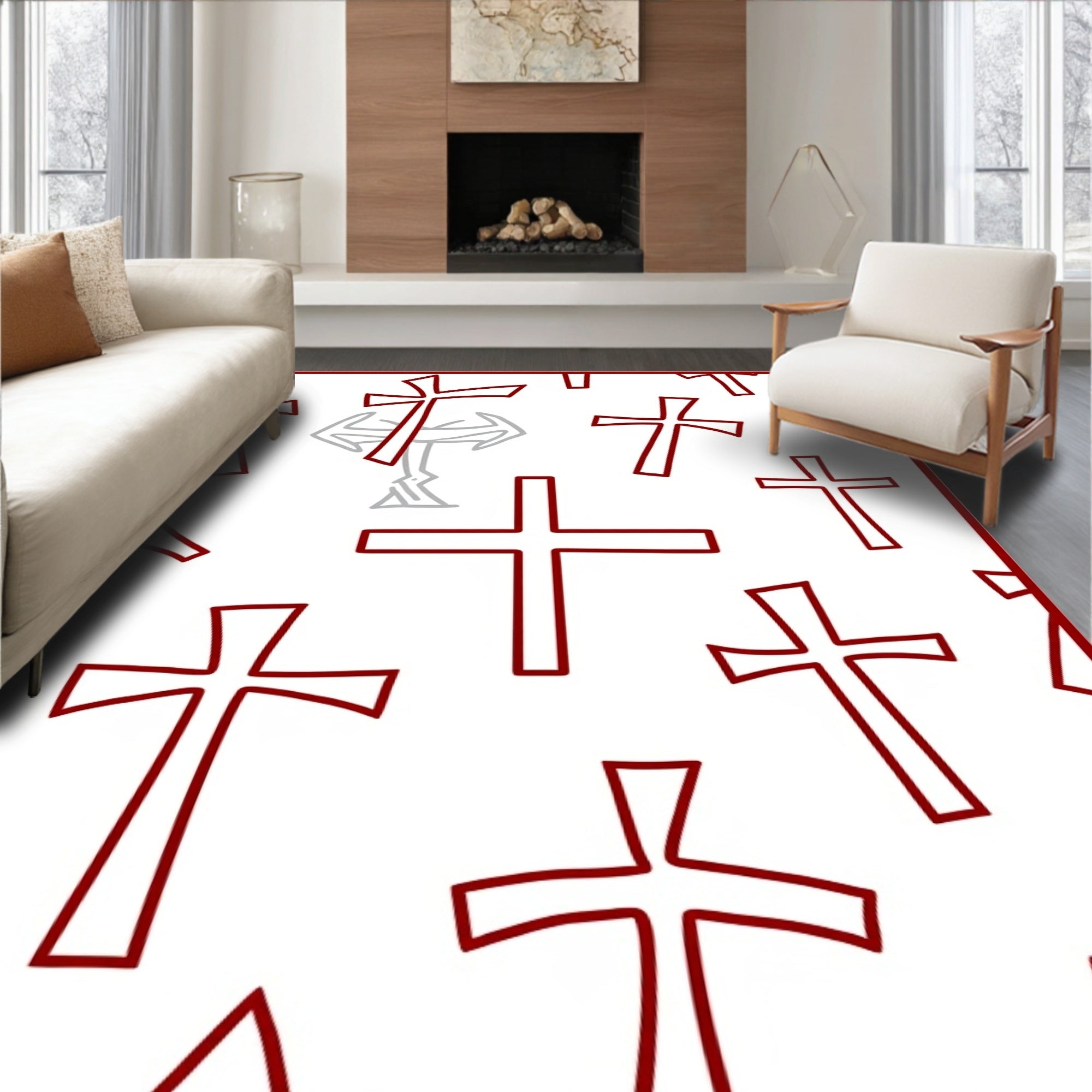 Ultra Soft Area Rug, Non Slip, Stain Resistant, Washable Area Rugs for Living Room, Bedroom, Sacred Symbol Interlocking Overlay with Contemporary Crosses(Red) Overview: