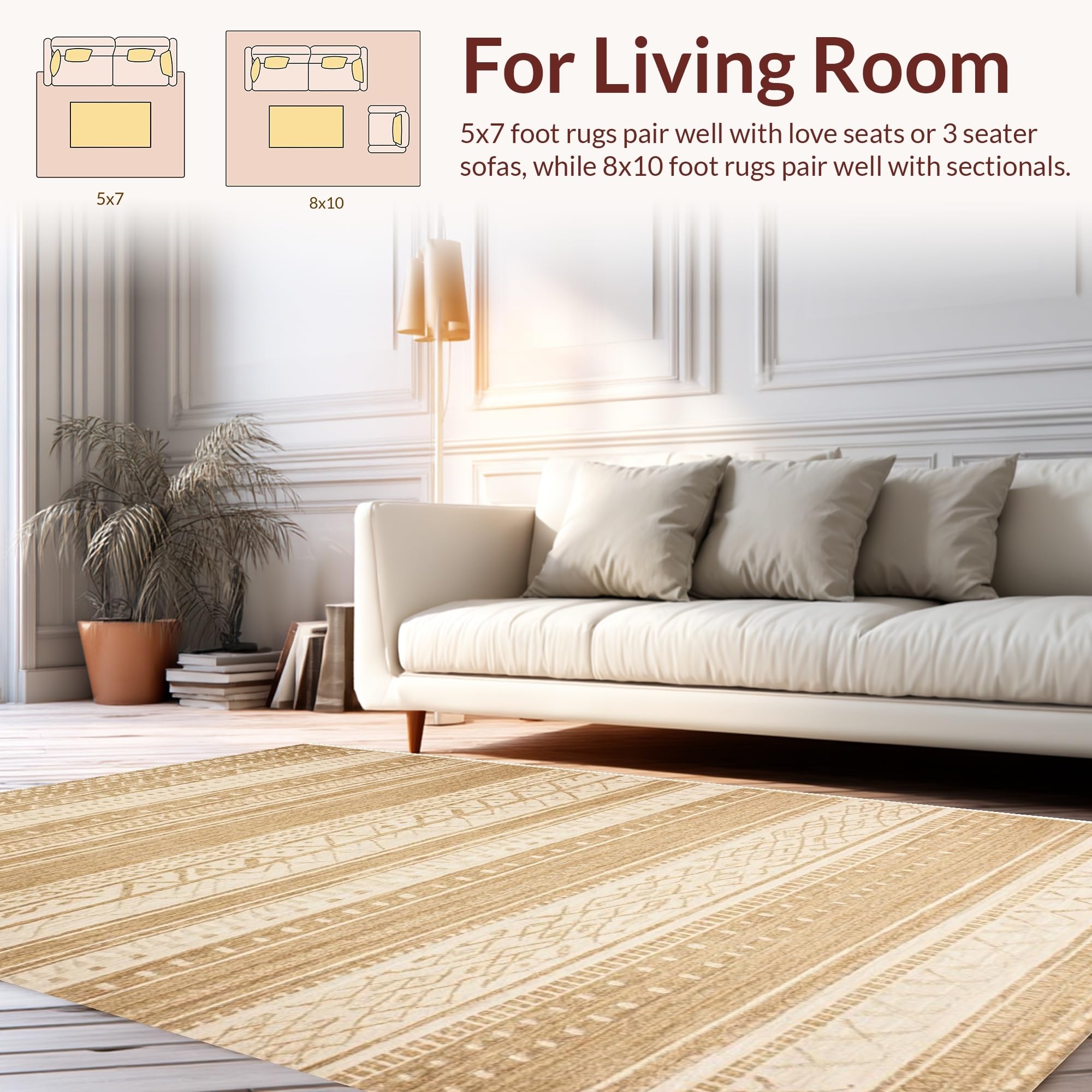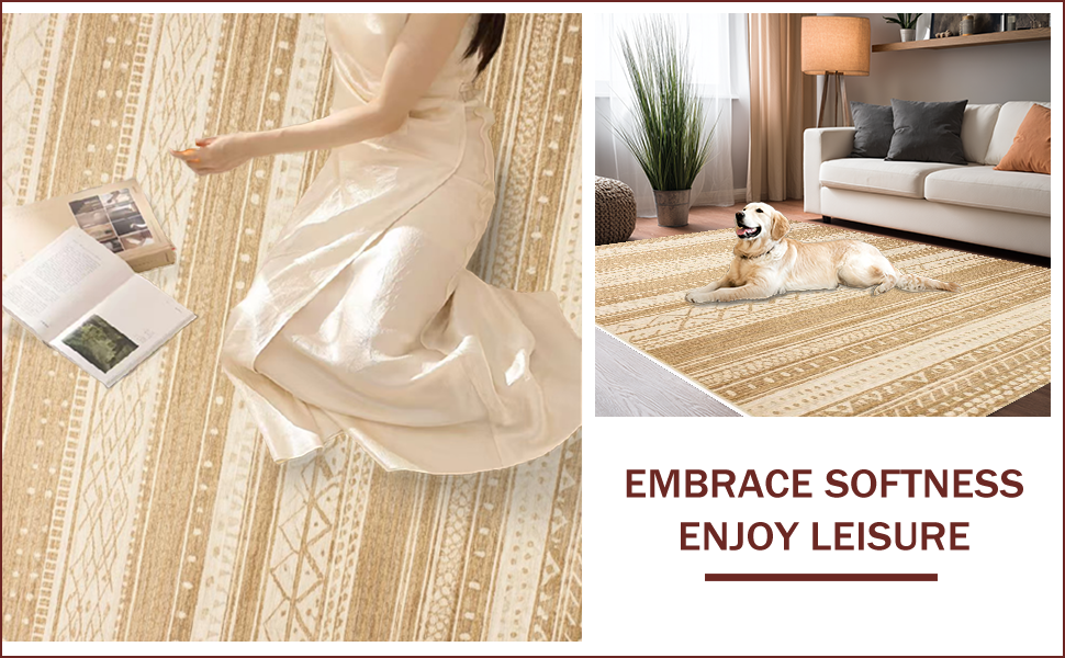 Ultra Soft Area Rug, Non Slip, Stain Resistant, Washable Area Rugs for Living Room, Bedroom, Safari-Inspired Earthy Elegance(Beige) Overview: