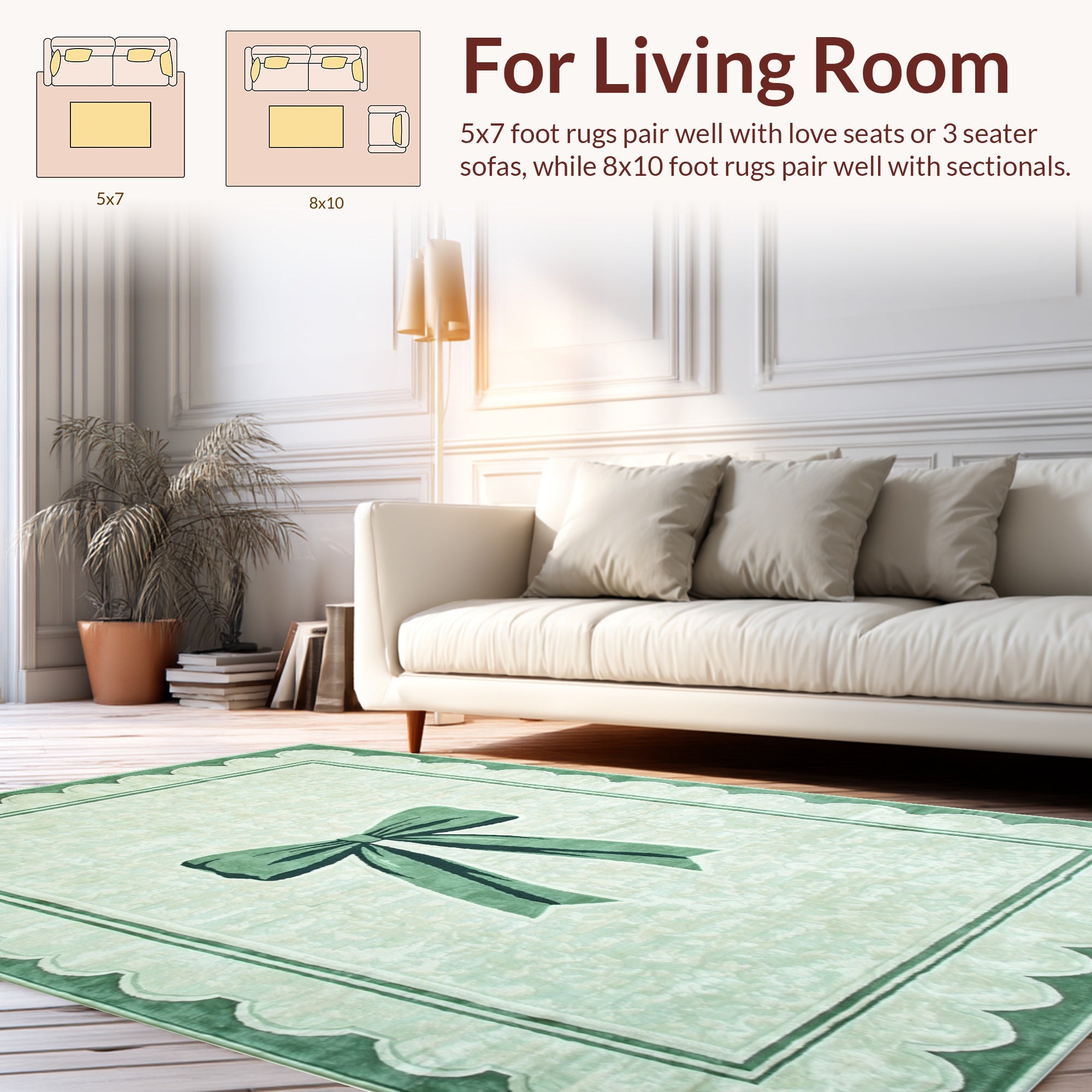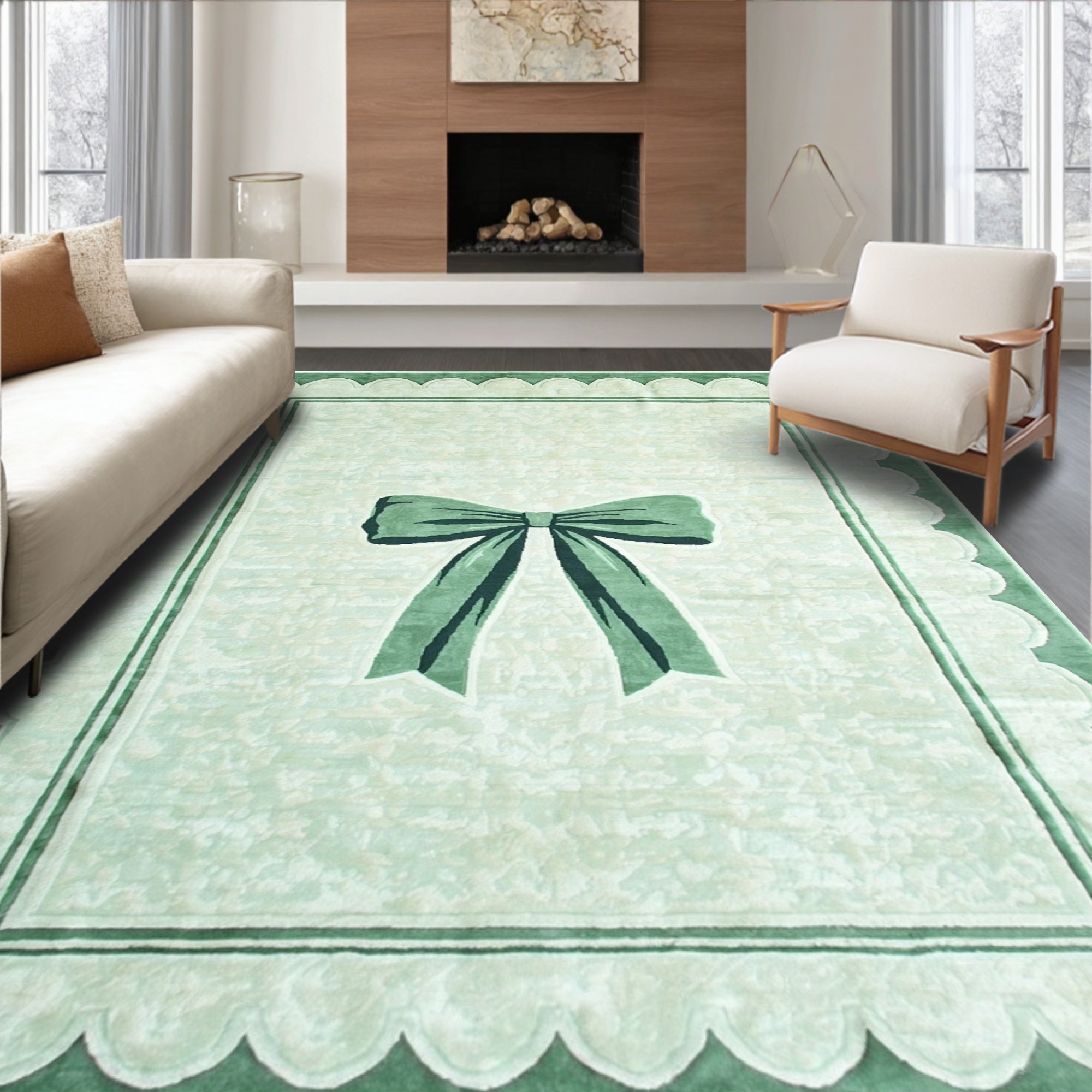 Ultra Soft Area Rug, Non Slip, Stain Resistant, Washable Area Rugs for Living Room, Bedroom, Scalloped Bowknot Bath Rug: Preppy Pastel Area Rug(Blue) Overview: