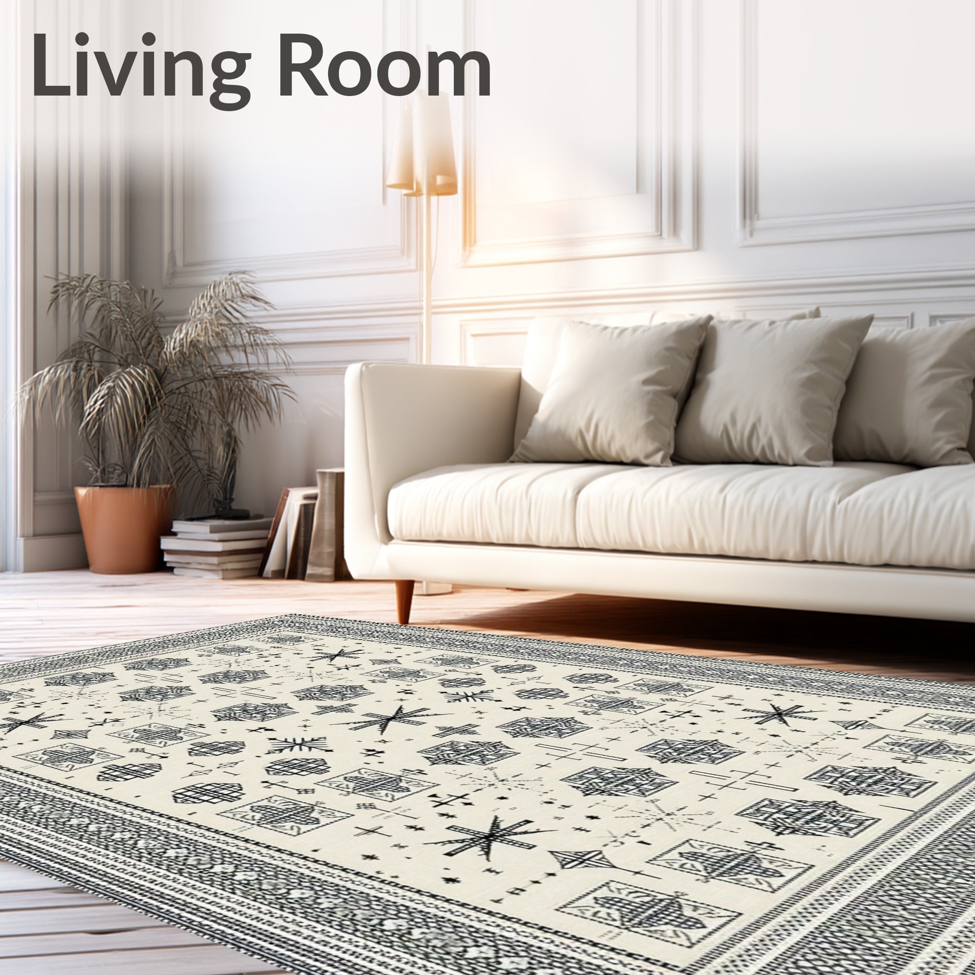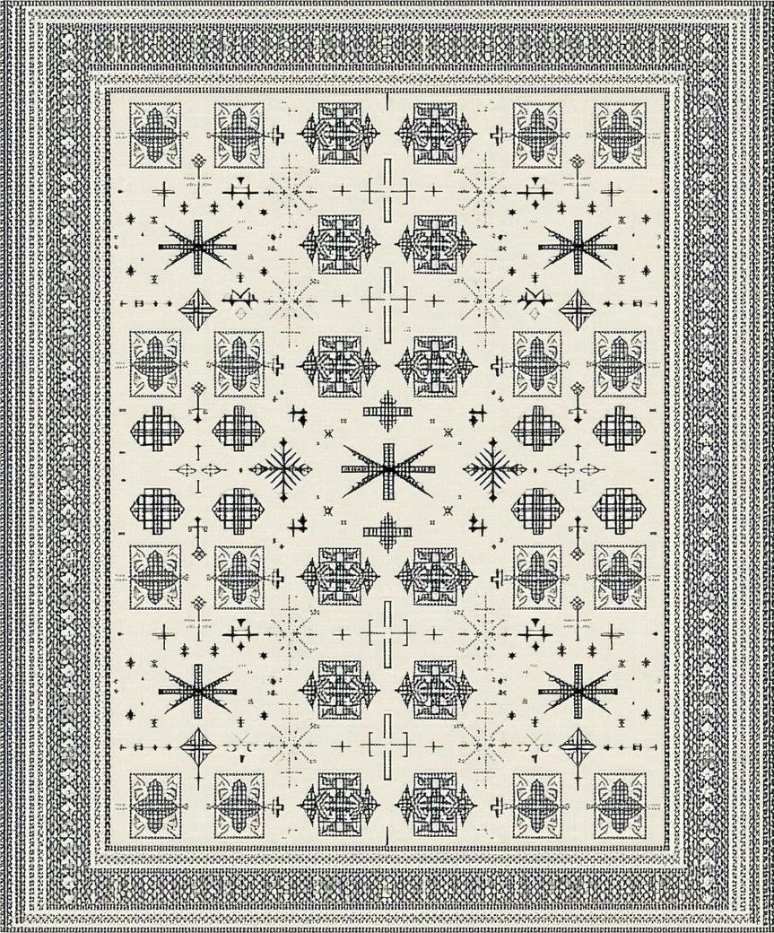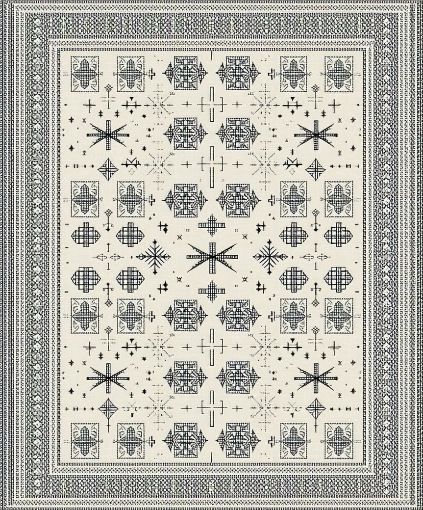 Ultra Soft Area Rug, Non Slip, Stain Resistant, Washable Area Rugs for Living Room, Bedroom, Scandinavian Cross in Charcoal and Cream(Black) Overview: