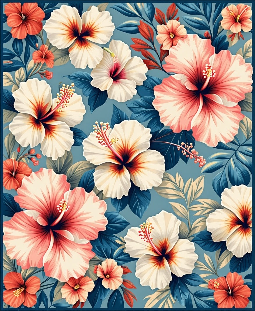 Seaside Blooms Textured With Sun Protected Floral(Blue)