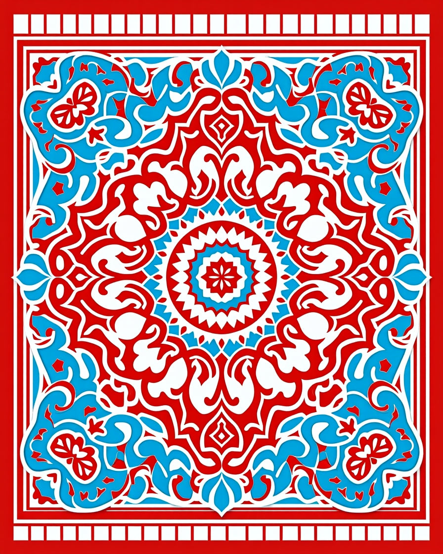 Seaside Medallion Motif with Flowing Scrollwork and Artistic Filigree Design(Red)