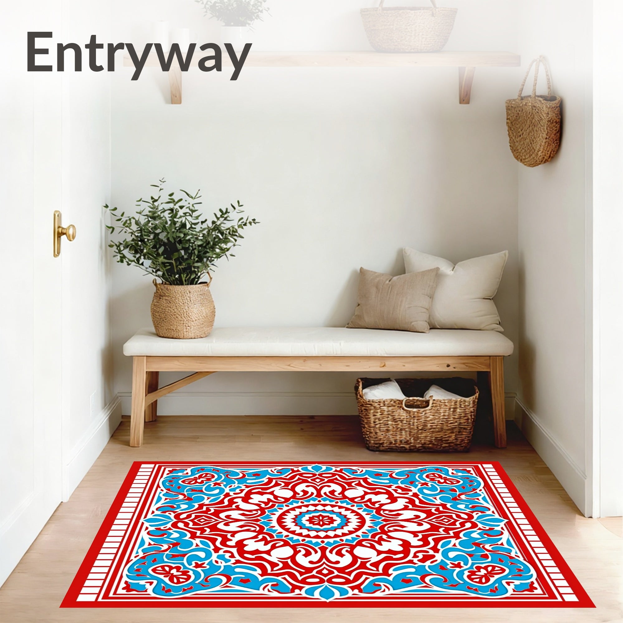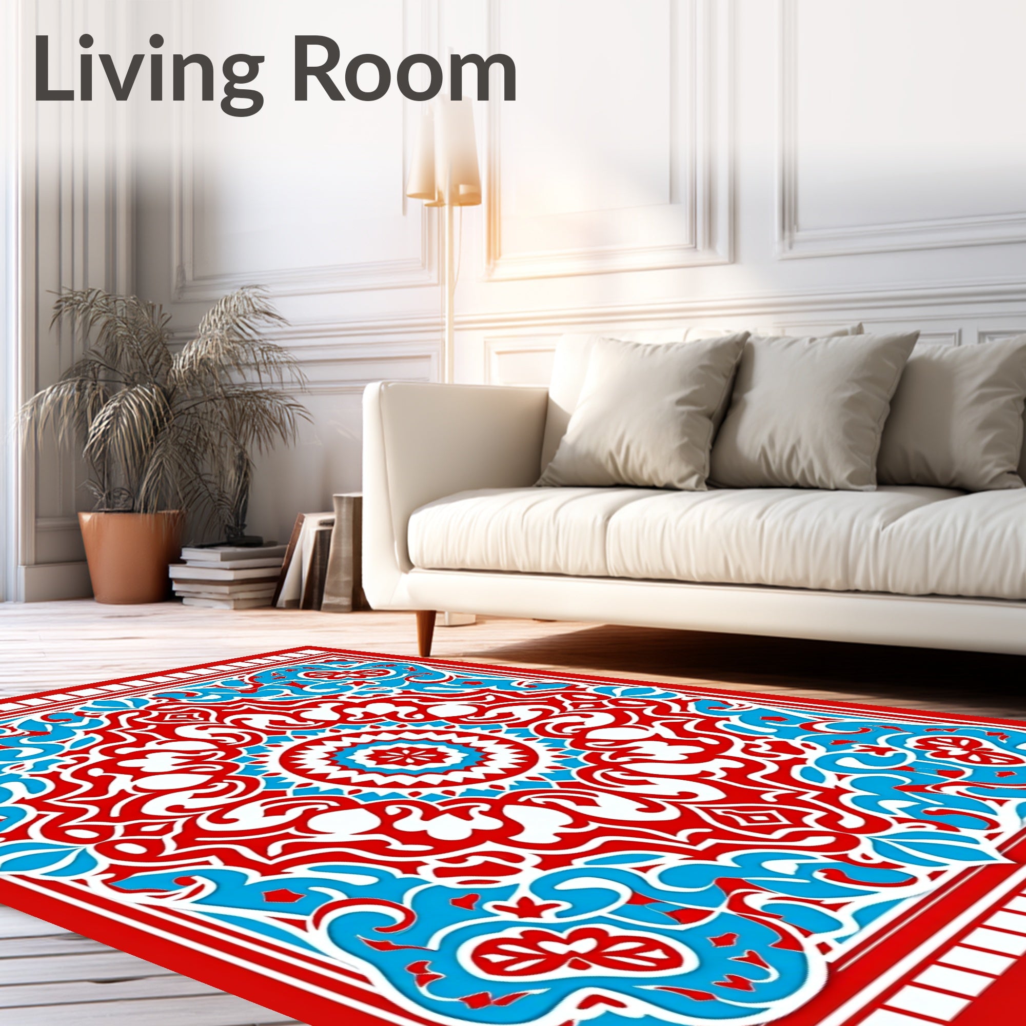 Ultra Soft Area Rug, Non Slip, Stain Resistant, Washable Area Rugs for Living Room, Bedroom, Seaside Medallion Motif with Flowing Scrollwork and Artistic Filigree Design(Red) Overview: