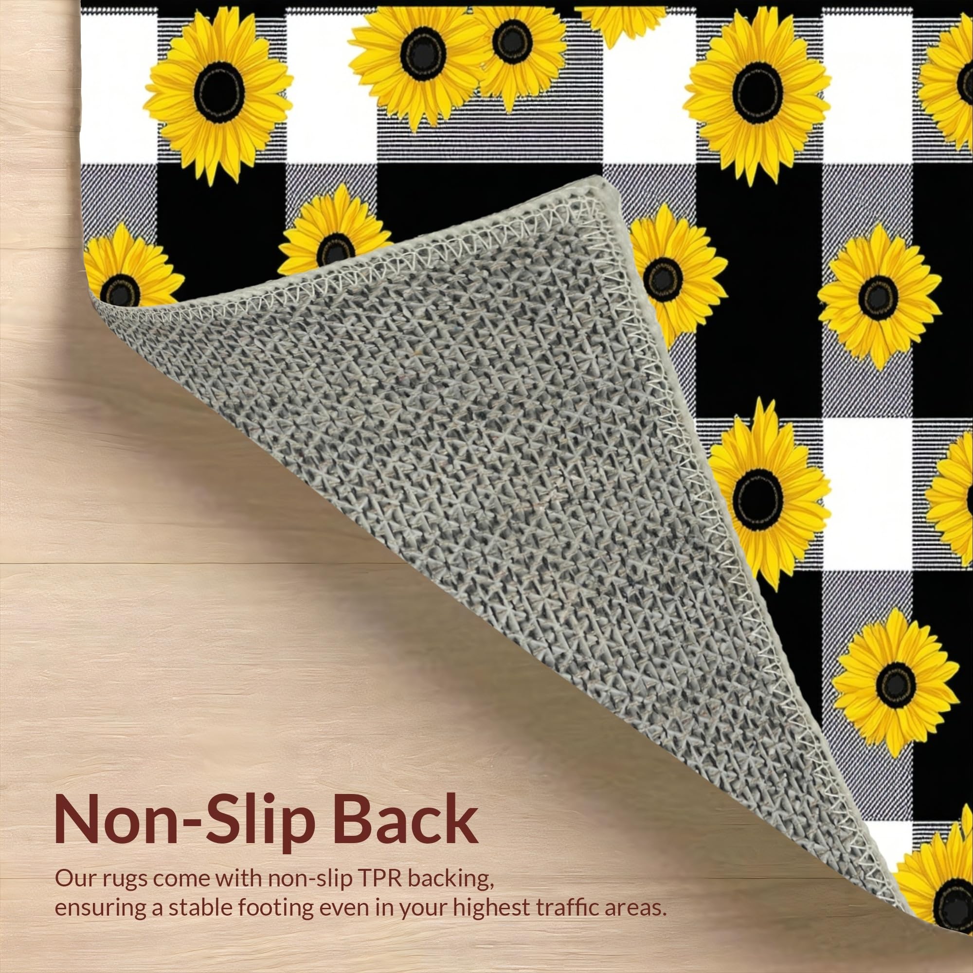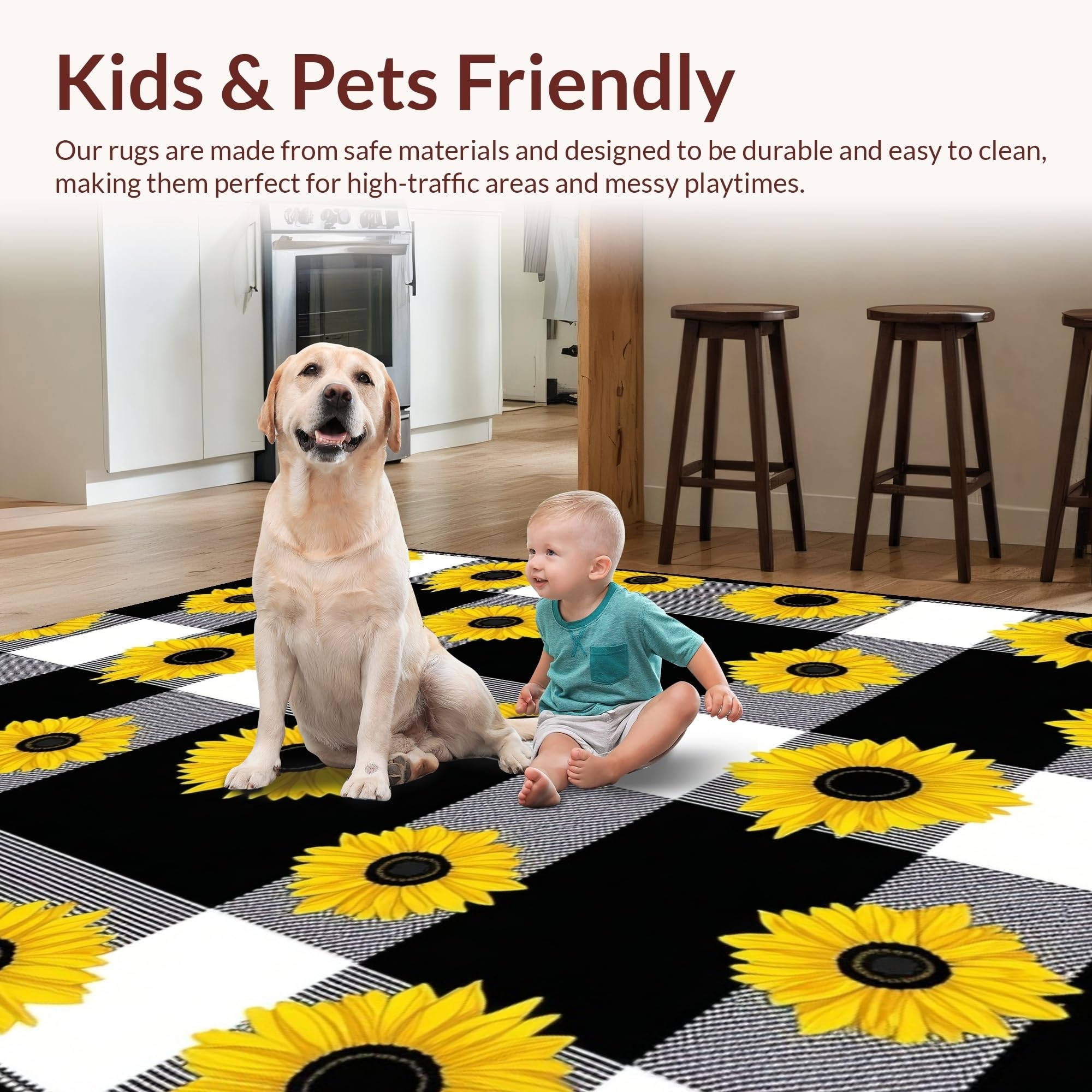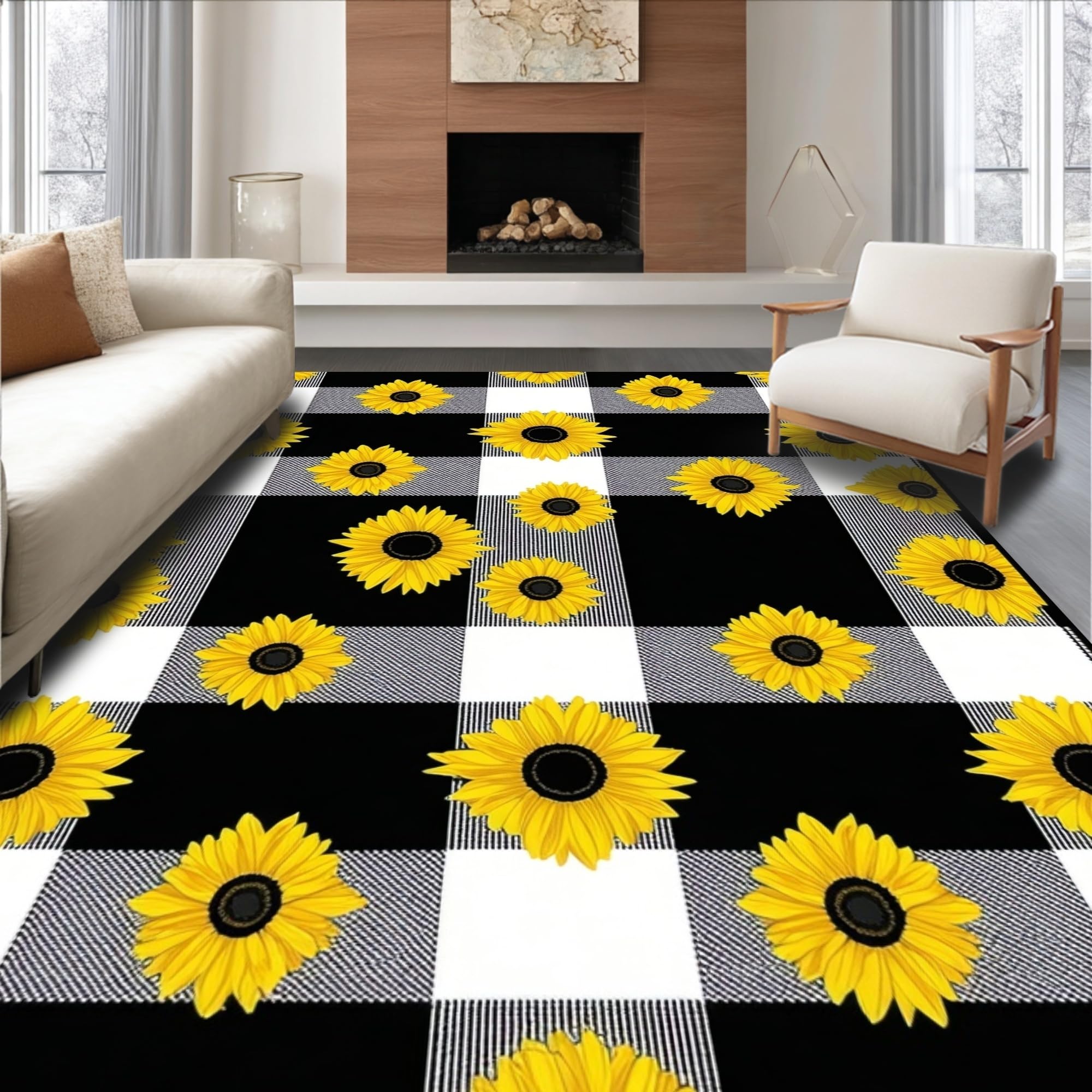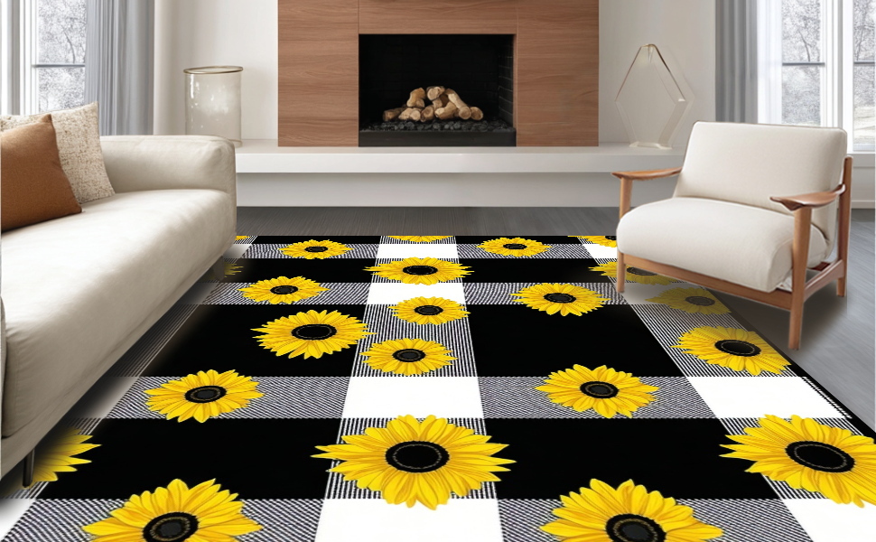 Ultra Soft Area Rug, Non Slip, Stain Resistant, Washable Area Rugs for Living Room, Bedroom, Seasonal Cheerful Sunflower Theme(Yellow) Overview: