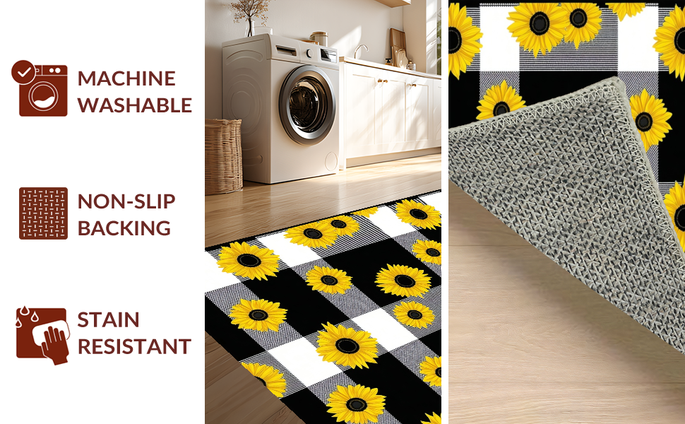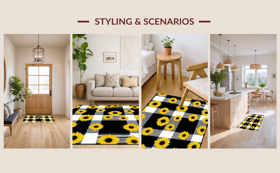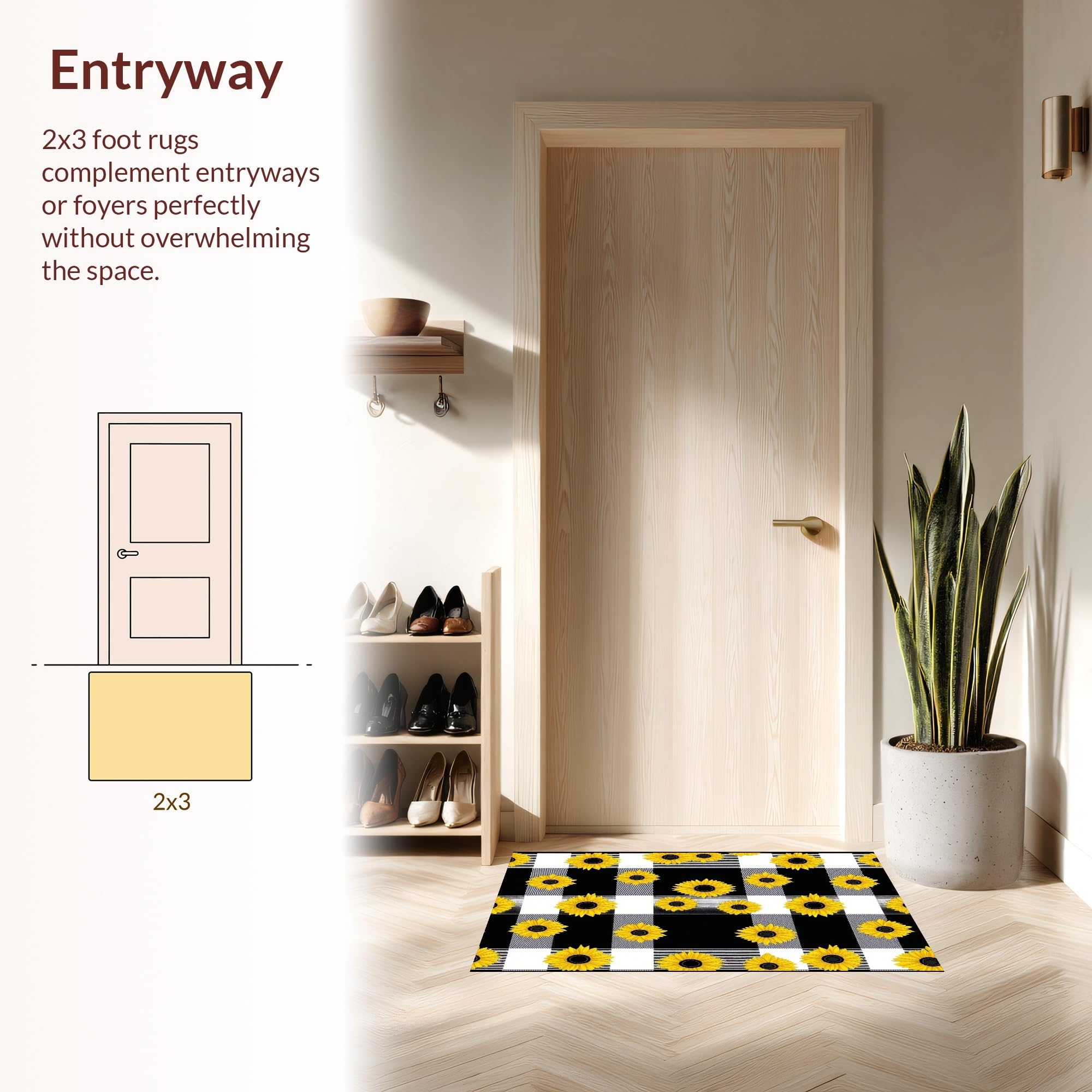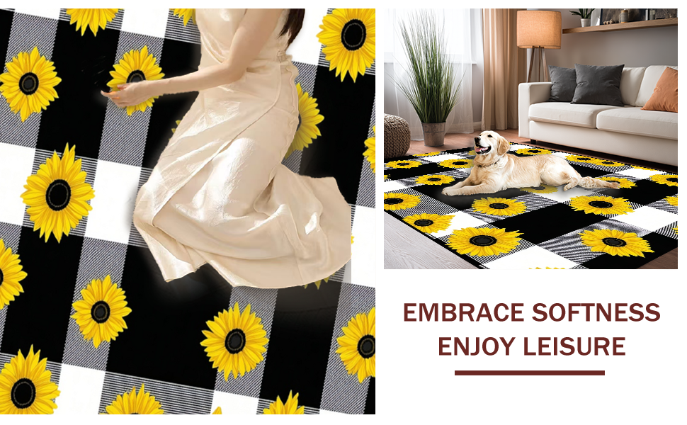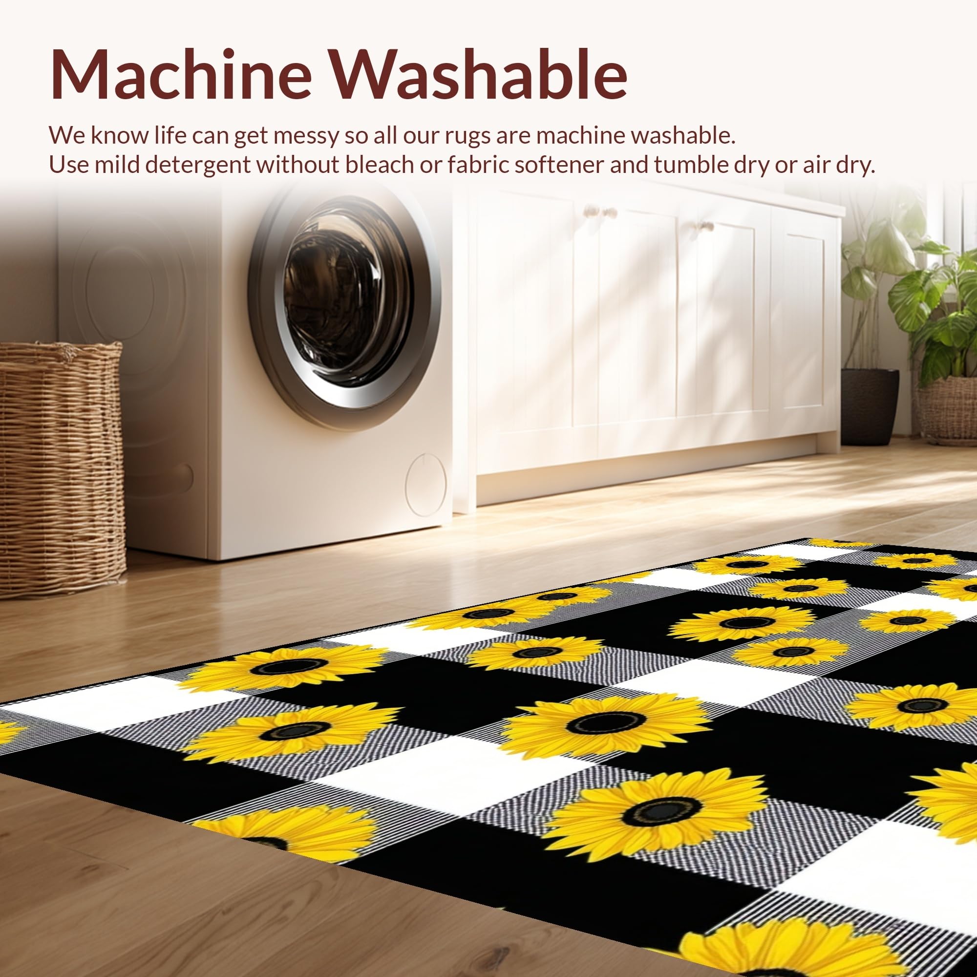 Ultra Soft Area Rug, Non Slip, Stain Resistant, Washable Area Rugs for Living Room, Bedroom, Seasonal Cheerful Sunflower Theme(Yellow) Overview: