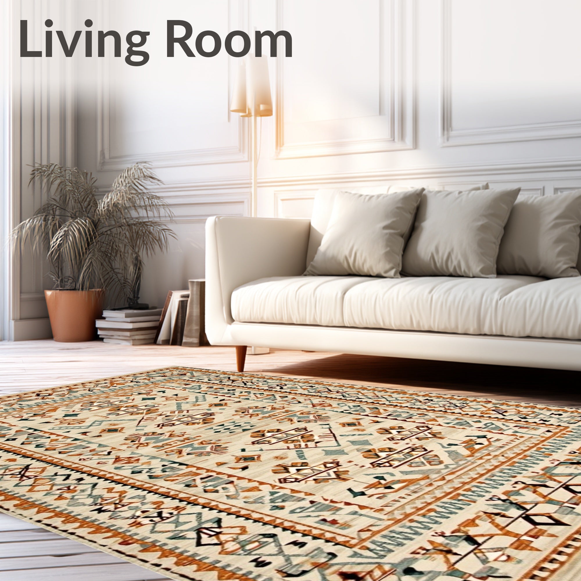 Ultra Soft Area Rug, Non Slip, Stain Resistant, Washable Area Rugs for Living Room, Bedroom, Sedona Tribal Geometric Over Dyed Southwest Abstract Border Area(Beige) Overview: