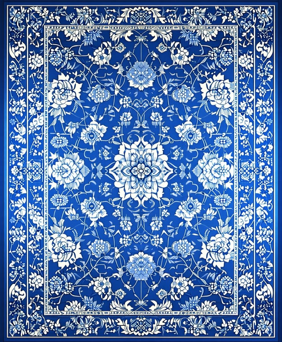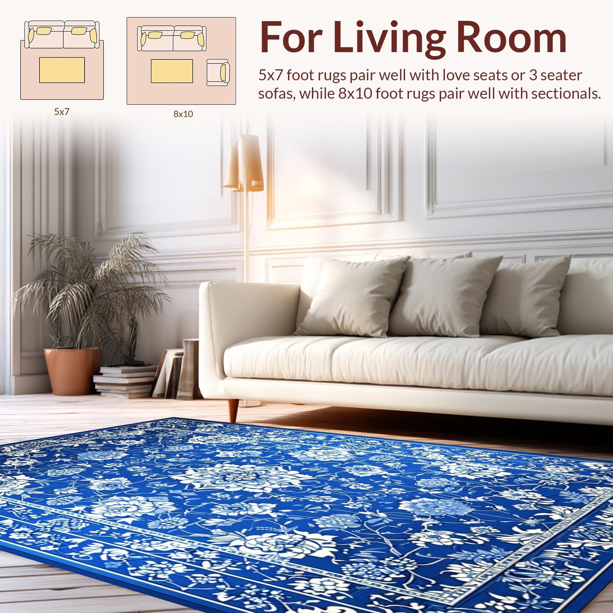 Ultra Soft Area Rug, Non Slip, Stain Resistant, Washable Area Rugs for Living Room, Bedroom, Serene Asian Elegance with Detailed Print(Blue) Overview: