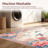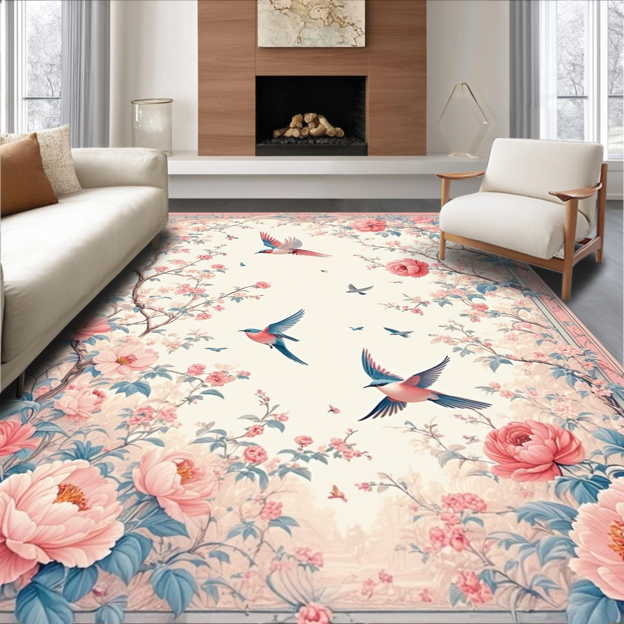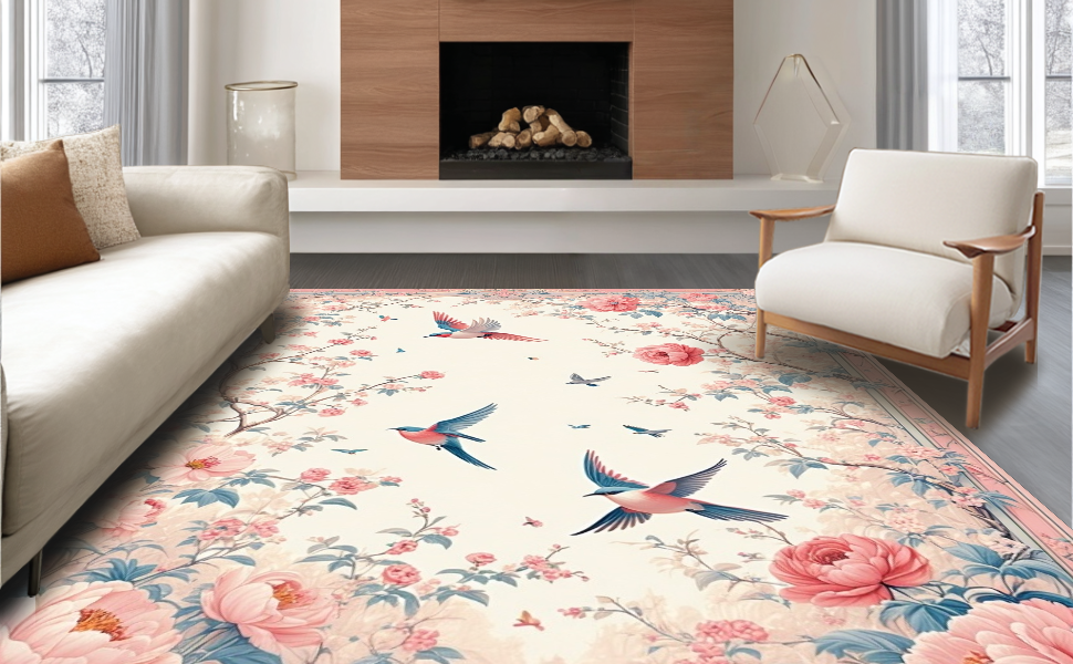 Ultra Soft Area Rug, Non Slip, Stain Resistant, Washable Area Rugs for Living Room, Bedroom, Serene Blossom and Bird Elegance(Beige) Overview: