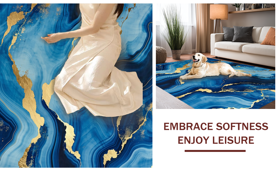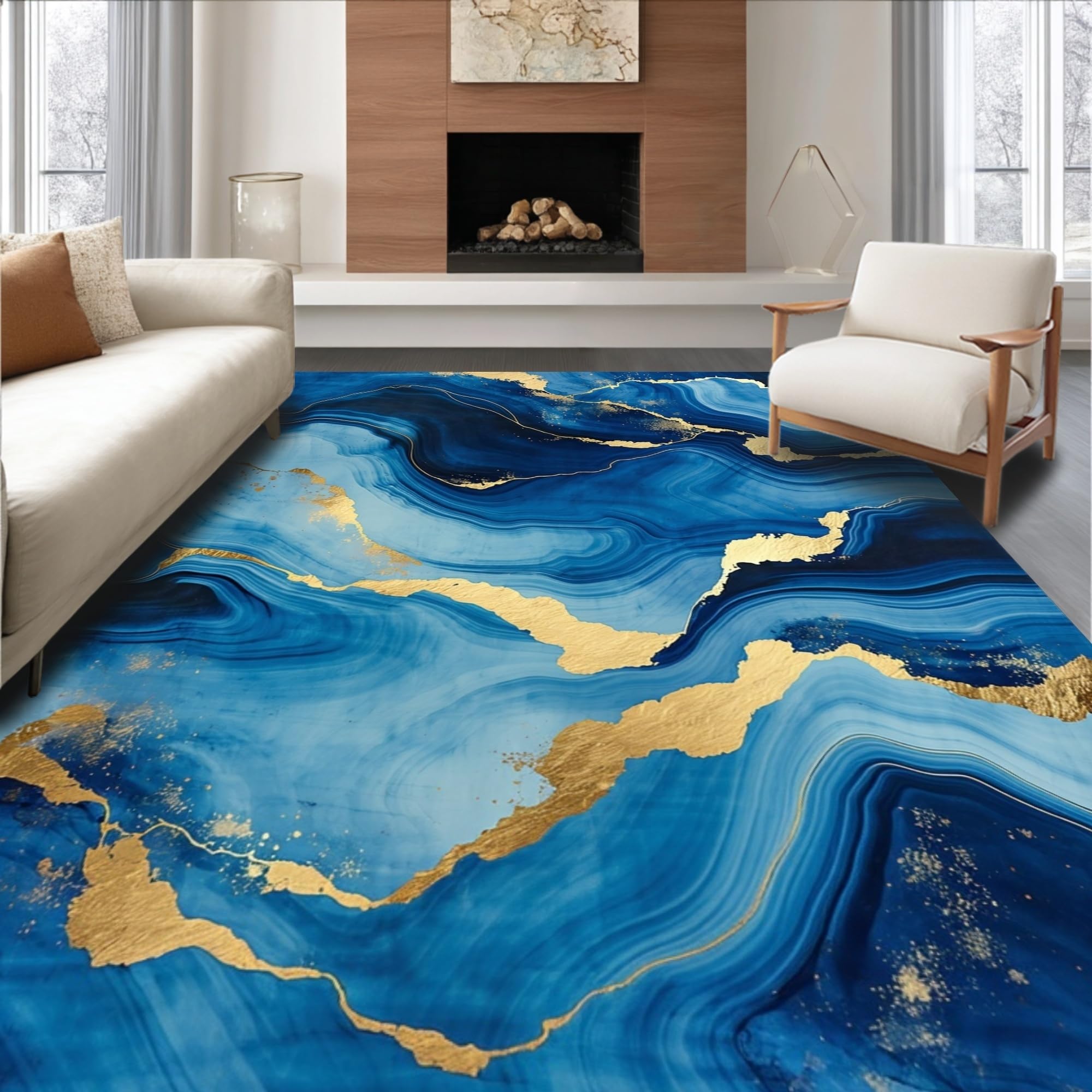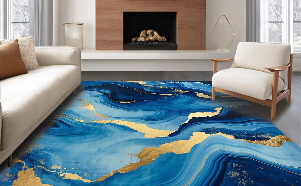 Ultra Soft Area Rug, Non Slip, Stain Resistant, Washable Area Rugs for Living Room, Bedroom, Serene Coastal Marble Design(Blue) Overview: